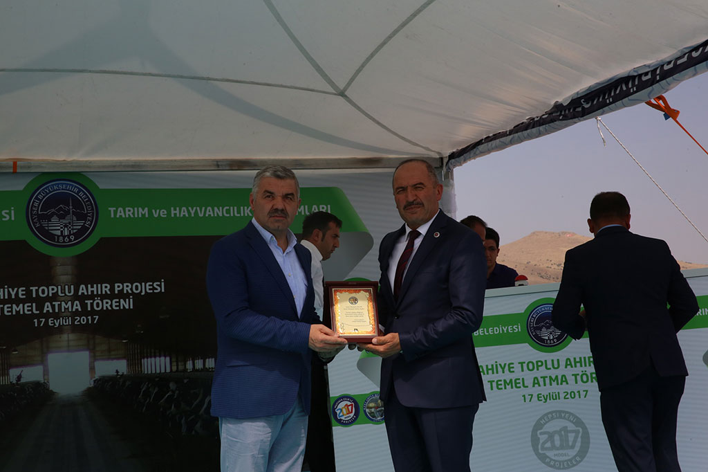 Büyükşehir Belediyesi, Beydeğirmeni Toplu Besi Bölgesi’nin ardından örnek bir yatırımı daha Kayseri’ye kazandırıyor. Felahiye Toplu Ahır Projesi’nin temeli törenle atıldı. Büyükşehir Belediye Başkanı Mustafa Çelik, Türkiye’ye model projeleri üretmeye ve şehrimize kazandırmaya devam edeceklerini söyledi. Felahiye Toplu Ahır Projesi’nin temel atma törenine Büyükşehir Belediye Başkanı Mustafa Çelik’in yanı sıra AK Parti İl Başkanı Hüseyin Cahit Özden, Felahiye Kaymakamı Nazlı Demir, Felahiye Belediye Başkanı Vural Coşkun, bürokratlar ve vatandaşlar katıldı. Felahiye Belediye Başkanı Vural Coşkun törende yaptığı konuşmada Felahiye’ye yapılan yatırımlar hakkında bilgi verdi ve “Büyükşehir Belediyemizin katkılarıyla ilçemiz ardı ardına yeni tesislere kavuşuyor” dedi. Coşkun, toplu ahır projesinin Türkiye’de ilk olduğunu ve model alınacak bir projenin hayata geçirildiğini belirtti. Felahiye Kaymakamı Nazlı Demir de konuşmasında Büyükşehir Belediyesi’nin projelerini takdir ettiğini vurgulayarak örnek projeleri her yerde anlattıklarını kaydetti. Büyükşehir Belediye Başkanı Mustafa Çelik ise sözlerine hepimizin ortak değeri olan Kayseri’nin her metrekaresine en iyi hizmeti vermek için çalışmalara hız kesmeden devam ettiklerini belirterek başladı. “İLÇELERE YATIRIM 600 MİLYON TL’Yİ AŞTI” Bütünşehir Yasasının çıktığı 2014 yılı Mart ayından itibaren tüm ilçelerde bir kalkınma hamlesi başlatıldığını ifade eden Başkan Mustafa Çelik, “2015, 2016 ve 2017 yıllarında yatırımlarımız her geçen yıl daha da arttı. Sadece alt yapı şirketimiz KASKİ’nin bu yıl 11 ilçemizde yaptığı ve yapacağı toplam yatırım tutarı 160 milyon lirayı buluyor. Sadece Kırsal Hizmetler Daire Başkanlığımız bu yıl ilçelerimize 68 milyon liralık yatırım yapıyor. Alt yapı şirketimiz KASKİ, Kırsal Hizmetler, Tarımsal Hizmetler, Fen İşleri, Yapı Kontrol ve diğer daire başkanlıklarımız ile Spor A.Ş., KAYMEK gibi şirketlerimiz kanalıyla bize sonradan bağlanan 11 ilçemize yaptığımız yatırımın toplam miktarı Bütünşehir Yasası sonrası 600 milyon liraya ulaştı. İlçelerimizin kalkınması için aynı hızla da yatırımlarımızı sürdüreceğiz” dedi. 6,5 MİLYON TL’LİK YATIRIM Felahiye’de örnek ve model bir tesisin yapılacağını vurgulayan Başkan Çelik, sözlerini şöyle sürdürdü: “Uzman görüşlere göre ülkemiz süt sığırı işletmelerinin en önemli sorunlarından biri ahırların yapımı. Üreticilerimiz çoğu zaman pahalı damızlık hayvan alıyor, beslemeye yeterince özen gösteriyor ve hastalıklara karşı duyarlı davranıyor; ancak sağlıklı ahır yapımına gerekli özeni göstermiyor. Halbuki yine uzman görüşlere göre verimli ve sağlıklı hayvanların modern ahırlarda barınma zorunlulukları var. Gelişmiş ülkelerde planlı ve sağlıklı barınak, üreticinin altyapısı, üretimin sigortası olarak görülüyor. Bu düşünceden hareketle Felahiye Belediyemizin bizlere getirdiği Toplu Ahır Projesini hayata geçiriyoruz. Başlangıç için 300 başlık bir ahır projelendirdik; ancak bu sayının artabileceğini düşünerek arazi planlamasını buna göre yaptık. Toplu Ahır projesi, Türkiye'ye örnek olacak bir projemiz. Bu projeyi, Felahiye'ye kazanç kapısı yaptıktan sonra tüm Türkiye'ye örnek olarak sunacağız. Projeyi yaptıktan sonra Felahiye’deki vatandaşlarımızın ahırlarında bulunan hayvanları buraya alacağız. Hayvanlara uzman veterinerler kontrolünde bakılacak, sağımlar yapılacak ve ürünler satılacak. Bu tesisin giderine herkes hayvan sayısı kadar katılacak. Ay sonunda da herkesin hayvanının ne kadar süt verdiği belli olduğu için giderler çıktıktan sonra gelirler vatandaşlarımıza dağıtılacak. Projemizin toplam bedeli 6,5 milyon lirayı buluyor. Bugüne kadar yaptığımız yatırımların, bugün temelini atacağımız Toplu Ahır Projemizin ve yapacağımız yatırımların Felahiye ilçemize hayırlı olmasını diliyorum. Yaptığımız ve yapacağımız yatırımlarla Felahiye’de yaşayan siz değerli hemşehrilerimizin sorunlarını gidermeye, ihtiyaçlarını karşılamaya devam edeceğiz. Türkiye’ye örnek projeleri üretmeye devam edeceğiz.” Konuşmaların ardından Felahiye Belediye Başkanı Vural Coşkun, Büyükşehir Belediye Başkanı Mustafa Çelik’e ilçesine yapılan yatırımlar nedeniyle teşekkür plaketi takdim etti. Daha sonra Felahiye Toplu Ahır Projesi’nin temeli dualarla atıldı. Felahiye’ye yapılacak olan Toplu Ahır Projesi, diğer ilçelere de yaygınlaştırılabilecek. Başlangıçta 300 büyükbaş hayvan için planlanan proje ihtiyaca göre 480 başa çıkarılabilecek şekilde planlandı. Projede sağmal inekler, genç hayvanlar ve buzağılar için ayrı ahırlar bulunuyor. Projede ayrıca, slaj ve ot deposu, hangar, sağımhane, revir gibi birimler de yer alıyor.