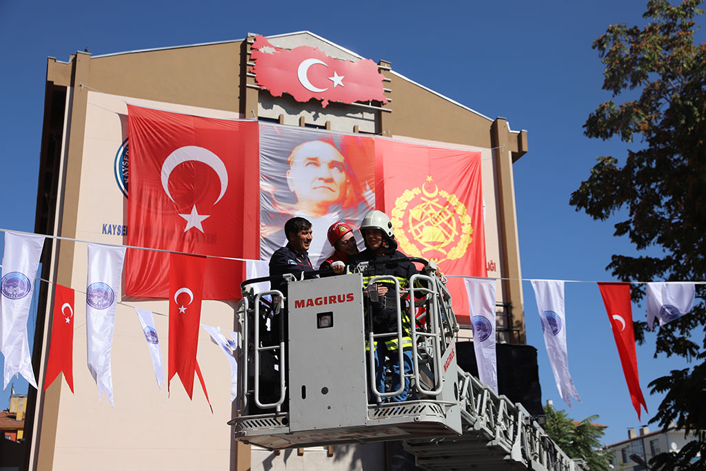 Ailesiyle, Kayseri Büyükşehir Belediyesi İtfaiye Teşkilatı’nın yakınlarına taşındıktan sonra itfaiyeci olmak isteyen ve itfaiye teşkilatına büyük bir sevgi besleyen Otizmli Genç, bir günlüğüne de olsa Büyükşehir Belediyesi İtfaiye Teşkilatının bir üyesi oldu. 15 yaşındaki Ali Özkay, itfaiyeci kıyafetlerini giydi, itfaiye aracına bindi, itfaiye hortumu ve merdivenini kullandı. Fevzi Çakmak Mahallesi’nde oturan 15 yaşındaki Otizmli Ali Özkay, itfaiyeci olma isteği ve itfaiyeye duyduğu sevgi ile Kayseri Büyükşehir Belediyesi İtfaiye Daire Başkanlığı’na ulaşarak ilgi ve sevgisini dile getirdi. Ali Özkay’ın bu sevgisine kayıtsız kalmayan Büyükşehir Belediyesi İtfaiye Daire Başkanı Metin Kızılkan, İtfaiye Haftası’nda sürpriz bir ziyaret gerçekleştirdi. Ali Özkay’ı evinde ziyaret eden İtfaiye Daire Başkanı Kızılkan, ailesi ve Ali ile sohbet etti. Ziyaret nedeniyle oldukça heyecanlanan Ali'ye genç itfaiyeci kıyafetleri giydirildi. Büyükşehir Belediyesi İtfaiye Daire Başkanı Metin Kızılkan, Kayseri itfaiyesinin 93’üncü, Türk itfaiyesinin 305’inci yılında böyle bir sevgiye mazhar olmaktan büyük mutluluk duyduklarını dile getirdi. İTFAİYECİ ALİ’NİN EN MUTLU GÜNÜ Büyükşehir Belediyesi İtfaiye Daire Başkanlığı, Ali Özkay’ı sadece ziyaret etmekle yetinmedi ve Ali’yi bir günlüğüne de olsa itfaiye personeli yaptı. Telsizden itfaiye teşkilatının merkez birimi ile görüşen Ali, daha sonra itfaiye aracına binerek şehir turu yaptı. Sirenlerini çalan itfaiye aracı ile itfaiye teşkilatının merkez binasına giden Ali Özkay, buradaki itfaiye personeli ile selamlaştı. Büyükşehir Belediyesi İtfaiye Teşkilatı’nda Genç İtfaiye Eri Ali’ye, burada gerçek itfaiyeci kıyafetleri giydirildi. İtfaiye elbisesini giyen ve baretini takan Ali burada itfaiye hortumunu kullandı ve itfaiye merdivenine bindi. İtfaiye sevgisi ile yaşayan Ali Özkay, bu sevgiye karşılık veren İtfaiye Teşkilatı ile unutamayacağı bir gün yaşadı ve günün sonunda güzel hatıralarla ekipler tarafından evine bırakıldı.