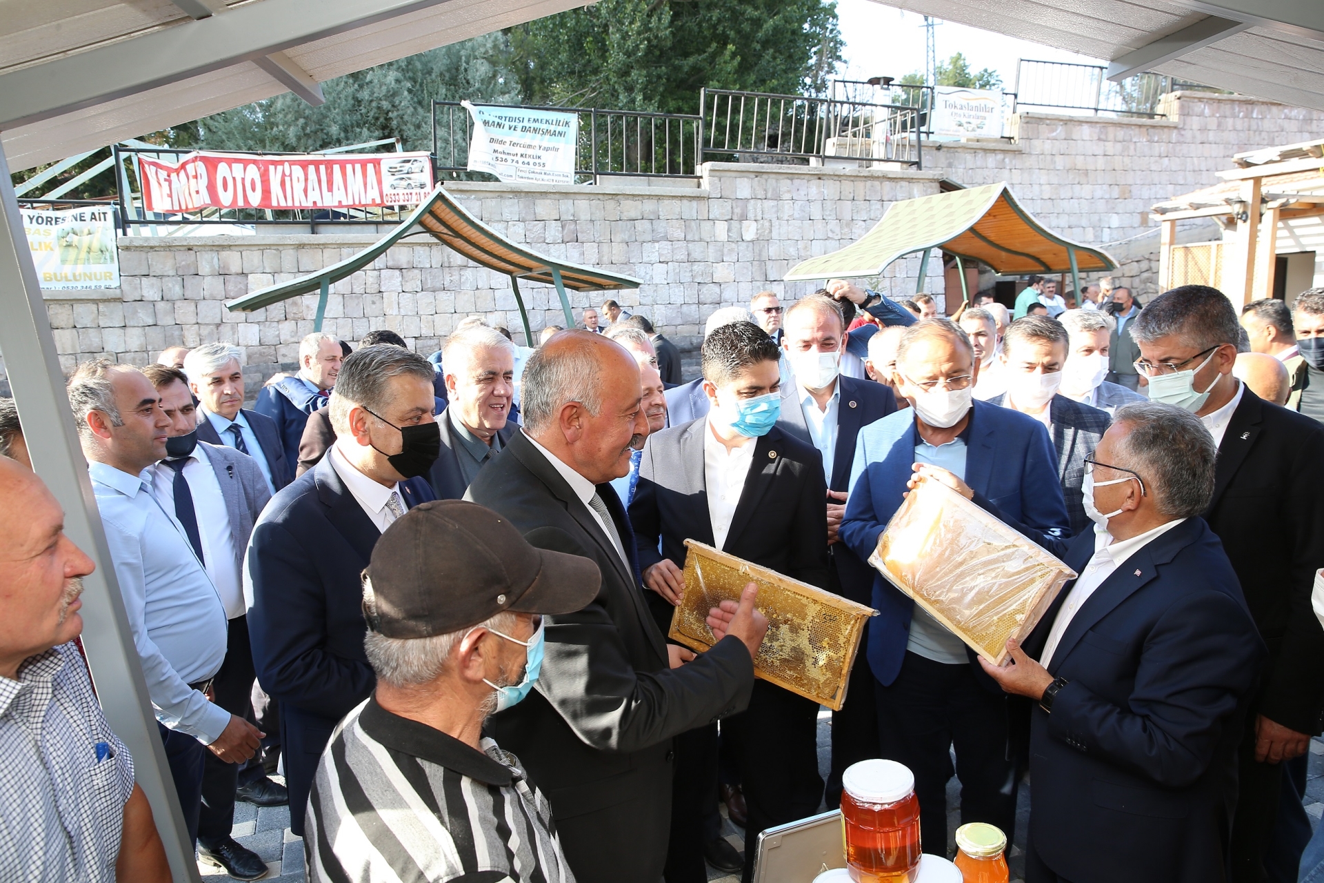 Kayseri Büyükşehir Belediye Başkanı Dr. Memduh Büyükkılıç, AK Parti Genel Başkan Yardımcısı ve Yerel Yönetimler Başkanı Mehmet Özhaseki ile birlikte Özvatan’da düzenlenen istişare toplantısına katıldı. İlçe belediye başkanlarının katıldığı Özvatan ziyaretinde Coğrafi Tescil Belgeli Özvatan Çiçek Balı da tanıtıldı.Büyükşehir Belediye Başkanı Dr. Memduh Büyükkılıç, Kayseri’ye yapılan hizmetlerle ilgili sürdürdüğü istişare toplantılarına Özvatan ilçesiyle devam etti. Özvatan’da gerçekleştirilen istişare toplantısına Başkan Büyükkılıç’ın yanı sıra AK Parti Genel Başkan Yardımcısı ve Yerel Yönetimler Başkanı Mehmet Özhaseki,  MHP Genel Başkan Yardımcısı ve Kayseri Milletvekili İsmail Özdemir, AK Parti İl Başkanı Şaban Çopuroğlu, MHP İl Başkanı Adnan İncetoprak, Özvatan Belediye Başkanı Halit Demir ile 15 ilçe belediye başkanı katıldı.Toplantı ile ilgili değerlendirmelerde bulunan Büyükkılıç, belediyecilik hizmetleriyle örnek ve öncü çalışmalar yapmaya devam edeceklerini kaydederek, ‘İstişarede hayır vardır diyerek bir araya geldik. 16 ilçe belediyemizle birlikte el ele gönül gönüle dayanışma içerisinde çalışmalarımızı sürdürüyoruz” dedi.