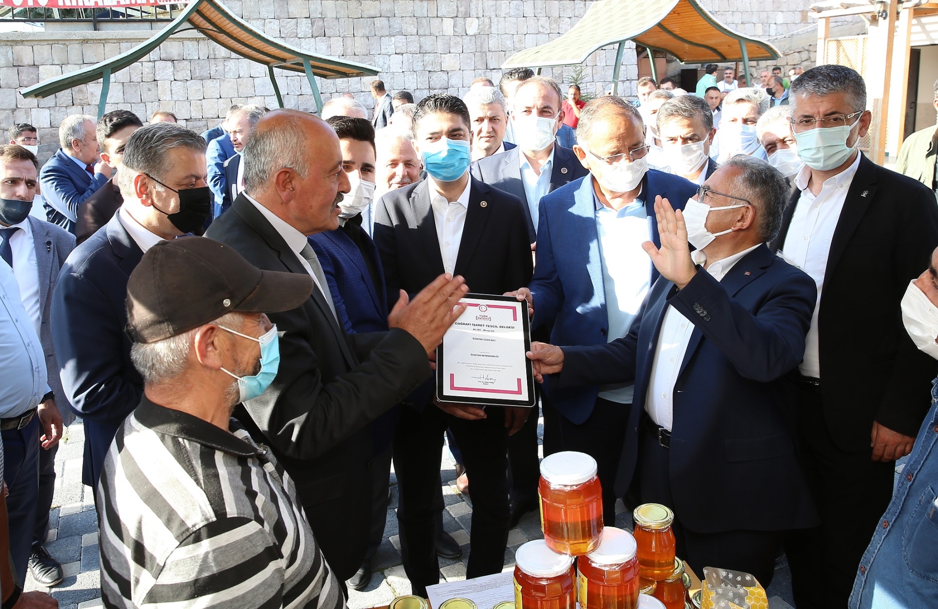 KAYSERİ’NİN GÜZEL İLÇESİ ÖZVATAN’IN TESCİLLİ BALI TANITILDIToplantı sonrasında Başkan Büyükkılıç, beraberindeki heyet ile birlikte Coğrafi Tescili Belgeli Özvatan Çiçek Balı’nın tanıtıldığı stantları gezerek, burada bal üreticilerinden bilgi aldı. Ayrıca heyete Coğrafi Tescil Belgeli Özvatan Çiçek Balı hediye edildi.