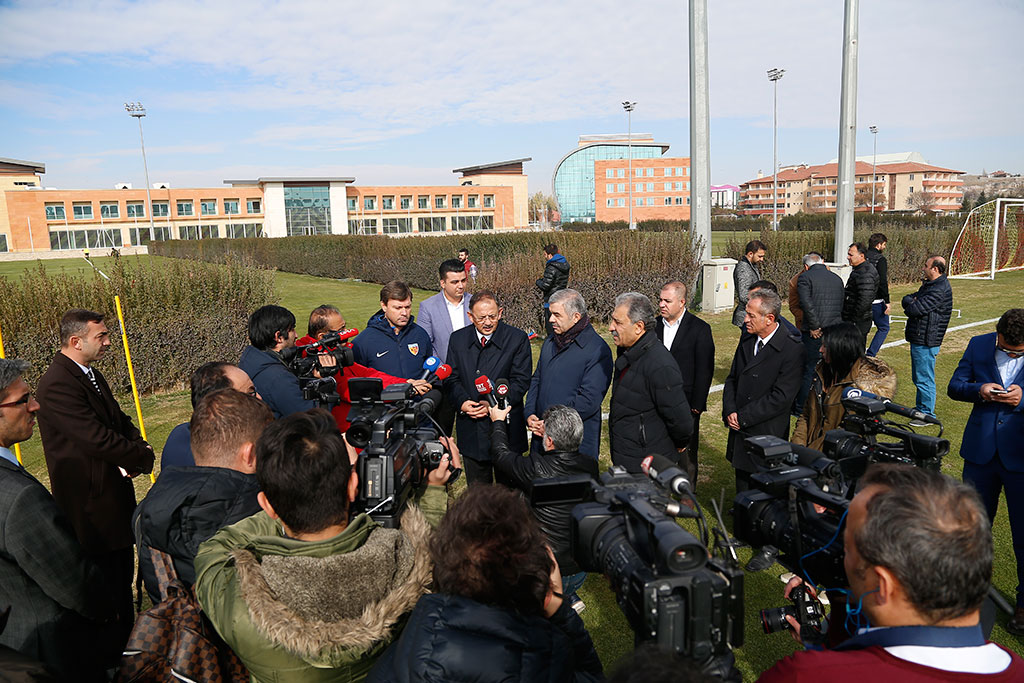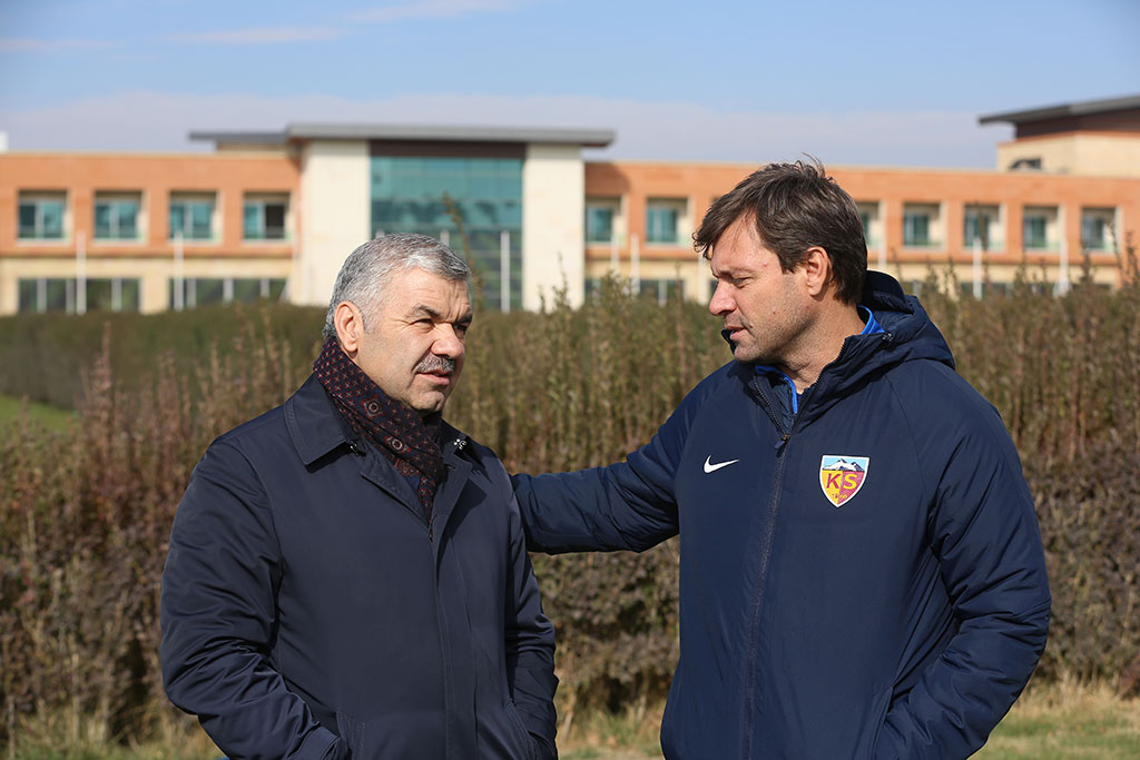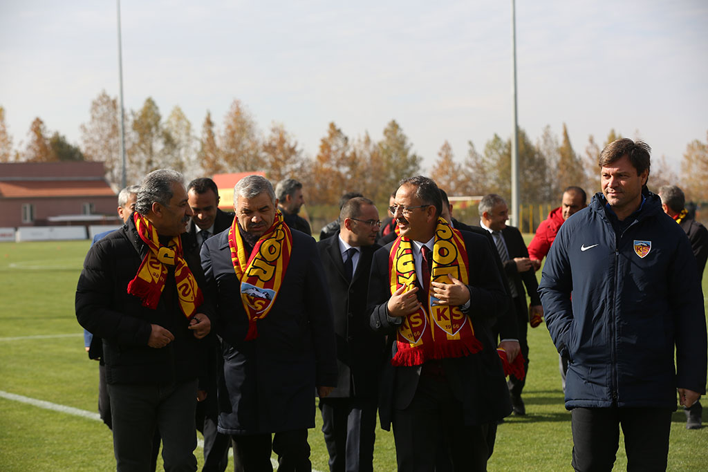 Kayseri Büyükşehir Belediye Başkanı Mustafa Çelik, AK Parti Genel Başkan Yardımcısı ve Önceki Dönem Çevre ve Şehircilik Bakanı Mehmet Özhaseki ile birlikte Kayserispor’u ziyaret etti. Özhaseki ve Çelik, Kayserispor için destek çağrısında bulundu. AK Parti Genel Başkan Yardımcısı Mehmet Özhaseki ve Büyükşehir Belediye Başkanı Mustafa Çelik, Kayserispor Başkanı Erol Bedir, yöneticiler ve Teknik Direktör Ertuğrul Sağlam tarafından karşılandı. Burada yaptığı açıklamada Kayserispor’un yükünün sadece Büyükşehir Belediyesi ve diğer belediyelere bırakılmaması gerektiğini vurgulayan AK Parti Genel Başkan Yardımcısı ve Kayseri Milletvekili Mehmet Özhaseki, “Kongre sonrası yönetimi tebrik etmek ve yıllarca beraber çalıştığımız Ertuğrul Hocamıza başarı dilemek için geldik. Önümüzdeki günlerde Büyükşehir Belediye Başkanımızın destekleri, Başkanımızın gayreti ile bu takım çok yukarılara taşınacaktır. Orta Anadolu’nun ortasında, pek fazla avantajları olmamasına rağmen kendi dinamiklerini harekete geçirip ayakları üzerinde duran ve Anadolu’daki şehirlere örnek gösterilen Kayseri’nin sporda da mutlaka ilerde olması gerekir. Bunun için de gerekli olan birlik beraberlik ve şehrimizin takımına sahip çıkması. Başta Büyükşehir Belediye Başkanımız ve Başkanlarımız Kayserispor’a sahip çıkıyorlar. İyi bir kadro ve tecrübeli bir teknik direktörümüz var. Burada eksik olan biraz şehrin desteği. Bu olmadığı zaman işler yürümüyor. İnşallah destekler sadece Büyükşehir ve ilçe belediyelerinin üzerinde kalmaz ve tüm şehre yayılır” dedi. Büyükşehir Belediye Başkanı Mustafa Çelik de Kayserispor için yaptıkları toplantıyı hatırlatarak, “Toplantıda kısa, orta uzun vadede neler yapabilirizin fikir teatisinde bulunduk. Acil olan desteği nasıl tedarik edebiliriz konusunda teklifler oldu. Bu teklifler doğrultusunda yapacağımız çalışmalardan önümüzdeki günlerde netice almayı umut ediyoruz. Kayserispor şehrin takımı. Hepimiz elbirliği ile takımızı layık olduğu yere getirirsek şehrin marka değeri yükselir” diye konuştu. Özhaseki ve Çelik, daha sonra bir süre takımın antrenmanını izledi.