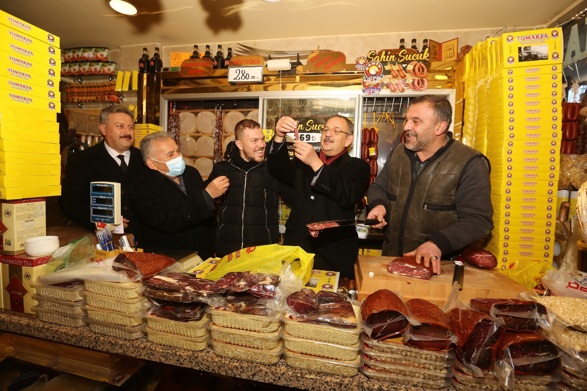 Kazancılar Çarşısı’nda esnaf ziyaret etti. Özhaseki ve Büyükkılıç’ı Kazancılar