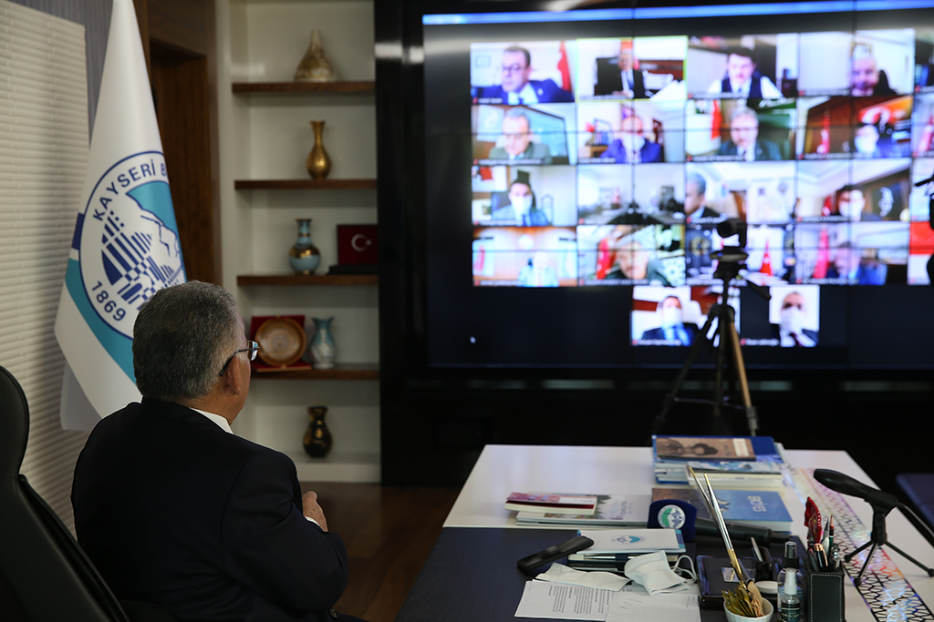 Kayseri Büyükşehir Belediye Başkanı Dr. Memduh Büyükkılıç, Kovid-19 mücadelesinde semt pazarlarının önemine işaret ederek, buradaki hareketliliğin kontrol altına alınabilmesi amacıyla İl Umumi Hıfzıssıhha Kurulu Toplantısı’nda gündeme gelen elektronik sayaç uygulamasına tam destek verdi. Başkan Büyükkılıç, anında talimat vererek Cuma günü açılacak 3 semt pazarına elektronik sayaç kurulmasını sağladı. Başkan Büyükkılıç, Vali Şehmus Günaydın başkanlığında video konferans yöntemiyle düzenlenen İl Umumi Hıfzıssıhha Kurulu Toplantısı’na katıldı. Yerel yönetimlerin pandemi ile mücadeleye ilişkin yürüttüğü çalışmaları değerlendiren Başkan Büyükkılıç, Vali Şehmus Günaydın’ın önerisiyle pazar yerlerinde elektronik sayım yapılması yönündeki fikrin hayata geçirilebilmesinin çok olumlu sonuçlar doğuracağını ifade etti. Elektronik sayaç uygulaması ile pazar yerlerindeki hareketliliğin çok daha sağlıklı bir şekilde kontrol altına alınmasının mümkün olduğuna işaret eden ve Büyükşehir Belediyesi olarak ellerinde mevcut bulunan 3 elektronik sayacın Pazar yerlerine kurulması talimatını veren Başkan Büyükkılıç, uyum kültürü ile birlikte çalışarak pandemi ile mücadelede daha etkili kazanımlar sağlanacağını vurguladı. Güvenli ulaşım konusunda da çalışmaların kararlılıkla devam ettiğine dikkat çeken Büyükkılıç, HES kodu uygulamasının uygulanmasıyla pozitif vakalar ile temaslıların dışarıda bulunmalarının engellendiğini söyledi. Başkan Büyükkılıç, “Ulaşımla ilgili yaptığımız uygulamalarımız devam ediyor. Geçen hafta Çarşamba günü 190 bin olan yolcu sayısı sokağa çıkma yasağının getirdiği süreçle bu hafta aynı gün Çarşamba 149 bine düştü. Saat uygulamasının getirdiği sınırlamalar ile uyarılara dikkat edildiğini gözlemliyoruz. İnşallah bunda biz başarılı olacağız. Ayrıca son 24 saatte toplu ulaşımı kullanmaya çalışan pozitif ve temaslı 9 kişiyi HES Kodu uygulaması sayesinde tespit ederek İl Sağlık Müdürlüğümüze bildirdik” ifadelerini kullandı.