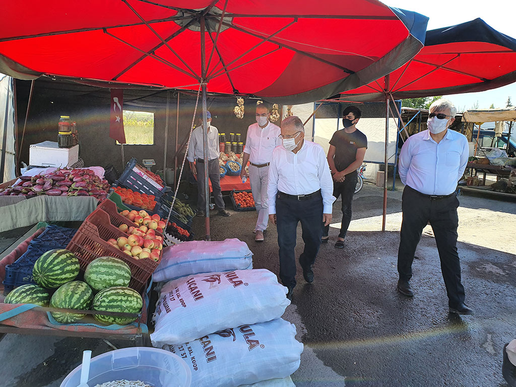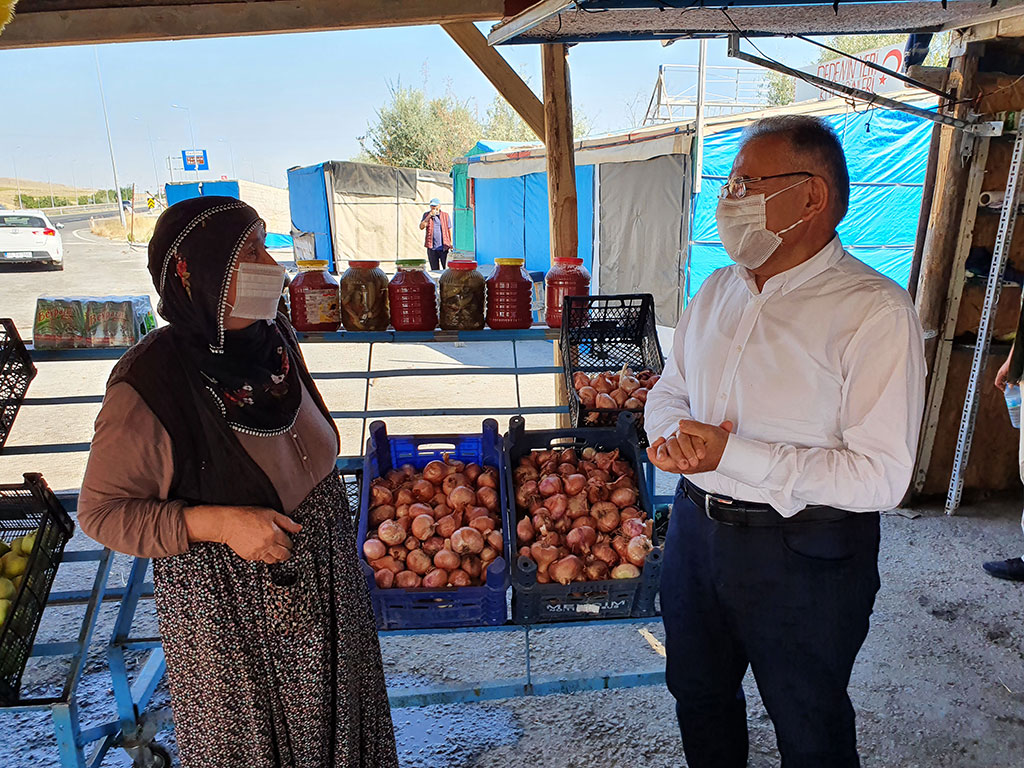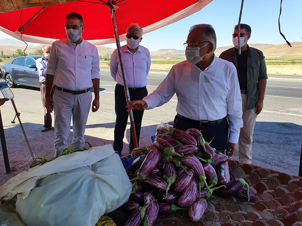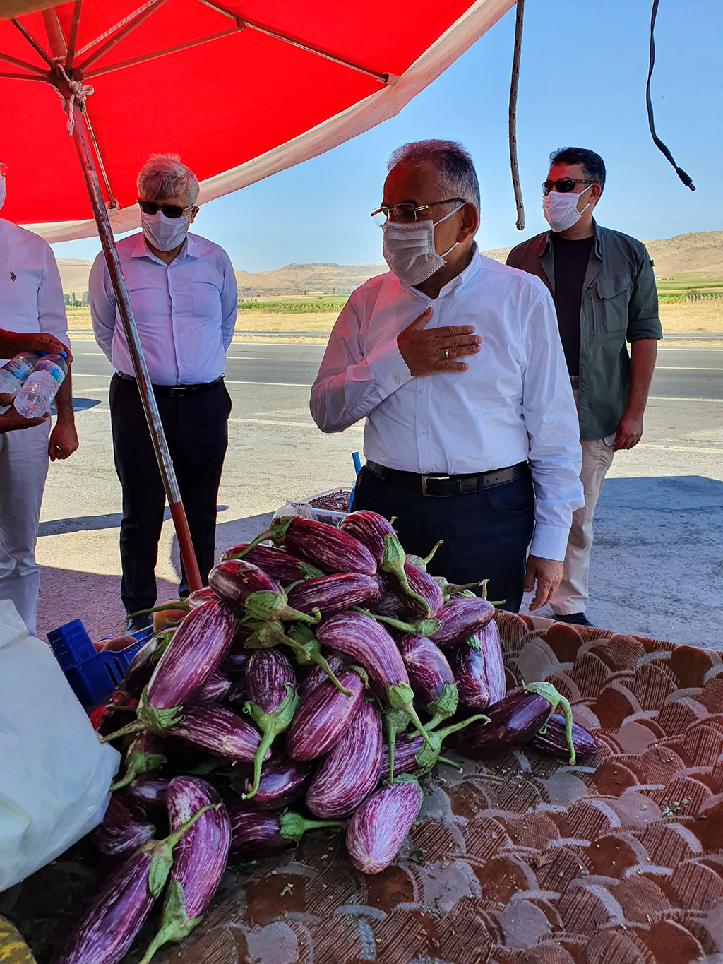 Kayseri Büyükşehir Belediye Başkanı Dr. Memduh Büyükkılıç, şehrin önemli yöresel değerlerine sahip çıkmaya devam ediyor. “Patlıcan denildi mi akıllara Yamula gelir” diyen Başkan Büyükkılıç, Yemliha’yı ziyaret ederek, üreticilerle bir araya geldi. Kayseri’de yerel ürünlerin üretimi ve tanıtımına önemli katkılar veren ve her zaman üreticinin destekçisi olan Büyükşehir Belediye Başkanı Dr. Memduh Büyükkılıç, Kayseri’nin en önemli yöresel ürünlerinden olan Yamula Patlıcanı’nın yetiştirildiği Yemliha’yı ziyaret etti. Burada yöresel ürünler satan üreticiler ile bir araya gelen Başkan Memduh Büyükkılıç, “Kayserimizin Yamula Patlıcanı olarak bilinen patlıcanının yetiştirildiği bölgedeyiz. Hemşehrilerimize Cenab-ı Allah helalinden bol rızık versin. Ürettiklerini pazarlamak suretiyle hem organik olarak bu ürünleri sunuyorlar hem de rızıklarını temin etmeye çalışıyorlar. Tabi bu koronavirüs süreci diye bilinen süreçte de kurallara uyuyorlar mı? Uymuyorlar mı? diye geçerken bir selam verdik. Hakikaten baktık hepsi de kurallara uyuyor. Çünkü şehrini seviyor, çünkü sağlık camiasını seviyor, onlara yük olmak istemiyor, emniyetini seviyor, onlara yük olmak istemiyor, belediyelerimizi seviyor, onlara yük olmak istemiyor; hem kendilerini koruyorlar hem bizleri koruyorlar hem şehrimizi koruyorlar. Ben böyle bizleri seven her zaman sahip çıkan dua eden hemşehrilerimize teşekkür ediyorum” şeklinde konuştu. Yemliha’da yöresel ürün satış yerinde yapılacak düzenleme ile ilgili de konuşan Başkan Büyükkılıç, “Bizim burayla ilgili bir düzenleme çalışmamız var. Ancak yer konusuyla alakalı sıkıntılarımız var. Bu konu ile ilgili girişimlerimizi hızlandıracağız. Buraya bir çeki düzen vereceğiz. Amacımız hem fiziki şartları daha da iyileştirmek hem de bu güzel ortamı ihtiyaçlara cevap verecek şekle getirmek” dedi. Kayseri Büyükşehir Belediye Başkanı Dr. Memduh Büyükkılıç, üreticilerle yaptığı sohbetin ardından maske, mesafe ve temizlik konusunda uyarılarını yenileyerek tüm üreticilere hayırlı işler temennisinde bulundu.
