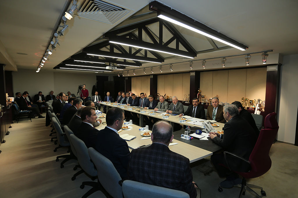 Büyükşehir Belediye Başkanı Mustafa Çelik, 2018 yılı yatırımlarını planlamak üzere muhtarlar ve ilçe belediye başkanlarıyla yaptığı toplantıların ardından Büyükşehir Belediyesi bürokratlarıyla bir araya geldi. Toplantıda, yapılacak olan yatırımlar tek tek ele alınarak detaylı bir şekilde değerlendirildi. Büyükşehir Belediyesi Başkanlık Toplantı Salonu’nda planlama toplantısı yapıldı. Büyükşehir Belediye Başkanı Mustafa Çelik, Genel Sekreter, Genel Sekreter Yardımcıları, Daire Başkanları ve belediye bünyesindeki şirketlerin yöneticileriyle bir araya geldi. Toplantıda devam eden yatırımlar, bu yıl yapımına başlanacak olan projeler ve muhtarlar ile ilçe belediyelerinden gelen talepler tek tek ele alındı. Büyükşehir Belediyesi’nin en önemli değerlerinden birisinin huzur içinde çalışmak olduğunu ifade eden ve bu huzurun da verimliliği getirdiğini vurgulayan Başkan Mustafa Çelik, “Huzur içinde çalışmak bana göre en büyük değer. Bir taraftan çalışırken, diğer taraftan kafanızda sıkıntı olsaydı yapılan işte verim düşerdi. Elhamdülillah böyle bir sıkıntıda yok” dedi. Her daire başkanıyla, yaptıkları işlerle ilgili sık sık toplantılar yaptıklarını ifade eden Başkan Mustafa Çelik, “Bu kez tüm bürokratlarımızla bir aradayız. 2018’i programlama anlamında muhtarla, ilçe belediye başkanlarıyla ve çeşitli sivil toplum örgütleriyle görüştük. Buralardan topladığımız bilgileri bürokratlarımızla birlikte değerlendirip 2018’i planlayacağız” diye konuştu. Büyükşehir Belediyesi’ndeki yatırımcı daire başkanlıklarıyla hizmet birimlerinin her birinin elinde kadrosu, imkanları ve bütçesi bulunduğunu dile getiren Büyükşehir Belediye Başkanı Çelik, planlama toplantısıyla bütçe ve ekipleri en iyi şekilde değerlendirerek ihtiyaç duyulan yatırımları planlayacaklarını kaydetti.