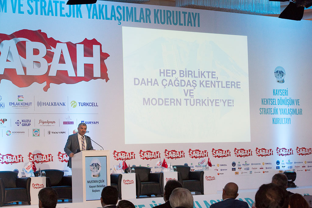 Başkan Çelik, Turkuvaz Medya Grubu’nun düzenlediği İnşaat Kurultayı’na katıldı. Sabah Gazetesi ve Turkuvaz Medya Grubu’nun gerçekleştirdiği İnşaat Kurultayı’nın dördüncüsü İstanbul, Bursa ve İzmir’den sonra Kayseri’de yapıldı. Kurultayın açılışında konuşan Büyükşehir Belediye Başkanı Mustafa Çelik, Kayseri’deki şehircilik ve kentsel dönüşüm çalışmalarıyla ilgili bilgi verdi. Konuşmasında planlamanın önemini vurgulayan Başkan Çelik, planlamanın gelişmeyi de beraberinde getirdiğini belirtti. Sabah Gazetesi ve Turkuvaz Grubu’nun Radisson Blu Hotel’de düzenlediği İnşaat Kurultayı’na Çevre ve Şehircilik Bakanı Mehmet Özhaseki, Vali Süleyman Kamçı ve Büyükşehir Belediye Başkanı Mustafa Çelik’in yanı sıra inşaat sektörünün Türkiye’deki önemli isimler katıldı. Toplantıda yaptığı konuşmada, toplantılar dizisinin Kayseri’de de yapılıyor olmasını önemsediklerini belirten ve teşekkür eden Başkan Çelik, Kayseri’nin Türkiye ortalamasının üzerinde gelişen bir şehir olduğunu söyledi. Kayseri’nin düzenli büyümesinin en önemli etkeninin planlama olduğunu vurgulayan Başkan Mustafa Çelik, “Kayseri doğru temeller üzerine kurulmuş, düzgün planların yapıldığı bir şehir. 1940’lı yıllardaki Belediye Başkanımız Emin Molu şehrin ilk planlı çalışmalarını başlatmış. O zamanlarda temelleri atılan düzgün ve planlı gelişme kültürü hala devam ediyor” dedi. Daha sonra gelen belediye başkanlarının bu kültürle çalıştığını ve planlama kültürünü miras bıraktığını ifade eden Başkan Çelik, Çevre ve Şehircilik Bakanı Mehmet Özhaseki’nin de belediye başkanlığı döneminde yaptığı çalışmalardan bahsetti. Şehirlerin gelişmesinin belediye başkanlarının vizyonuyla doğru orantılı olduğunu da vurgulayan Büyükşehir Belediye Başkanı Çelik, “Rabbim hayırlı ömürler verirse biz de bu şehrin planlı gelişmesinde hizmet ederiz. Göreve başlayınca ‘Planlı Gelişim, Estetik Dönüşüm, Fonksiyonel Değişim’ şeklinde bir vizyon belirledik. Planın, projenin önemini daha vizyonumuzun ilk kelimesinde ortaya koyduk. Eğer bir şehir planlı gelişirse Kayseri örneğindeki gibi Türkiye ortalamasının üzerinde gelişiyor” diye konuştu. SAHABİYE’DE İHALEYE ÇIKILIYOR Bu düşüncelerle Ulaşım Master Planı, Tarımsal Gelişme Ana Master Planını, Üst ölçekli Ana İmar Planı ve Kentsel Dönüşüm Master Planı hazırladıklarını ifade eden Başkan Mustafa Çelik, kentsel dönüşüm alanında yapılan çalışmalardan da bahsetti. Sahabiye Kentsel Dönüşüm Projesiyle ilgili ayrıntılı bilgiler veren Başkan Çelik, “Ankara’da Ulus, Kızılay ne ise, İstanbul’da Taksim, Şişli ne ise Kayseri de Sahabiye o. Şehrin merkezinde bir yer. Şehrin merkezinde yoğunluğun ve değerinin çok fazla olduğu 510 dönümlük dönüştürülmesi zor; ama şart olan bir bölge. Mevcut planda bir m2 dahi park alanı yok. Yeni planımızda 350 bin m2 yeşil alan olacak. 2,5 senedir süren çalışmalarımızın her bir safhası birbirinden zordu. 512 bağımsız birimin bulunduğu birinci etap olarak belirlediğimiz alanda 502 hak sahibiyle uzlaşarak anlaştık. Bu bir rekordur. Sadece mirastan dolayı kendi aralarında dahi anlaşamayan 10 tanesinin kanuni işlemlerle satışı gerçekleşti. Hamdolsun bugüne geldik. İlk etabın ihalesine kasım ayı içerisinde çıkıyoruz. Burada bulunan firmalarımızı da ihaleye davet ediyorum. Yaklaşık 140 bin m2’lik iş sizi bekliyor. Bütün bu işleri yaparken kendi başımıza yapmadık. Özhaseki Bakanım sağ olsun hep yanımızda oldu. Kendilerine projeye ve belediyedeki tüm işlerimize verdiği desteklerden dolayı teşekkür ediyorum” dedi. “TÜRKİYE DÖNÜŞECEK” İnşaat Kurultayı’na katılan Çevre ve Şehircilik Bakanı Mehmet Özhaseki de dönüşüm çalışmaları ve bu çalışmalar için gerekli olan finans modelleri hakkında bilgi verdi. Önümüzdeki günlerde finans modellerini açıklayacaklarını ifade eden Özhaseki, “Sıfır faizli, sadece masraf alacağımız bir finans modellemesi var. Bakanlığımızın elindeki tüm imkanları kentsel dönüşüme yönlendireceğiz. Elimizdeki kredi imkanları kentsel dönüşümde kullanılacak. Bunun için tüm sosyal tesislerimizi satıyoruz. Kaynak oluşturma konusunda Maliye Bakanlığımızla da önemli bir çalışma yaptık. Bu çalışmayla elimiz kolumuz rahatlayacak. İnşallah bu bütçe ile Türkiye dönüşecek. Bu dönüşümle Türkiye piyasasına her yıl 150 milyar TL girecek ve istihdamda ciddi bir artış olacak” diye konuştu.
