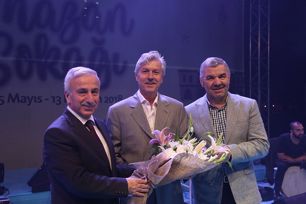 Büyükşehir Belediye Başkanı Mustafa Çelik, Kayseri Valisi Süleyman Kamçı ve Çevre ve Şehircilik Bakanı Mehmet Özhaseki ile birlikte Ramazan Sokağı’nda vatandaşlarla bir araya geldi. Ramazan Sokağı’nda gerçekleştirilen gezi süresince vatandaşlar Bakan Özhaseki ve Başkan Çelik’e büyük ilgi gösterdi. Gezi sonrasında Bakan Özhaseki’yi uğurlayan Vali Kamçı ve Başkan Çelik Ramazan Sokağı’nın sanatçı konuğu Erkan Mutlu’yu da dinlediler. Ramazan Ayı boyunca her akşam Ramazan Sokağı’nda halkla bir araya gelen Büyükşehir Belediye Başkanı Mustafa Çelik, bu kez de sokağı Kayseri Valisi Süleyman Kamçı ve Çevre ve Şehircilik Bakanı Mehmet Özhaseki ile birlikte gezdi. Ramazan Sokağı’ndaki tüm esnafları tek tek ziyaret eden Bakan Özhaseki, Vali Kamçı ve Başkan Çelik, “Hayırlı İşler” temennilerinde bulundular. Çevre ve Şehircilik Bakanlığı ile ilçe belediyelerinin “5 Haziran Dünya Çevre Günü” vesilesiyle Ramazan Sokağı’nda kurduğu standa da uğrayan Başkan Çelik, Vali Kamçı ve Bakan Özhaseki burada vatandaşlara bilgilendirme formları ve çeşitli hediyeler dağıttı. Ramazan Sokağı gezisi esnasında halkın yoğun ilgi ve sevgisiyle karşılaşan Bakan Özhaseki ve Başkan Çelik, vatandaşlarla bol bol hatıra fotoğrafı çektirdi. Gezinin ardından Çevre ve Şehircilik Bakanı Mehmet Özhaseki’yi uğurlayan Vali Süleyman Kamçı ve Başkan Mustafa Çelik, teravih namazı sonrası başlayan Erkan Mutlu’nun ilahi dinletisi programını izlediler. “SANATI VE SANATÇIYI SEVEN BİR KAYSERİ VAR” Kayseri Büyükşehir Belediye Başkanı Mustafa Çelik ve Kayseri Valisi Süleyman Kamçı, Erkan Mutlu’ya dinleti sonrasında teşekkür ederek çiçek verdi. Yaptığı konuşmada Ramazan Sokağı’nın başından itibaren halkın coşkusuna değinen Başkan Mustafa Çelik “Sanatı ve sanatı ve sanatçıyı seven bir Kayseri var. Biz de bu bilinçle Türkiye’deki en güçlü sazları ve sesleri hemşehrilerimizle buluşturuyoruz. Hemşehrilerimiz de burada Ramazan Ayı’nın manasına uygun, kaliteli bir şekilde vakit geçiriyorlar” şeklinde konuştu. Vali Süleyman Kamçı da yaptığı etkinlikler için Büyükşehir Belediyesine ve katılımları için Kayseri halkına teşekkür etti.
