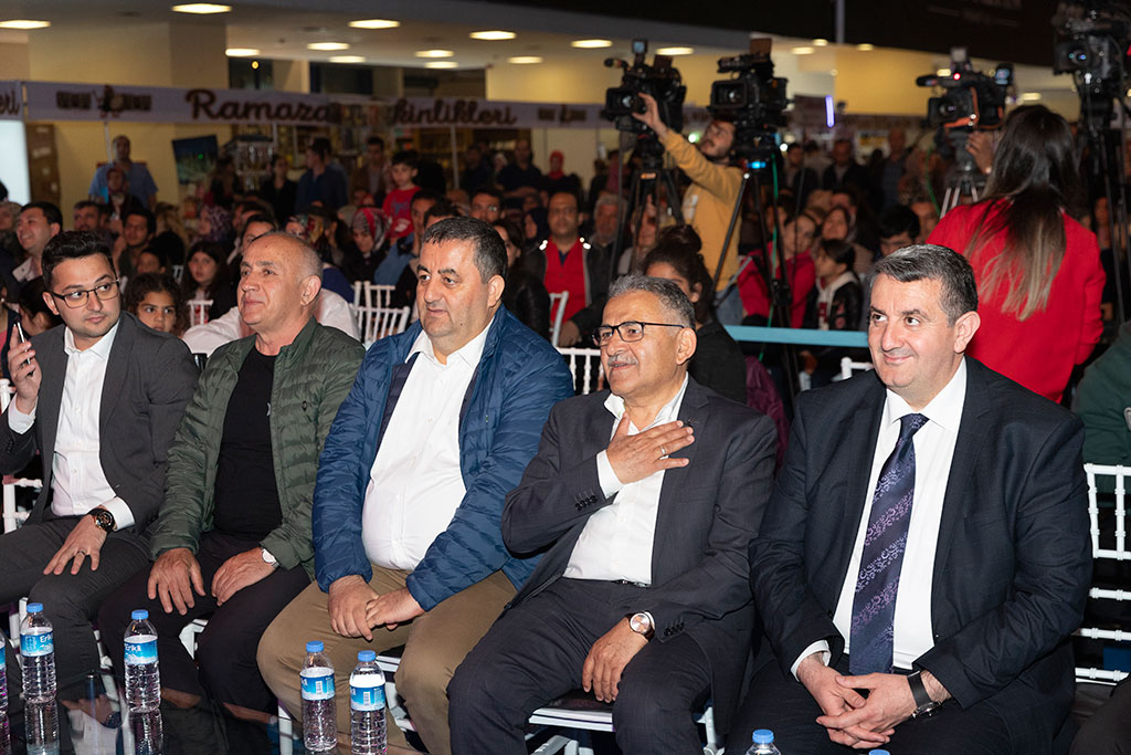 Büyükşehir Belediye Başkanı Dr. Memduh Büyükkılıç, Ramazan etkinliklerinin düzenlendiği Kayseri Dünya Ticaret Merkezi’ni ziyaret etti ve gecenin konuğu olan İbrahim Sadri’yi dinledi. Ramazan etkinliklerine katılan İbrahim Sadri, birbirinden güzel şiirlerini seslendirdi. Kayseri Dünya Ticaret Merkezi’ndeki Ramazan etkinlikleri, Ramazan’ın ruhuna uygun ortamı, esnafları ve konuklarıyla Ramazan gecelerine renk katmaya devam ediyor. Her akşam ünlü isimleri ağırlayan Ramazan etkinliklerine bu kez şiir denince akla gelen ilk isimlerden birisi olan İbrahim Sadri katıldı. Büyükşehir Belediye Başkanı Memduh Büyükkılıç da etkinlik alanını ziyaret ederek İbrahim Sadri’yi dinledi. İbrahim Sadri'nin müzik eşliğinde yaptığı şiir dinletisine vatandaşlar da büyük ilgi gösterdi. Gecenin sonunda İbrahim Sadri ve ekibine tek tek teşekkür eden Başkan Memduh Büyükkılıç, tüm izleyenlerin Ramazan ayını tebrik ederek, “Allah Kadir Gecesi’ne erişmeyi, bayramları bayram gibi yaşamayı nasip etsin. İbrahim Sadri’yi Ramazan ayında Kayseri’de görmekten mutluluk duyduk” dedi. İbrahim Sadri de Kayserililerle beraber olmaktan duyduğu memnuniyeti dile getirerek Başkan Büyükkılıç’a teşekkür etti.