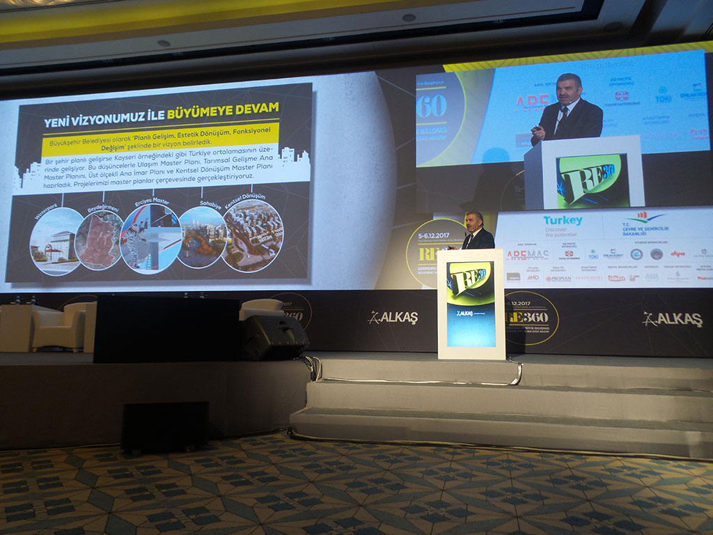Gayrimenkul sektörünün büyük buluşması olan RE360 toplantısı Four Seasons Hotel İstanbul Bosphorus’ta yapıldı. Toplantıya Kayseri Büyükşehir Belediye Başkanı Mustafa Çelik de katılarak, Kayseri’deki yatırım imkanlarına ilişkin detaylı bir sunum yaptı. Başkan Çelik, Kayseri’yi her alanda büyütmek için gayret gösterdiklerini söyledi. Çevre ve Şehircilik Bakanlığı’nın yanı sıra gayrimenkul sektörünün en önemli kuruluşlarının destek verdiği RE360 toplantısına yerli ve yabancı uzmanlar katıldı. Ülkelerdeki yatırım fırsatlarının uzmanlar tarafından yeni açılımlarla anlatıldığı ‘RE360’ta projeleriyle dikkat çeken şehirlerden Kayseri de yer aldı. Büyükşehir Belediye Başkanı Mustafa Çelik, bir şehri geleceğe taşımanın öyküsünü bazı projelerle birlikte katılımcılarla paylaştı ve gelecek planlamalarından bahsetti. “İNSAN YETİŞTİRMEDE BEREKETLİ TOPRAKLARA SAHİBİZ” RE360 toplantısındaki konuşmasına Kayseri ile ilgili detaylı bilgiler vererek başlayan Başkan Mustafa Çelik, Kayseri’nin en önemli gücünün insan unsuru olduğuna vurgu yaparak “Kayseri, her ne kadar Orta Anadolu’nun sert kara iklimine sahip olsa da insan yetiştirmede bereketli topraklara sahip” diye konuştu. Kayseri’nin çalışkan ve kazancını paylaşan insanların şehri olduğunu dile getiren ve sadece Kayseri’nin değil Türkiye’nin kalkınmasına katkı veren iş adamlarının Erciyes’in eteklerinde yetiştiğini ifade eden Başkan Çelik, “Kayseri, bugün itibarıyla Türkiye ortalamasının üzerinde büyüyen ve gelişen bir şehirdir. Kayseri’de iki önemli kültür büyüme ve gelişmenin adeta kaynağıdır. Birincisi planlı gelişme kültürü, ikincisi kurumlar arasındaki uyum kültürü. Günümüz dünyasında hem ülkeler hem de şehirler arasında müthiş bir yarış ve rekabet yaşanıyor. Dünyada, adı ülkesinin önüne geçmiş çok sayıda şehir var. Bu şehirler bir an bile durmaksızın sahip oldukları değerleri yenilemeye, geliştirmeye ve uluslararası arenada pazarlamaya devam ediyorlar. İşte bu yüzden biz de Kayseri Büyükşehir Belediyesi olarak ülke çapında elde ettiğimiz bu zirve noktayı korumak için yeni projeler geliştiriyoruz. Şehir içi ulaşımı rahatlatacak köprülü kavşaklar, yeni üretim bölgeleri, sosyal ve kültürel mekanlar ile kentsel dönüşüm faaliyetleri bunların başında geliyor” diye konuştu. “KLASİK BELEDİYECİLİKLE YETİNMİYORUZ” Büyükşehir Belediyesi’nin Kayseri’nin en önemli yatırımcı kuruluşu durumunda olduğunu vurgulayan ve buna ilişkin önemli rakamlar veren Büyükşehir Belediye Başkanı Çelik, sözlerini şöyle sürdürdü: “Büyükşehir Belediyesi olarak ‘Planlı Gelişim, Estetik Dönüşüm, Fonksiyonel Değişim’ şeklinde bir vizyon belirledik. Planın, projenin önemini daha vizyonumuzun ilk kelimesinde ortaya koyduk. Eğer bir şehir planlı gelişirse Kayseri örneğindeki gibi Türkiye ortalamasının üzerinde gelişiyor. Bu düşüncelerle Ulaşım Master Planı, Tarımsal Gelişme Ana Master Planını, Üst ölçekli Ana İmar Planı ve Kentsel Dönüşüm Master Planı hazırladık. Projelerimizi master planlar çerçevesinde gerçekleştiriyoruz. Kayseri’de pek çok projeyi hayata geçirdik ve pek çok proje üzerinde çalışıyoruz. Klasik belediye hizmetlerinin yanı sıra şehir ve ülke ekonomisini büyütmek için de projeler üretiyor ve hayata geçiriyoruz.” “KAYSERİ’YE İLGİ HER GEÇEN YIL ARTIYOR” Konuşmasında başta gayrimenkul sektörü olmak üzere tüm yatırımcıların dikkatini çekecek dört projeyle ilgili bilgiler veren Başkan Çelik, önce Erciyes projesine değindi ve projenin yatırımcılar için önemli bir fırsat olduğunu dile getirdi. Başta Erciyes olmak üzere Kayseri’yi cazibe merkezi haline getiren projelerin şehre ilgiyi artırdığına da dikkat çeken Başkan Çelik, “Kayseri’ye son yıllarda ilginin her anlamda arttığını ve Kayseri’nin her yönüyle cazibe merkezi olduğunu belirtmek isterim. Bunun bir göstergesi de Kayseri’ye olan uçak seferlerindeki artış ve havaalanımızdaki yolcu trafiği. Devlet Hava Meydanları İşletmesi Genel Müdürlüğü’nün verilerine göre 2008 yılında havaalanımızı kullanan yolcu sayısı 674 bin 800’dü. Sonraki yıllarda her yıl ortalama yüzde 15 oranında yolcu sayımız arttı. 2016 yılında yolcu sayımız 1 milyon 972 bine ulaştı. Bu yılın ilk 10 ayı itibarıyla ise 1 milyon 825 bin yolcumuz oldu. Bu da gösteriyor ki bu yıl 2 milyon yolcuyu geçeceğiz ve 2 milyon 100 bini aşacağız. Bu rakamlar Kayseri’de hava yolu yolcu sayısının son 10 yılda neredeyse 4 misli arttığını gösteriyor. Bu da Kayseri’ye olan ilginin boyutunu ortaya koyuyor” dedi. “KENTSEL DÖNÜŞÜME YENİ ANLAYIŞ GETİRDİK” Kayseri’deki kentsel dönüşüm çalışmalarının amiral gemisi durumundaki Sahabiye Kentsel Dönüşüm Projesi’nden de bahseden Büyükşehir Belediye Başkanı Mustafa Çelik, projenin şehre katacağı yeni çehre ile Kayseri'nin gelecek yüzyılına damga vuracağını kaydetti. Projenin her etabıyla kentsel dönüşüme yeni bir anlayış getirdiğini ifade eden Başkan Çelik, projenin yatırımcılar için önemli fırsatlar içerdiğini söyledi. “WATER PARK YAPIYORUZ” İnönü Parkı devamında Tuna Caddesi ve 30 Ağustos Bulvarı arasında bulunan 30.000 m2 alanda yapmayı planladıkları Water Park Projesi’nden de bahseden Başkan Çelik, projenin Kayseri’ye ayrı bir renk katacağını belirtti. Başkan Mustafa Çelik, RE360 toplantısındaki katılımcılarla Beydeğirmeni Toplu Besi Bölgesi projesini de paylaştı. Eylül ayında temeli atılan projenin Türkiye’nin en büyük besi bölgesini Kayseri’ye kazandıracağını ifade eden Başkan Çelik, bölgenin yatırımcılar için verim