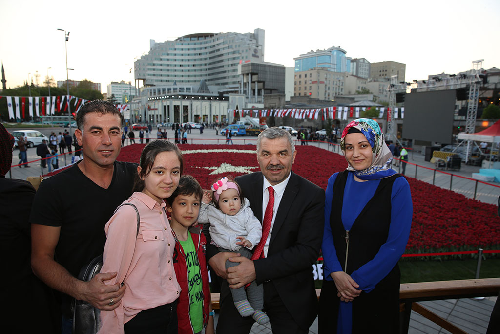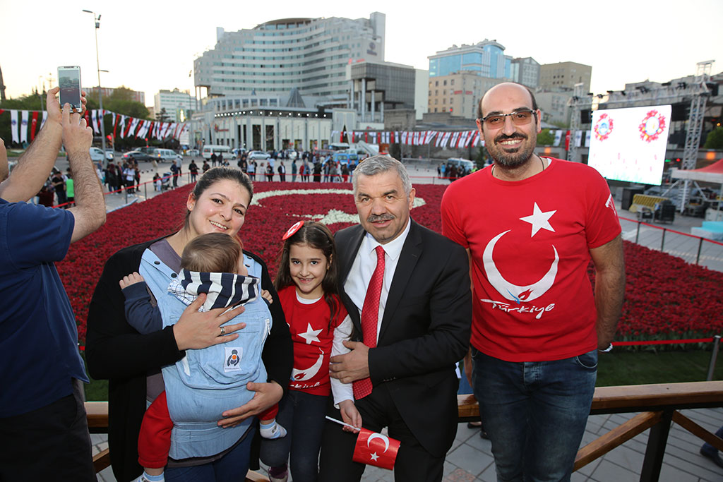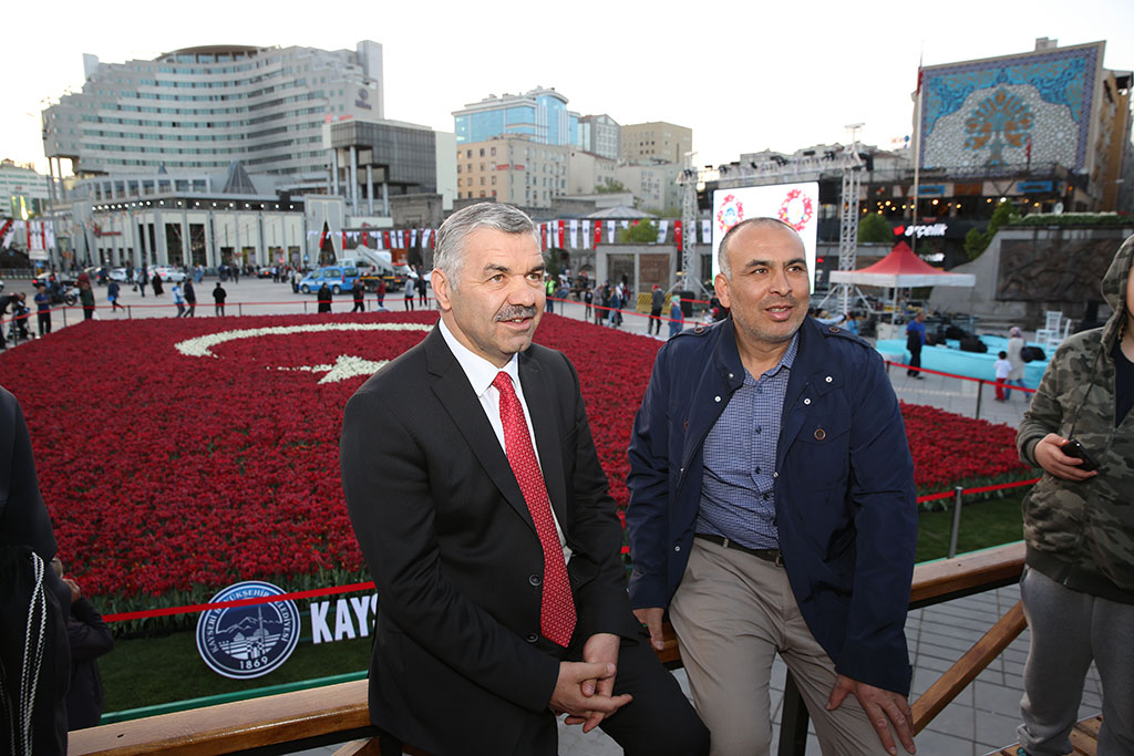 Büyükşehir Belediyesi tarafından lale peyzajı ile yapılan dünyanın en büyük Türk Bayrağı halkın büyük ilgisiyle karşılaştı. Dünya rekoru kıran Türk Bayrağını görmek isteyenler Cumhuriyet Meydanı’na akın ediyor. Büyükşehir Belediye Başkanı Mustafa Çelik de muhteşem güzelliği görmek isteyenlerle birlikte Cumhuriyet Meydanı’ndaydı. Dünya Rekorları Rekor Tescil ve Hakem Heyeti tarafından tescil edilen, 168 bin 100 lalenin kullanılmasıyla yapılan 403,44 metrekare büyüklüğündeki Türk Bayrağı adeta ziyaretçi akınına uğruyor. Büyükşehir Belediyesi tarafından yapılan bu güzelliği görmek için Cumhuriyet Meydanı’na gelenler fotoğraflar çektirerek bu özel anı ölümsüzleştiriyor. Büyükşehir Belediye Başkanı Mustafa Çelik de akşam saatlerinde Cumhuriyet Meydanı’na giderek vatandaşlarla bir araya geldi. Başkan Çelik, dünya rekoru bayrağımızın önünde vatandaşlarla fotoğraf çektirdi. Birçok vatandaşın bayrağımızı görmek için ay yıldızlı tişörtlerle Cumhuriyet Meydanı’na geldikleri görüldü.