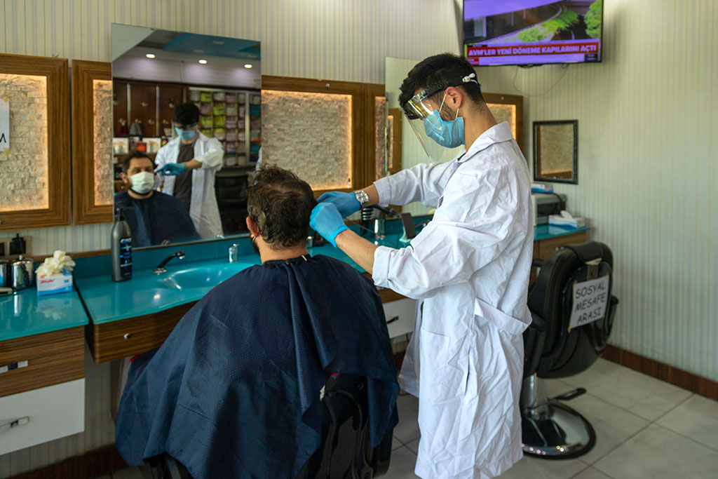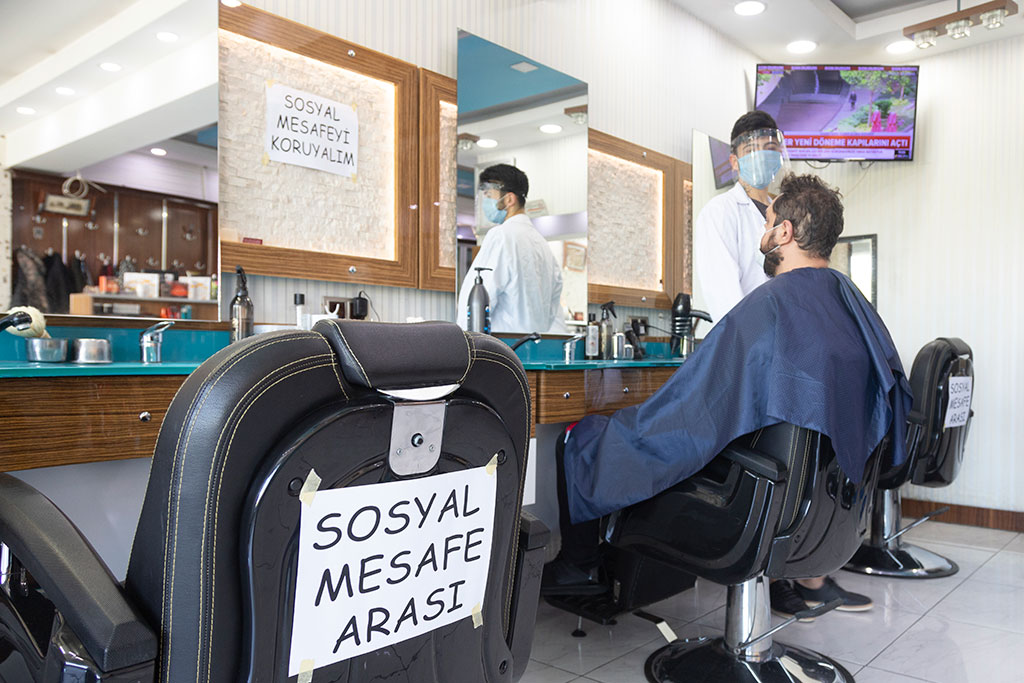Kayseri Büyükşehir Belediyesi, koronavirüs tedbirlerine azami derecede uyulması için denetimlerini aralıksız sürdürüyor. Covid-19 ile mücadele kapsamında 21 Mart’tan bu yana ilk kez kapılarını açan berber ve kuaförlerde denetimler yapıldı. Yaklaşık 50 gün sonra açılan berber ve kuaförlerin koronavirüs tedbirlerine uyarak çalışıp çalışmadığıyla ilgili Büyükşehir Belediyesi zabıtasınca denetimler gerçekleştirildi. Berber ve kuaför esnafını denetleyen zabıta ekipleri, bu süreçte uyulması gereken kurallar ile ilgili esnafı bilgilendirdi. Denetimlerde; işyerlerinin temizliği, dezenfektan ya da kolonyaların bulundurulması, maske takılması, sosyal mesafeye uyulması, randevu usulü çalışılması, tek kullanımlık havluların tercih edilmesi gibi konularla ilgili esnafa açıklamalarda bulunuldu ve bu süreçte çalışma esaslarına uyulması gerektiği konusunda uyarılar yapıldı.
