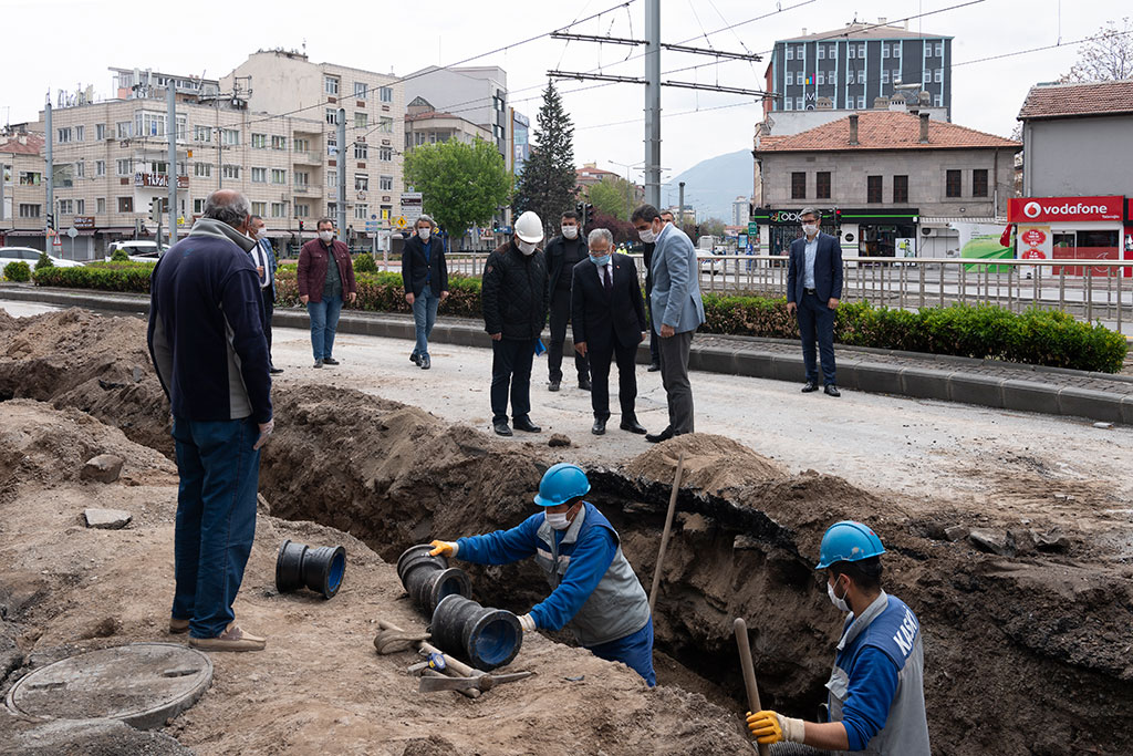 Kayseri Büyükşehir Belediye Başkanı Dr. Memduh Büyükkılıç, sokağa çıkma kısıtlaması nedeniyle şehrin merkezi bölgelerinde KASKİ tarafından yapılan alt yapı çalışmalarını da takip etti. Başkan Büyükkılıç, normal günlerde trafiği engellememek için yol ve alt yapı çalışmalarını kısıtlamaların sürdüğü hafta sonlarına aldıklarını kaydetti. MEYDANDA POLİSLERİ ZİYARET ETTİ Büyükşehir Belediye Başkanı Dr. Memduh Büyükkılıç, sokağa çıkma kısıtlaması nedeniyle Cumhuriyet Meydanı’nda görev yapan polisleri de ziyaret etti. Emniyet mensupları ile bir süre sohbet eden Başkan Büyükkılıç, kolaylıklar diledi. KENT EKMEK HİZMETTE Cumhuriyet Meydanı’nda bulunan Kent Ekmek büfesini de ziyaret eden Başkan Memduh Büyükkılıç, sokağa çıkma kısıtlaması süresince Kent Ekmek büfelerinin 10.30 ile 18.30 arasında açık olduğunu, ayrıca mobil araçların 12.00 ile 19.00 saatleri arasında tüm mahallelerde ekmek dağıtımı yaptığını söyledi. KASKİ ALT YAPIYI YENİLİYOR Büyükşehir Belediye Başkanı Büyükkılıç, Düvenönü-Osman Kavuncu Bulvarı istikametinde KASKİ tarafından yapılan alt yapı çalışmalarını da takip etti. KASKİ Genel Müdürü Doç. Dr. Özgür Özdemir'den yapılan çalışmalarla ilgili bilgiler alan Başkan Büyükkılıç, Büyükşehir Belediyesi birimlerinin sokağa çıkma kısıtlamasını hizmete dönüştürdüğünü ifade ederek, “KASKİ Genel Müdürlüğümüz ana arterlerde daha önceki boruları hem sağlıklı ductil borularla değiştiriyor, hem de çaplarını büyütüyor” dedi. Kayserililerin sokağa çıkma sınırlandırmasına yüzde 100 uymasını hizmete dönüştürdüklerini ifade eden Başkan Büyükkılıç, “Ekmek fabrikamız, alt yapı kuruluşlarımız, sosyal hizmetlerimizle her türlü hizmeti sürdürmekteyiz” diye konuştu. KASKİ, sokağa çıkma sınırlandırmasının yapılması halinde önümüzdeki hafta sonları da merkezi bölgelerde alt yapı çalışmalarına devam edecek. KASKİ; Düvenönü-Osman Kavuncu Bulvarı’nda ekonomik ömrünü tamamlayan 140’lık PVC boruları 150’lik ductil borularla değiştiriyor ve abone bağlantılarını da yeniliyor.