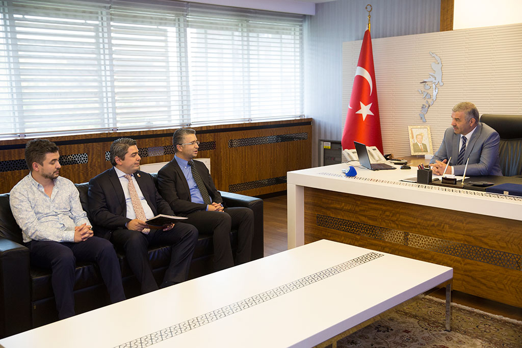 12. Bölge Kayseri Eczacı Odası Başkanı Oğuzhan Ulutaş ve yönetim kurulu üyeleri Büyükşehir Belediye Başkanı Mustafa Çelik’i ziyaret etti. Başkan Çelik, ziyarette yakında hizmete açılacak olan Entegre Sağlık Kampüsü çevresinde yaptıkları planlama hakkında açıklamalarda bulundu. Başkan Çelik, örnek bir sağlık modeli düşündüklerini belirtti. Genel kurulunu yaparak yeni yönetimini belirleyen 12. Bölge Kayseri Eczacı Odası’nın yeni yönetimi Büyükşehir Belediye Başkanı Mustafa Çelik tarafından kabul edildi. Oda Başkanı Oğuzhan Ulutaş ve yönetim kurulu üyeleriyle bir süre görüşen Başkan Mustafa Çelik, yönetimin hayırlı olması temennisinde bulundu. Bölge Hastanesi çevresinde yaptıkları planlama hakkında da bilgi veren Başkan Mustafa Çelik, “Bölge Hastanesi çevresini kendi haline bırakmadık. Hastane karşısındaki büyük araziyi TOKİ’den devraldık. Burada çok ciddi bir çalışma yaparak hastane çevresindeki ihtiyaçları giderecek şekilde planlayacağız. Burada ilgili tüm meslek erbabının bulunacağı alanlar çıkarmak istedik. 3-4 ayrı proje üzerinde çalışıyoruz. Yapacağımız projeye ve planlamaya katkı vermek isterseniz tekliflerinizi almaya hazırız. Medikalciler ve diğer sağlık birimleri ile de görüşeceğiz. Orada güzel bir sağlık kenti, güzel bir sağlık modeli gelişsin istiyoruz” dedi. Büyükşehir Belediye Başkanı Çelik, planlama için düşündükleri bazı proje örneklerini de gösterdi. 12. Bölge Kayseri Eczacı Odası Başkanı Oğuzhan Ulutaş da projeyle ilgili fikirlerinin alınmak istenmesinden dolayı Başkan Çelik’e teşekkür ederek, “Nerde görev düşerse tüm arkadaşlarımızla birlikte hazırız. Tüm hemşehrilerimizin iyi hizmet alması, ve bunun için güzel işyeri ortamı hazırlanması önemli. Bunun sizler eliyle yapılması daha düzenli, daha güzel, daha kaliteli hizmet vermemizi sağlayacaktır. Emekleriniz için çok teşekkür ediyorum” diye konuştu.