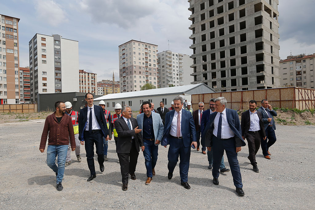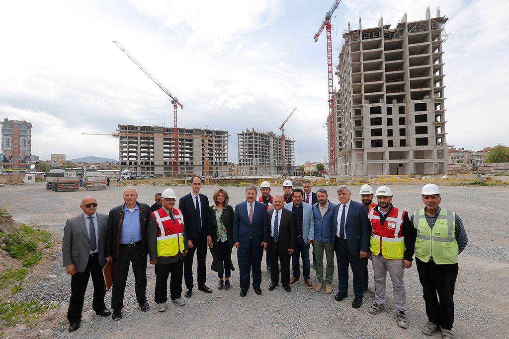 Kayseri Büyükşehir Belediye Başkanı Dr. Memduh Büyükkılıç, Sahabiye Kentsel Dönüşüm Projesi’nin şantiye alanında incelemelerde bulundu. Başkan Büyükkılıç, projenin hız kesmeden devam ettiğini, ikinci etap için de ihale aşamasına geldiklerini belirtti. Büyükşehir Belediye Başkanı Memduh Büyükkılıç’ın Sahabiye Kentsel Dönüşüm Projesi’ndeki incelemelerine Melikgazi Belediye Başkanı Mustafa Palancıoğlu ile Büyükşehir bürokratları da katıldı. Başkan Büyükkılıç, şantiye alanında incelemeler yaparak ilk etabın inşaatlarını yapan Erkut İnşaat’ın yetkilileri ile görüştü. Sahabiye Projesi ile ilgili bir açıklama yapan Başkan Memduh Büyükkılıç, Sahabiye’nin Kayseri’nin prestij projelerden biri olduğunu söyledi. Kış şartlarından ve yasal mevzuattan kaynaklı olarak müteahhit firmanın birkaç ay bekleme süresi olduğunu ifade eden Başkan Büyükkılıç, “Şimdi kaldıkları yerden; durmak yok, koşmaya devam mantığıyla çalışmalara başladılar” dedi. Sahabiye Kentsel Dönüşüm Projesi’nin ikinci etabı için de çalışmalara hız verdiklerini dile getiren Başkan Memduh Büyükkılıç, “Bakanlığımızın tavsiyesini de dikkate alarak ikinci etaptaki 6 blokla ilgili gerekli çalışmalar yaptık. Yakında ihaleye çıkıyoruz” diye konuştu.