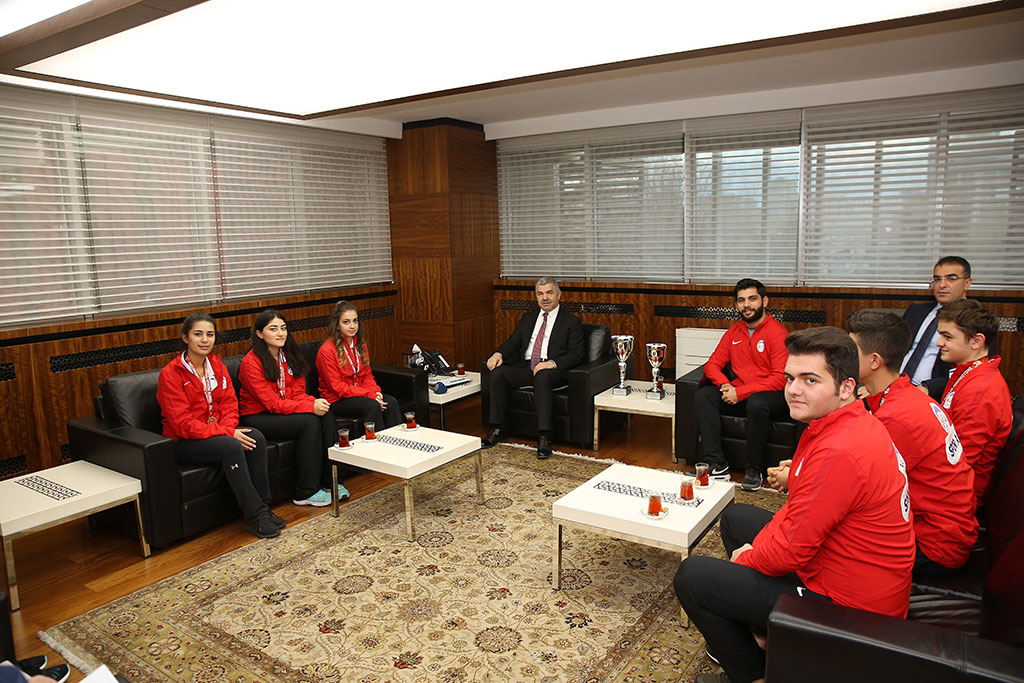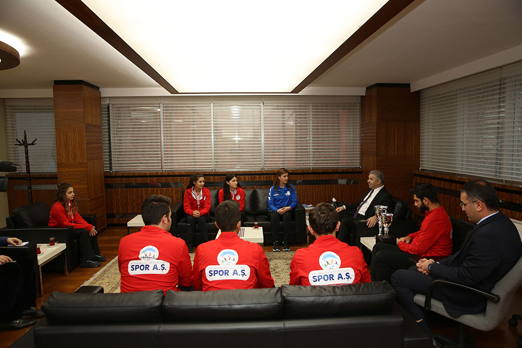 Kayseri Büyükşehir Belediye Başkanı Mustafa Çelik’in okçuluk sporuna verdiği destekler meyvelerini vermeye devam ediyor. Samsun’daki Federasyon Kupası’ndan madalya ve kupalarla dönen Büyükşehir Belediyesi bünyesindeki Spor A.Ş.’nin okçuları Başkan Çelik’i ziyaret ettiler. Başkan Çelik, bu tür başarıların şehrin marka değerine de katkı verdiğini söyledi. Samsun İlkadım Okçuluk Tesisleri’nde 108 kulüpten 875 sporcunun katılımıyla yapılan 2018 Salon Federasyon Kupası’na Kayseri Büyükşehir Belediyesi Spor A.Ş. Okçuluk Kulübü damga vurdu. Şampiyonada Gizem Elmaağaçlı, Büşra Nur Gürlek ve Tuğçe Erciyes’ten oluşan Spor A.Ş. Gençlik ve Spor Kulübü Makaralı Büyük Bayan Takımı Türkiye Şampiyonu, Egemen Uslu, Mert Kaya ve Mustafa Dinçel’den oluşan Makaralı Genç Erkek Takımı ise Türkiye 2’ncisi oldu. Şampiyonada ayrıca, Büşra Nur Gürlek bireysel atışlar sonucunda da Türkiye şampiyonu olma başarısını gösterdi. Spor A.Ş.’nin başarılı okçuları kupa ve madalyaları ile birlikte Büyükşehir Belediye Başkanı Mustafa Çelik’i ziyaret ettiler. “SPORCULARIMIZ OLİMPİYATLARDA DA BAŞARILI OLACAKLAR” Alınan kupa ve madalyalardan dolayı sporcuları tebrik eden Büyükşehir Belediye Başkanı Çelik, “Kocasinan Belediye Başkanı olduğumda vaatlerim arasında okçuluk da vardı. Okçuluğa önem vereceğimizi belirtmiş, en kolay Türkiye, Avrupa ve Dünya şampiyonu çıkaracağımız branşın okçuluk olduğunu söylemiştim. Okçuluğun geleneksel sporumuz olması nedeniyle de bu branşa desteğin önemli olduğunu belirtmiştim. Sporcularımız bu sözlerimin gerçekliğini uygulamalı olarak gösteriyor ve katıldıkları şampiyonalardan madalyalarla dönüyorlar” dedi. Bu başarının devamını beklediğini de vurgulayan Başkan Çelik, genç sporcuların olimpiyat şampiyonu da olabileceklerini dile getirdi ve kendilerine güvendiğini söyledi. Şampiyonada altın madalya kazanan Büşra Nur Gürlek’i atış öncesi ve sonrasında telefonla aradığını da ifade eden Başkan Mustafa Çelik, genç sporcunun heyecanını paylaştığını kaydetti. Büyükşehir Belediye Başkanı Çelik, bir şehrin marka değerinin bu tür başarılarla arttığını da vurguladı. GENÇ TAKIMLA BÜYÜK BAŞARI Spor A.Ş. Antrenörü Ümmühan Çelik de yaptığı açıklamada genç bir takımla yarışmalarına rağmen büyük takımda çok iyi mücadele ettiklerini ve hem bayanlar hem de erkeklerde başarılı olduklarını söyledi. 4-6 Ocak’ta 4 sporcuyla milli takım seçmelerine gideceklerini ifade eden Ümmühan Çelik, milli takıma girerek Dünya ve Avrupa şampiyonalarından en iyi derecelerle dönmek istediklerini kaydetti. Milli Sporcumuz Demir Elmaağaçlı da gittikleri şampiyonalardan madalyalarla dönerek Başkan Çelik’in yüzünü kara çıkarmadıklarını belirtti. Amaçlarının kadroyu daha da genişletmek olduğunu ifade eden Elmaağaçlı, “Sizin yanınızda ilk geldiğimizde bireysel olarak geliyorduk, verdiğiniz desteklerle şimdi takım olarak geliyoruz” dedi.