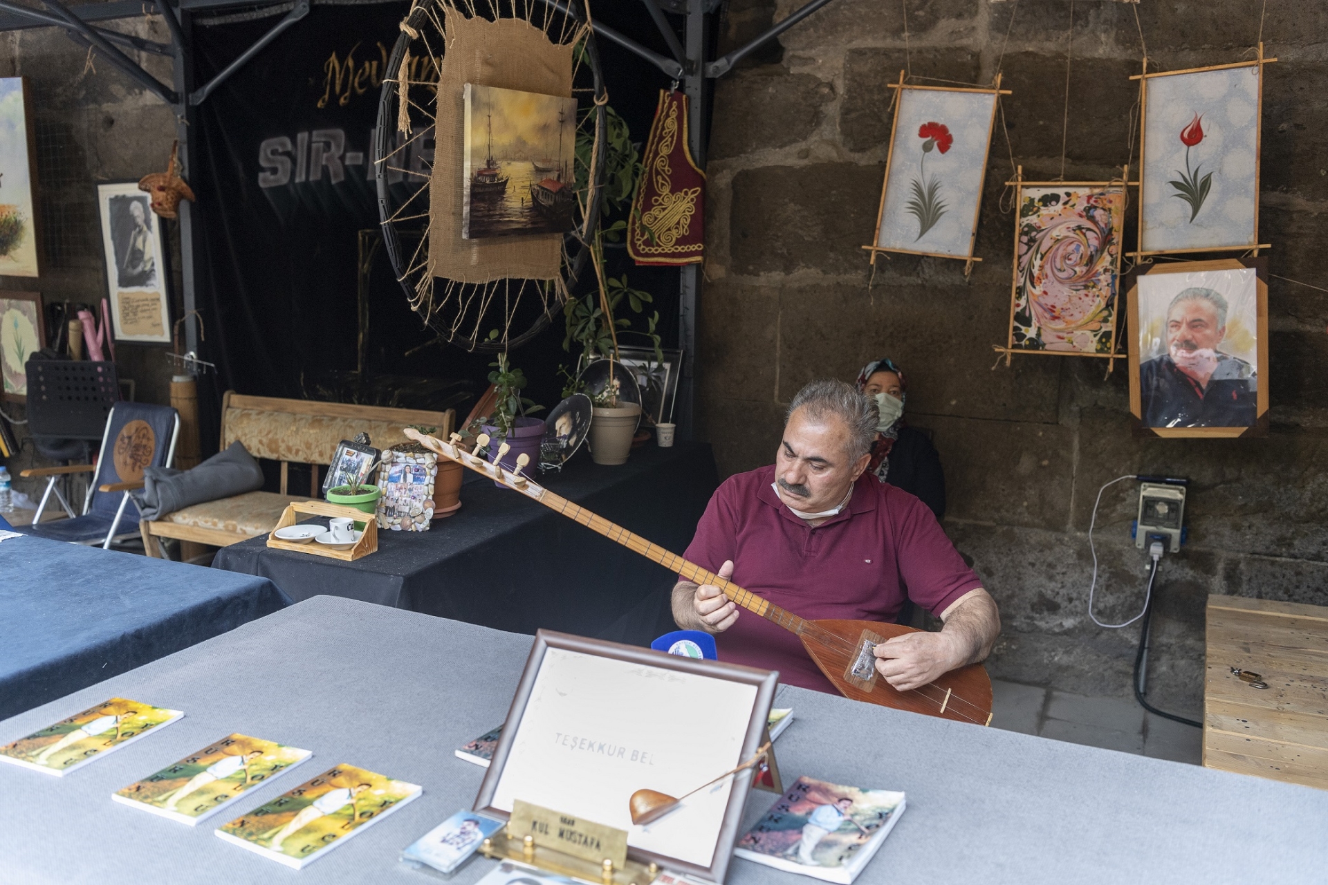 ozanı Kul Mustafa da Sanatçılar Sokağı’nda davetlilere mini konserler veriyor.