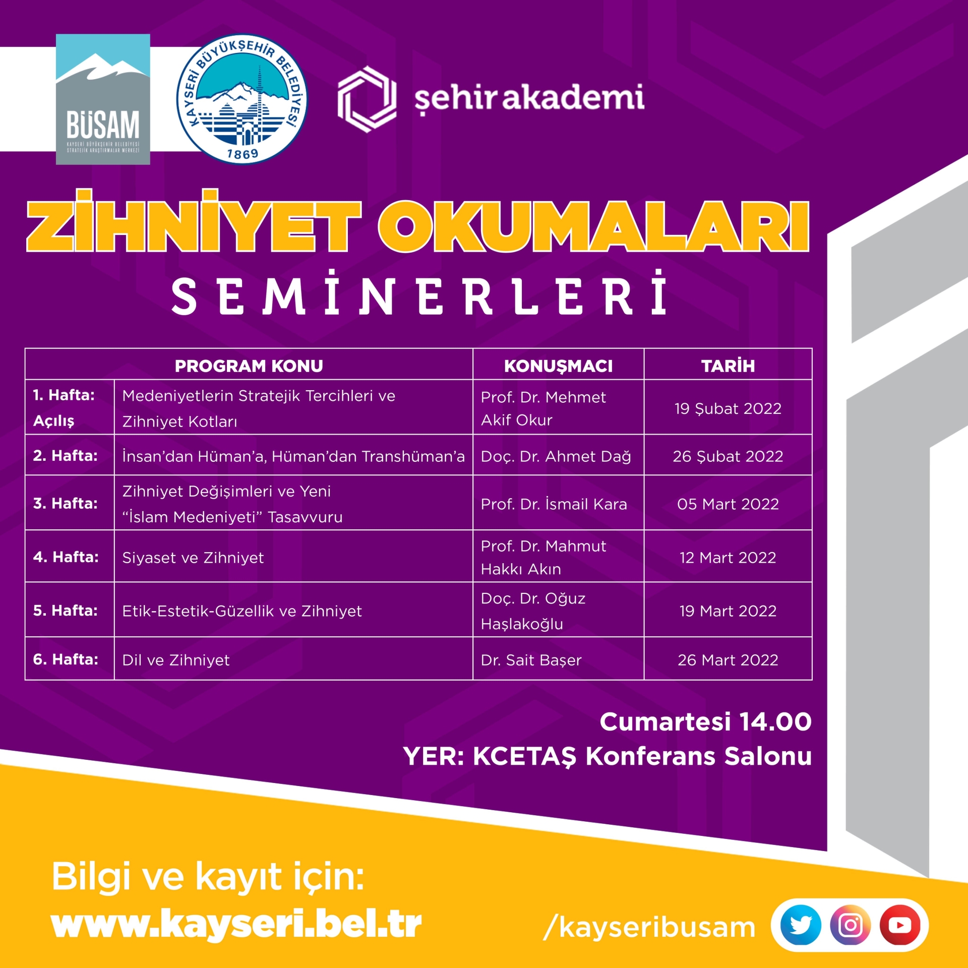 başlayacak ve 6 hafta sürecek Zihniyet Okumaları Seminerleri, her hafta
