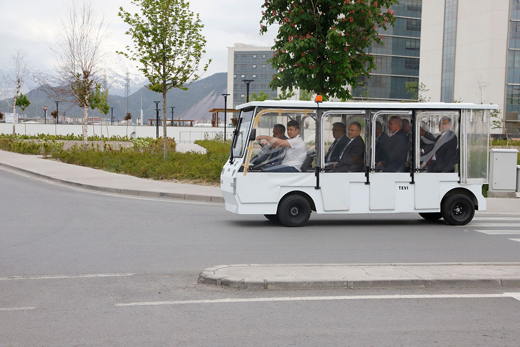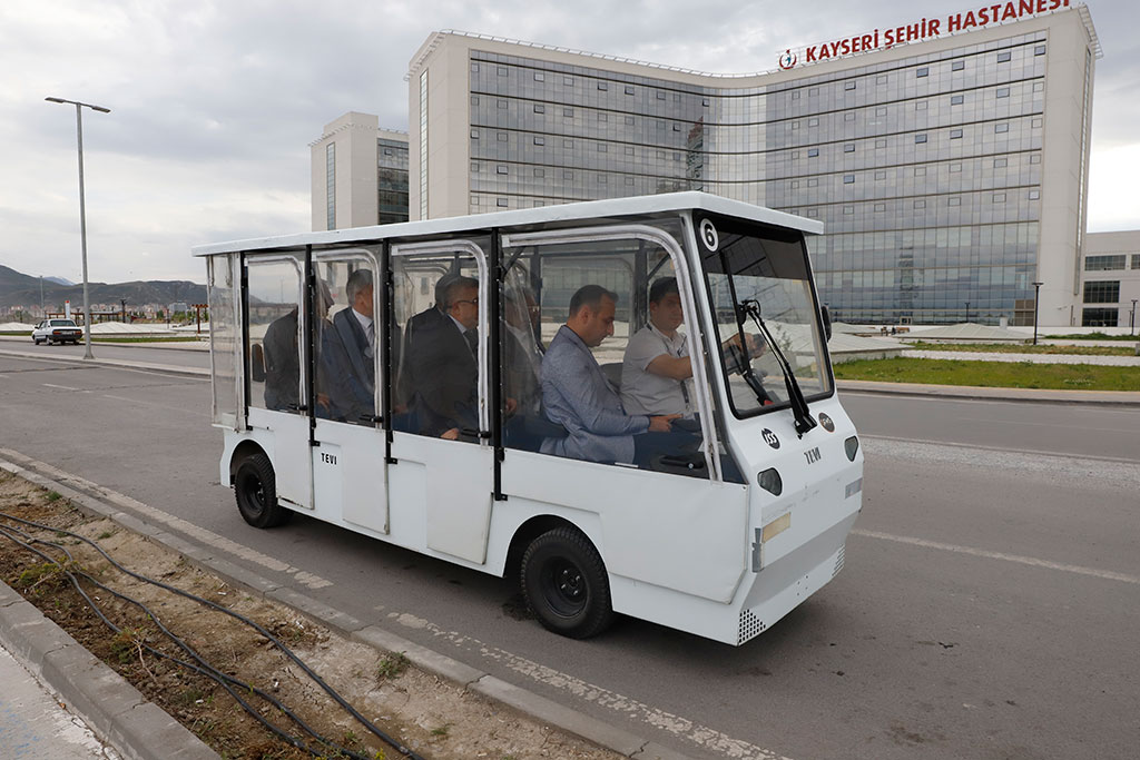 Kayseri Büyükşehir Belediye Başkanı Dr. Memduh Büyükkılıç, projeleri sahada takip için şantiyeleri gezmeye devam ediyor. Başkan Büyükkılıç, önce Şehir Hastanesi önüne yapılan katlı kavşak çalışmalarını inceledi, ardından da Şehir Hastanesi’ni gezerek kapsamlı değerlendirmelerde bulundu. Büyükşehir Belediye Başkanı Memduh Büyükkılıç, ilk olarak Şehir Hastanesi önüne yapılan katlı kavşak şantiyesini ziyaret etti. Başkan Memduh Büyükkılıç, Bekir Yıldız Bulvarı üzerinde 350 metre uzunluğunda üç kollu yoncadan oluşan üst geçit köprüsü, Sarımsaklı taşkın kanalı üzerinde bulunan köprünün Muhsin Yazıcıoğlu Bulvarı üzerinde planlanan raylı sistem hattı ve araç yolu için genişletilmesi ile üst geçit köprüsünün toprakarme kısmı altından Şehir Hastanesi ve Yüksek Güvenlikli Psikiyatri Hastanesi arasında geçiş sağlamaya imkan verecek olan alt geçit çalışmalarından oluşan katlı kavşağın son durumuna ilişkin bilgiler aldı. Başkan Memduh Büyükkılıç, Hastane önündeki ulaşımı bir süre takip ettikten sonra Şehir Hastanesi’ni ziyaret etti. Hastane Başhekimi Prof. Dr. İlhami Çelik ile birlikte bir süre hastaneden kuş bakışı olarak ulaşımı takip eden Başkan Memduh Büyükkılıç, hastanenin sirkülasyonuna ilişkin de brifing aldı. Başkan Büyükkılıç, Şehir Hastanesi’nde hastaları da ziyaret ederek geçmiş olsun dileklerini iletti. Büyükşehir Belediye Başkanı Büyükkılıç, daha sonra Hastane Başhekimi Prof. Dr. İlhami Çelik ile birlikte golf aracına binerek hastaneyi gezdi.