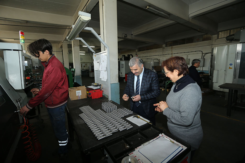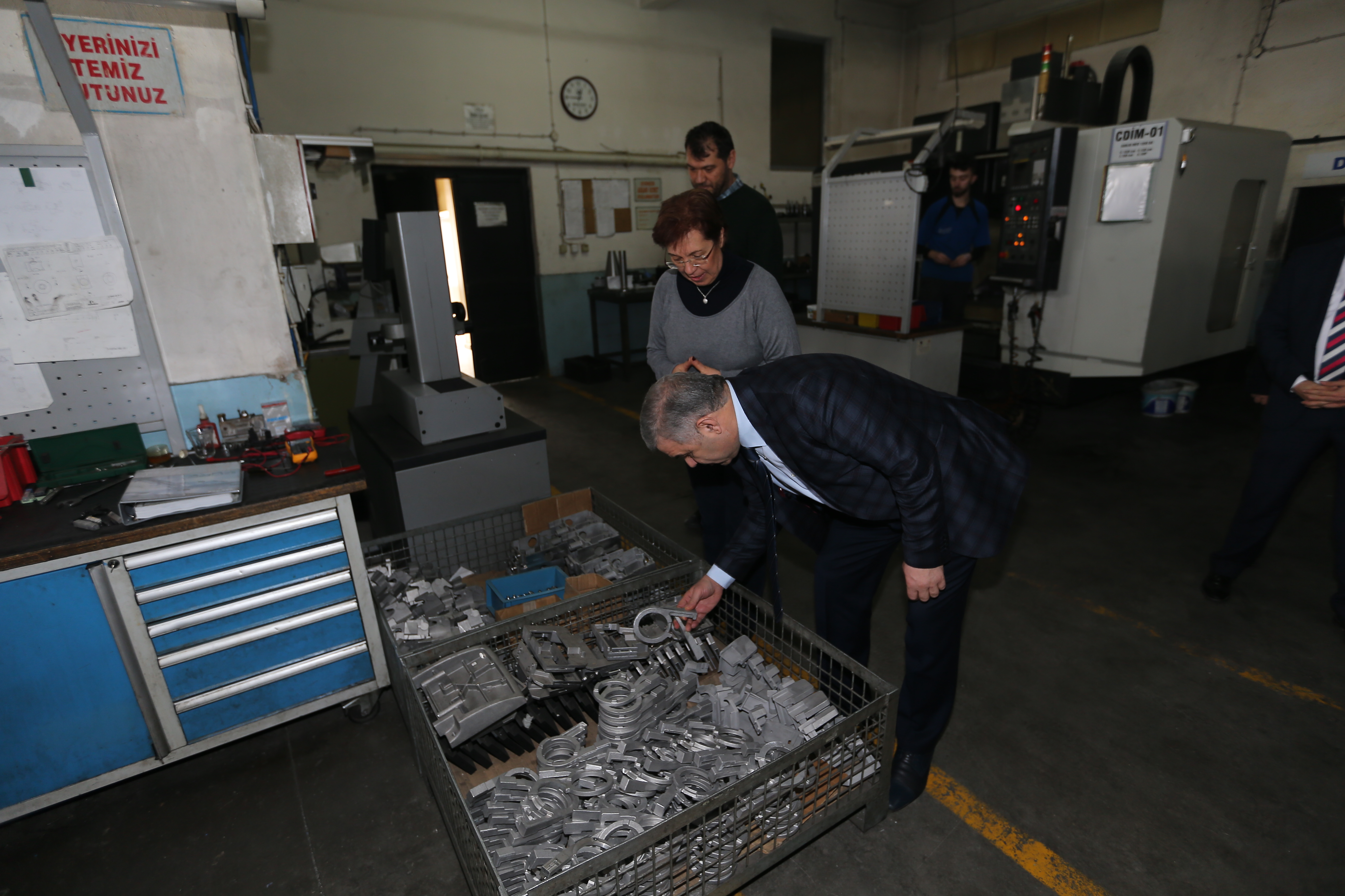 Büyükşehir Belediye Başkanı Mustafa Çelik, yoğun çalışmalarının yanında şehre değer katanları yakından takip ediyor ve bizzat ziyaret ederek başarılarının devamını diliyor. Başkan Çelik, bu çerçevede Avrupa Nükleer Araştırma Merkezi’ne hassas koruma kalkanı üreten Gözüküçük Makine’yi ziyaret etti. Kayseri'nin marka değerini artıranlara yönelik ziyaretlerde bulunan Büyükşehir Belediye Başkanı Mustafa Çelik, Anbar Mahallesi’nde yer alan Gözüküçük Makine’ye ziyarette bulundu. Eşinin vefat etmesinin ardından fabrikanın başına geçen ve daha da geliştirdiği fabrikasını Avrupa Nükleer Araştırma Merkezi (CERN)'e tedarikçi hale getiren Zuhal Gözüküçük, Başkan Çelik’e işletmesini gezdirdi ve üretimleriyle ilgili bilgi verdi. Büyükşehir Belediye Başkanı Çelik, Zuhal Gözüküçük’ü bir kadın girişimci olarak güzide bir tesisi işletmesi nedeniyle teşekkür ederek, “Şehrimiz adına gurur verici bir tesis olmuş. Şehre değer katan kişilerle beraber olmak bizleri mutlu ediyor. Kayseri’ye ve sanayimize müthiş bir değer katıyorsunuz. Herkesin yaptığı gibi katma değeri düşük işleri yapmak yerine zor olanı seçmişsiniz. Yaptığınız işler gurur verici ve övündüğümüz işler. Evlatlarınızla birlikte başarılarınızın devamını diliyorum. Bu işletmeyi çok daha iyi yerlerde görmek istiyoruz” dedi. Zuhal Gözüküçük de kimsenin yapmadığı işleri yapmak ve örnek olmak istediklerini belirtti. Yaptıkları ürünlerin yüzde 80’ini ihraç ettiklerini dile getiren Gözüküçük, dünyanın en büyük ve en güçlü parçacık hızlandırıcısının bulunduğu CERN'e hassas koruma kalkanı ürettiklerini de belirtti. Zuhal Gözüküçük ziyaret sırasında Büyükşehir Belediyesi Ulaşım A.Ş. bünyesindeki KAYBİS’e bisikletlerin kilit sistemini ürettiklerini de açıkladı. Sistemi inceleyen Başkan Çelik, yerli sanayiye destek vermekten mutlu olduklarını kaydetti.