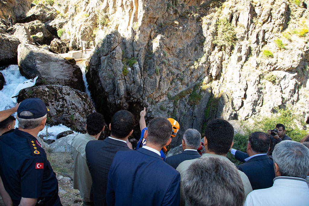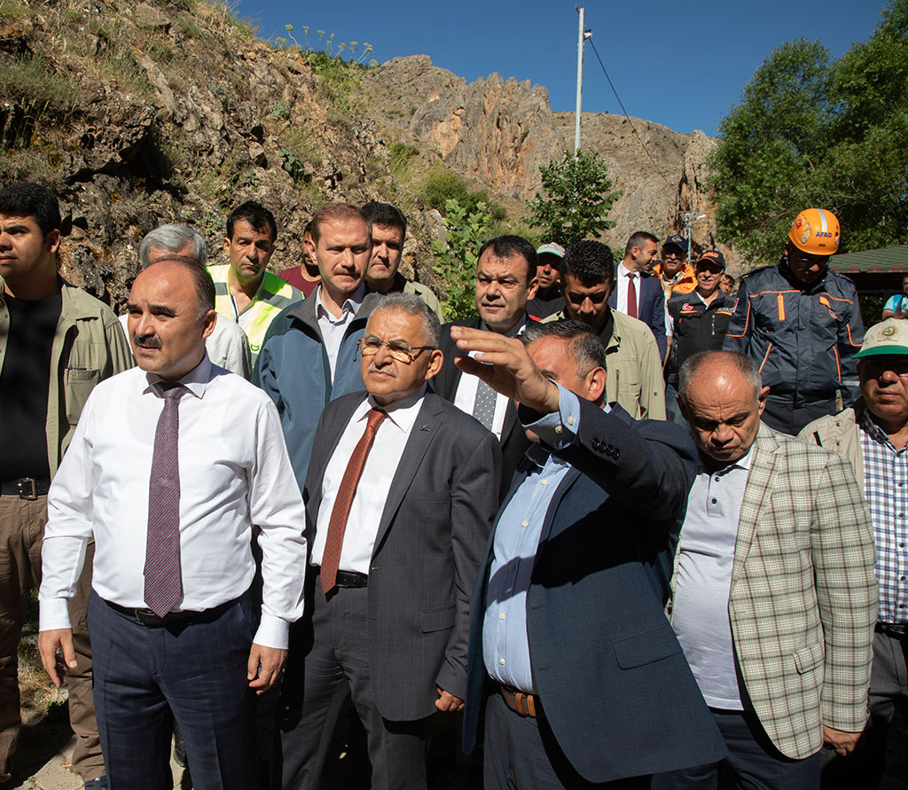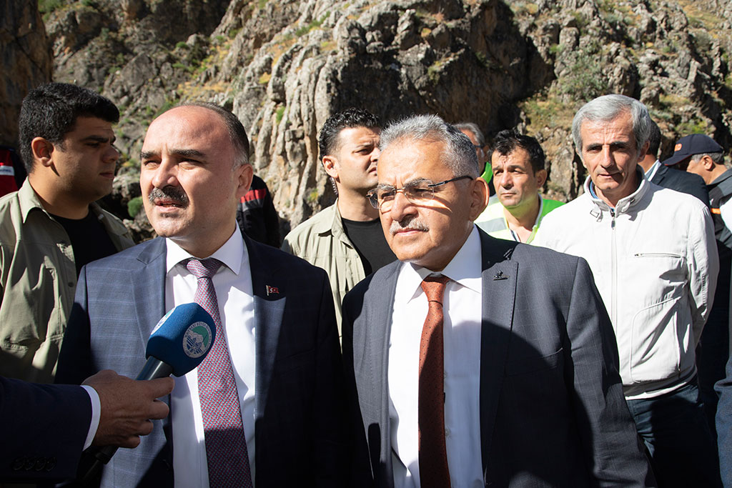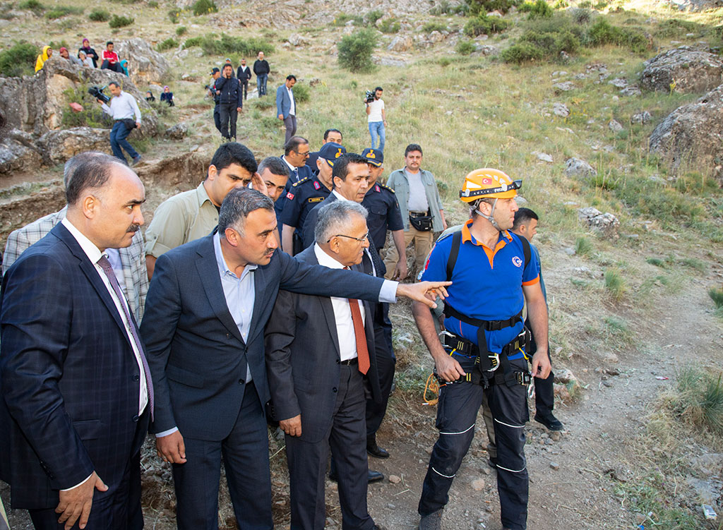 Kayseri Büyükşehir Belediye Başkanı Dr. Memduh Büyükkılıç, Vali Şehmus Günaydın ile birlikte Develi ilçesine bağlı Küçük Künye Mahallesi’ne gitti. Homurlu Şelalesi’nde kaybolan 18 yaşındaki Serkan Turan Timurbuğa’yı arama çalışmalarını takip eden Vali Günaydın ve Başkan Büyükkılıç, devletin tüm birimlerinin seferber edildiğini belirtti. Kayseri Büyükşehir Belediye Başkanı Dr. Memduh Büyükkılıç, Vali Şehmus Günaydın ile birlikte sabah erken saatlerde Develi’ye hareket etti. Vali Günaydın ve Başkan Büyükkılıç, Küçük Künye Mahallesi’ne geçerek Humurlu Şelalesi’nde kaybolan 18 yaşındaki Serkan Turan Timurbuğa’nın bulunması için yapılan arama çalışmalarına katıldı. Vali Şehmus Günaydın ve Başkan Memduh Büyükkılıç, olay yerinde bulunan İl Jandarma Alay Komutanı Albay Hüseyin Bekmez ve Develi Belediye Başkanı Mehmet Cabbar’dan bilgiler aldı. Arama çalışmalarını Yahyalı Belediye Başkanı Esat Öztürk de takip etti. Serkan’ın bulunması için bütün imkanların seferber edildiğini belirten Vali Şehmus Günaydın, “Olayın olduğu andan itibaren devletin tüm birimleri olaya müdahale ettiler. Konya’dan su altı ekipleri de geldi. Devlet Su İşleri, AFAD, Jandarma, Gönüllü Kuruluşlar ve Polis Ekibimiz gece gündüz çalışıyor. Dün akşam yaptığımız temaslar sonucu Mersin’den de bir ekip yola çıktı. Suyun sert düşmesi nedeniyle çalışmalar güçlükle yürütülüyor. Bu çalışmaları inşallah en kısa sürede sonuçlandıracağız. Ekiplerimizin istekleri doğrultusunda iş makineleri ve personel takviyesi yapılıyor. Jandarma Komutanımız, Develi Belediye Başkanımız, AFAD Müdürümüz ve ekip arkadaşlarımız büyük bir fedakarlıkla çalışmaları devam ettiriyorlar” dedi. Büyükşehir Belediye Başkanı Memduh Büyükkılıç da Valilikle koordineli bir şekilde hareket ederek arama çalışmalarına destek verdiklerini ifade ederek, “Kurum ve kuruluşlarımız seferber olmuş durumda. Ailemizin beklentisine cevap vermek için gece gündüz çırpınılıyor” diye konuştu. Vali Şehmus Günaydın ve Büyükşehir Belediye Başkanı Memduh Büyükkılıç, 18 yaşındaki Serkan Turan Timurbuğa’nın ailesiyle de görüşerek teskin etmeye çalıştılar.