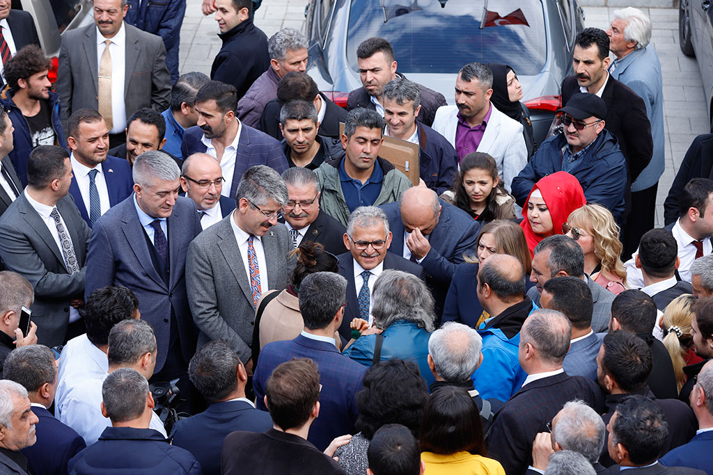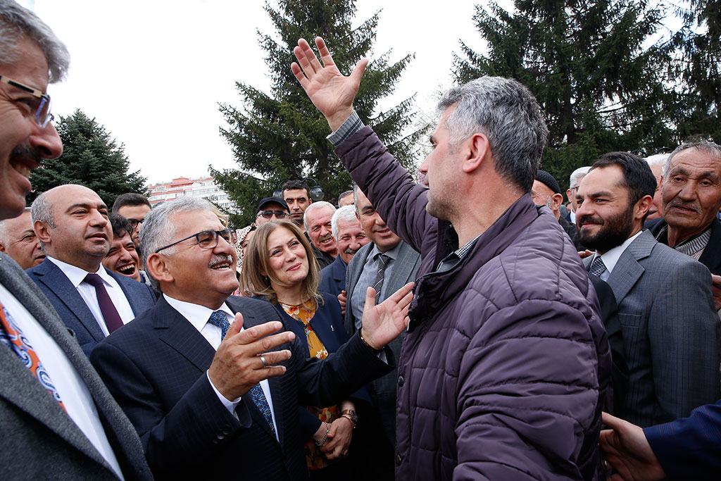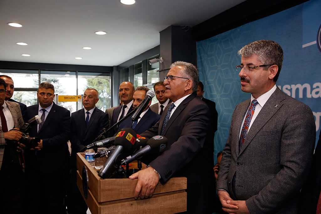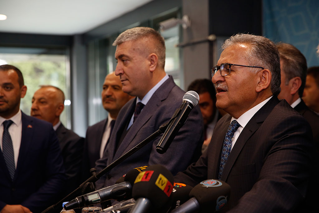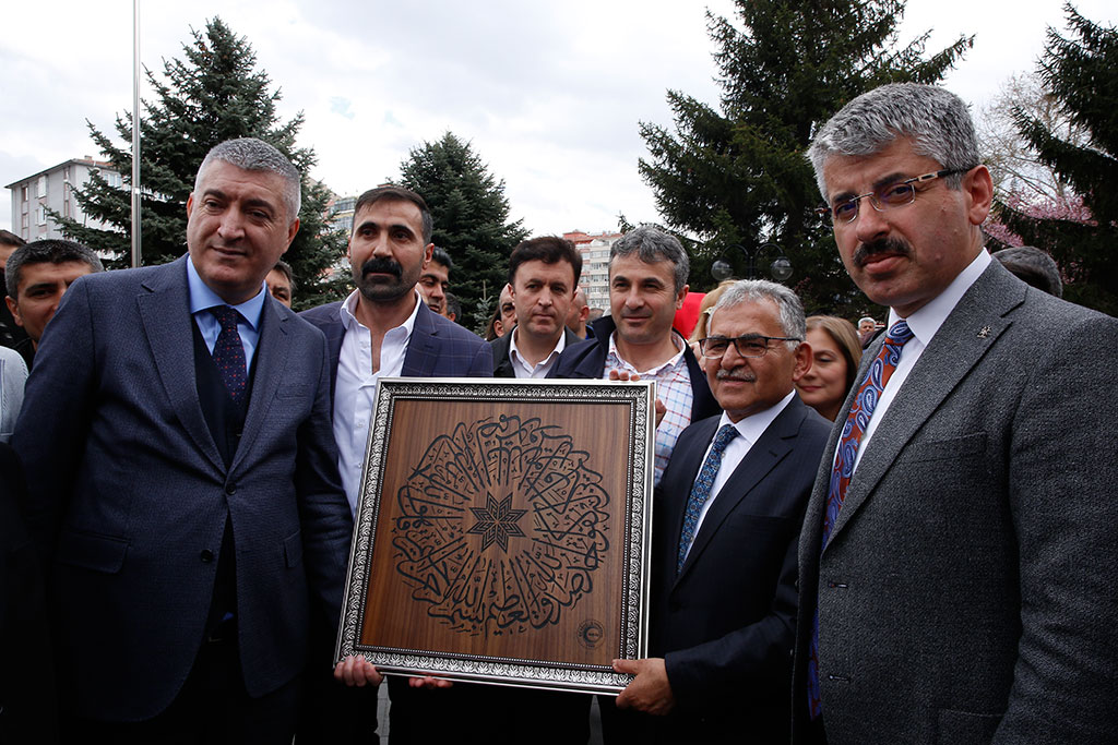 Kayseri Büyükşehir Belediye Başkanı Memduh Büyükkılıç, hayırlı olsun dileklerini iletmek isteyen tüm kişi, kurum ve kuruluşlarla tanışma kokteylinde bir araya geldi. Başkan Büyükkılıç’a gösterilen sevgi ve büyük ilgi nedeniyle Büyükşehir Belediyesi Başkanlık girişinde adeta izdiham yaşandı. Burada vatandaşlara hitap eden Başkan Memduh Büyükkılıç, Kayseri’ye bir sevda anlayışı ile hizmet edeceklerini ve Kayseri’nin markalarını büyütmek için gece gündüz çalışacaklarını kaydetti. Büyükşehir Belediyesi’nin yoğun gündemine daha fazla zaman ayırmak isteyen Büyükşehir Belediye Başkanı Dr. Memduh Büyükkılıç’ın tanışma kokteyline Cumhur İttifakının İl Başkanları olan AK Parti İl Başkanı Şaban Çopuroğlu ve MHP İl Başkanı Serkan Tok ile Melikgazi Belediye Başkanı Mustafa Palancıoğlu, Talas Belediye Başkanı Mustafa Yalçın, Hacılar Belediye Başkanı Bilal Özdoğan ve Felahiye Belediye Başkanı Vural Coşkun da katıldı. BAŞKAN’IN AİDİYET VURGUSU Burada yaptığı konuşmada katılan herkese tek tek teşekkür eden Büyükşehir Belediye Başkanı Büyükkılıç, “Kayserimizin birlik ve beraberliği, dayanışması ve huzuru hepimiz için önemli. Bunlar bereketin de kaynağı. Bunları daha da güçlendirmek için çalışacağız. Aidiyet duygusunu görüyorum burada. Bizlere ve hizmet anlayışımıza yıllardır sahip çıkıyorsunuz. Cumhur ittifakı ile dayanışmamıza sahip çıktınız. Bizlere desteğini esirgemeyen herkese teşekkür ediyorum. Sizlere layık olmak için 16 ilçemizi de yanımıza alarak el ele, gönül gönüle hizmet edeceğimizden kuşkunuz olmasın. Bizlere ve inancımıza yakışan, ayrıştırmadan ve ötekileştirmeden bir sevda anlayışı ile hizmet etmektir” dedi. “MARKALARIMIZI BÜYÜTECEĞİZ” Kayseri denince akla gelen tüm marka ve değerlerimizi konuşmasında tek tek sayan Büyükşehir Belediye Başkanı Büyükkılıç, “Kayseri, Erciyes, Kayserisporumuz, Mimar Sinan, Seyyid Burhaneddin, üniversitelerimiz, OSB’lerimiz, Serbest Bölgemiz, Teknoparkımız, tarihi ve kültürel değerlerimiz, Kültepe, Kapuzbaşı, Koramaz Vadisi ve daha pek çok değerimiz ve markamız var. Bu markalarımızı ön plana çıkararak şehrimizi sporun, eğitimin ve turizmin merkezi yapacağız. Şehrimizin zeki, çalışkan, hayırsever ve dürüst insanları da en önemli markamız” diye konuştu. KATILAN HERKESİN ELİNİ SIKTI, HATRINI SORDU Büyükşehir Belediye Başkanı Memduh Büyükkılıç, konuşmasının ardından Büyükşehir Belediyesi girişinde İl Başkanları ve İlçe Belediye Başkanları ile birlikte katılan herkesin elini sıktı. Tüm katılımcılarla yakından ilgilenen Başkan Büyükkılıç, herkesle fotoğraf çektirdi, gösterdikleri ilgi nedeniyle teşekkür etti. Burada Başkan Büyükkılıç için bir de kurban kesildi. Büyükkılıç, dualarla kesilen kurbanın etinin ihtiyaç sahiplerine dağıtılması talimatını verdi.