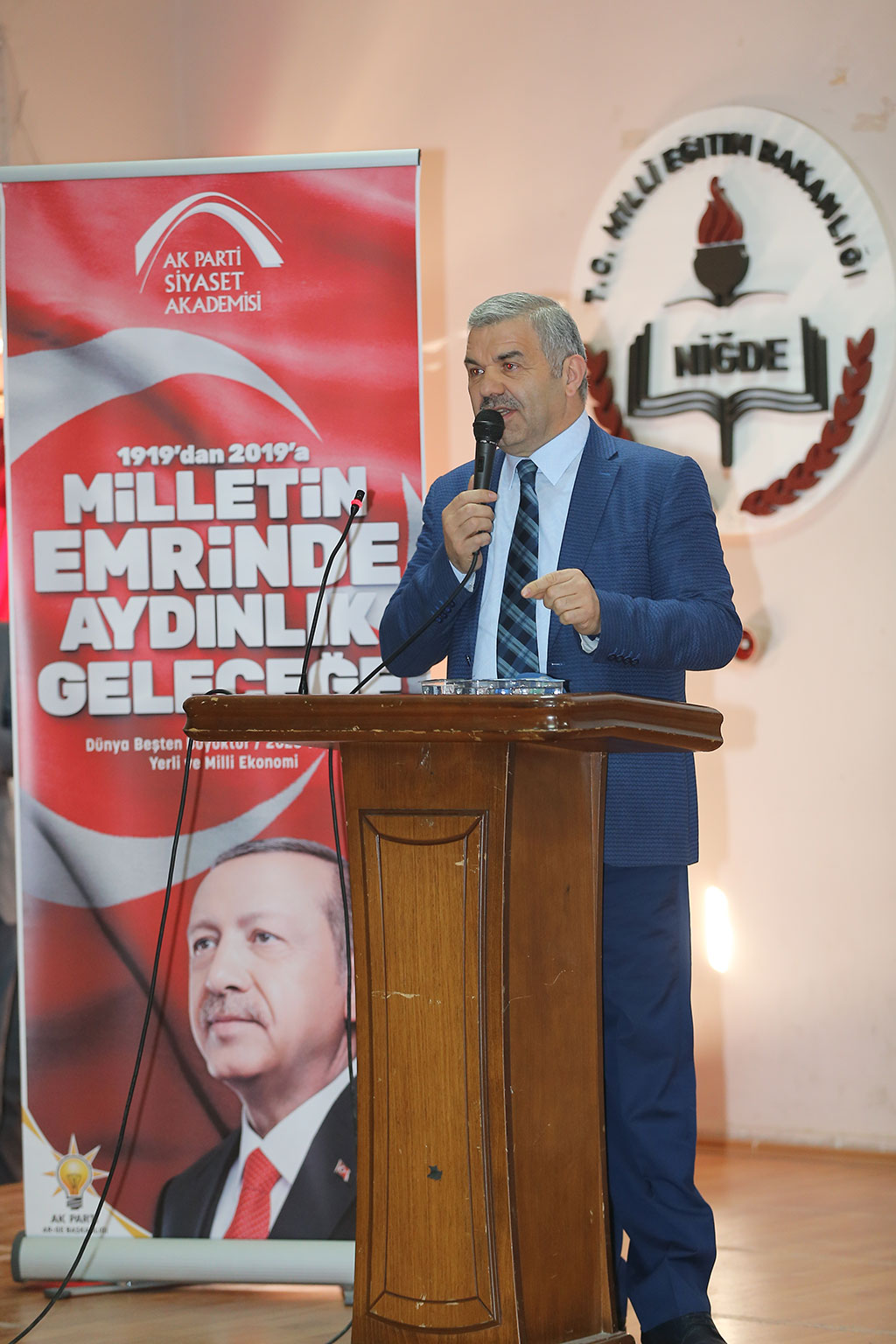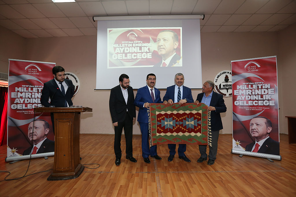 Büyükşehir Belediye Başkanı Mustafa Çelik, AK Parti Niğde İl Başkanlığı’nın daveti üzerine Siyaset Akademisi dersine katıldı. Tecrübelerini paylaştığı Siyaset Akademisi’nde güçlü olmanın yollarını paylaşan, lider olmanın özelliklerini anlatan Başkan Çelik, bir siyasetçinin olmazsa olmazı olarak gördüğü tevazu üzerinde de özellikle durdu. Büyükşehir Belediye Başkanı Mustafa Çelik, AK Parti Siyaset Akademisi için gittiği Niğde’de İl Başkanı Mahmut Peşin ve Niğde Belediye Başkanı Rıfat Özkan tarafından karşılandı. “ÇAĞIMIZ NİTELİKLİ İNSAN ÇAĞI” Siyaset Akademisi dersinde sözlerine nitelikli insanın önemini vurgulayarak başlayan Başkan Çelik, “Çağımız nitelikli insan çağı. Akademik hayatta, bürokraside, iş aleminde, kamu yönetiminde, siyasette nitelikli olmak zorundayız. Bunun farkında olan AK Parti Siyaset Akademisi kurdu ve insan yetiştirme konusunda gerekli çalışmayı yapıyor” dedi. Konuşmasında güçlü olmanın yollarını da gösteren Başkan Mustafa Çelik, sözlerini şöyle sürdürdü: “İnsan sosyal bir varlık. Tek başına hiçbir değer ifade etmiyor. Çevremizi genişlettiğimiz oranda gücümüz artıyor.” Başkan Mustafa Çelik, Siyaset Akademisi öğrencilerine daha güçlü olmak istiyorlarsa sivil toplum kuruluşlarına girerek çalışmalarını önerdi. Başkan Çelik, “Engelleri çevrenizin verdiği güçle aşabilirsiniz” dedi. “RİSK ALIN, İNİSİYATİF KULLANIN” Büyükşehir Belediye Başkanı Çelik, risk almanın ve inisiyatif kullanmanın önemine de işaret etti. Liderin aldığı risk ve kullandığı inisiyatif ölçüsünde lider olduğunu dile getiren Başkan Çelik, planlı ve projeli çalışmanın önemini de vurguladı. Başkan Çelik, “Her işinizin planlı projeli olması lazım. Eğer böyle yaparsanız rakiplerinizin önüne geçersiniz. Her ne iş yaparsanız yapın işi tespit edeceksiniz, onu yapacak kişiyi tayin edeceksiniz, işi tarif edeceksiniz, takip edeceksiniz ve işi bitirene teşekkür edeceksiniz” diyerek 5T formülünü anlattı. “HALKIN İÇİNDE OLUN” Büyükşehir Belediye Başkanı Çelik, Siyaset Akademisi dersinde tevazunun üzerinde özellikle durdu. Siyasetçinin olmazsa olmazının tevazu olduğunu vurgulayan Başkan Çelik, “Halkın içinde olun. Bunu yaptığınız takdirde manen de rahatlarsınız. Üstlendiğiniz görevler bitince yine halkın içine gireceksiniz. Halkın içinde kendinize yer bulmak istiyorsanız halkın içinden çıkmayacaksınız” diye konuştu. Siyaset Akademisi dersinin ardından Başkan Mustafa Çelik’e kilim hediye edildi. BAŞKAN ÇELİK’TEN NİĞDE BELEDİYESİ’NE ZİYARET Siyaset Akademisi için Niğde’ye giden Başkan Mustafa Çelik, Niğde Belediye Başkanı Rıfat Özkan’ı da makamında ziyaret etti. Başkan Mustafa Çelik, Başkan Özkan ile bir süre görüş alışverişinde bulundu.