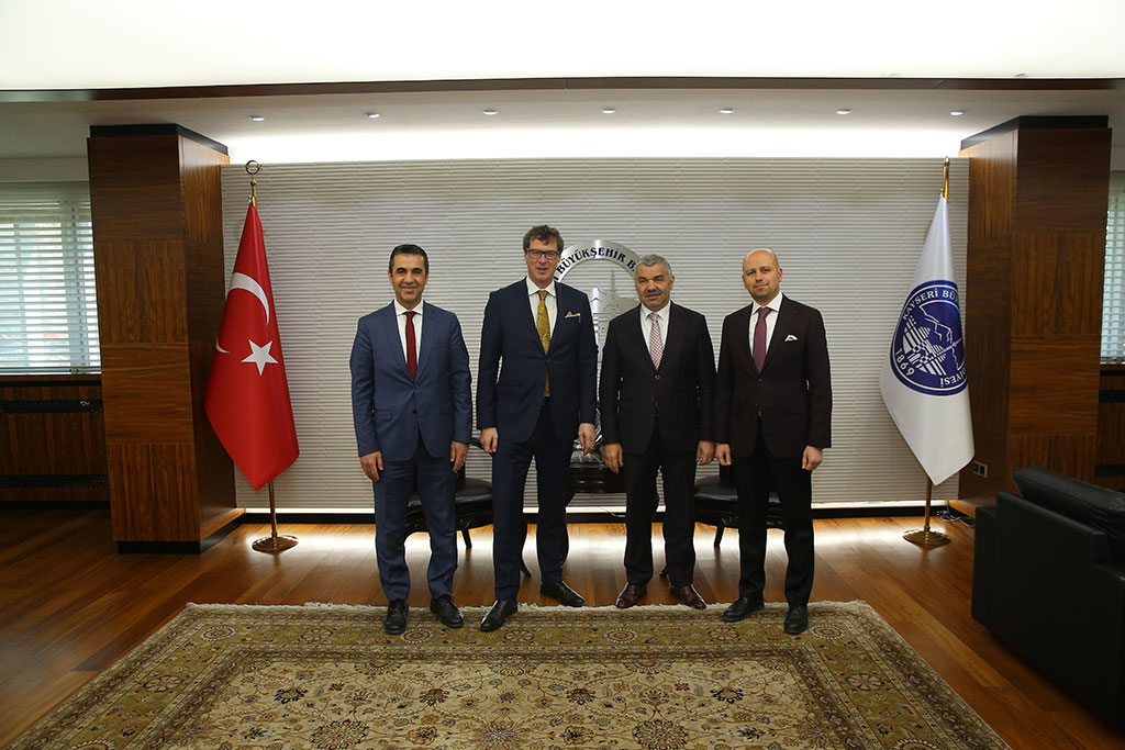 EWE Turkey Holding CEO’su Dr. Frank Quante Büyükşehir Belediye Başkanı Mustafa Çelik’i ziyaret etti. Başkan Çelik’in iş birliğinden dolayı son derece memnun olduklarını ifade eden Quante “Almanya’da birçok kişi bana Türkiye ne yöne gidiyor diye soruyor. Ben de sizden bahsediyorum ve Türkiye Mustafa Çelik gibi kişilerin yönetimindeyse sorun yok diyorum” ifadelerini kullandı. EWE Turkey Holding CEO’su Dr. Frank Quante, EWE Turkey Holding Operasyondan Sorumlu Genel Müdürü Hasan Yasir Bora ve Kayserigaz Genel Müdürü Adem Dincay ile birlikte Büyükşehir Belediye Başkanı Mustafa Çelik’i ziyaret etti. Türkiye’deki siyaset camiasında Başkan Çelik kadar kendilerine destek olan ve yakın çalışan yönetici olmadığını ifade eden Quante, “Birçok temel atmalar yaptık ve yeni yerlere gaz götürdük. Bunlardan dolayı çok mutluyuz. Almanya’da birçok kişi bana Türkiye ne yöne gidiyor diye soruyor. Ben de sizden bahsediyorum ve Türkiye sizin gibi kişilerin yönetimindeyse sorun yok diyorum” şeklinde konuştu. Büyükşehir Belediye Başkanı Çelik de işbirliği ve uyumun önemine dikkat çekerek, “Nihayette yapılan iş bu şehirde yapılıyor ve bu şehirde yaşayanların konforunu artırma amacı taşıyor. Bu nedenle Kayserigaz çalışmalarına da önem verdim ve yönetim kurulu toplantılarına bizzat katıldım. Sonuçta 4 senede şehir içinde imarlı olan tüm bölgelere doğal gazı götürdük. İlçelerde de Yahyalı, Yeşilhisar, Develi ve Tomarza’ya doğal gazı ulaştırdık. Bu anlamda şirketin kâr gayesi gütmeden, hizmet odaklı çalışması da önemliydi. Bundan dolayı sizlere teşekkür ediyorum” dedi.