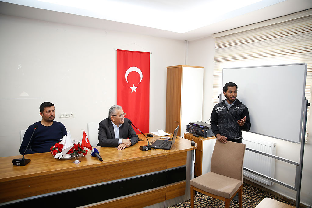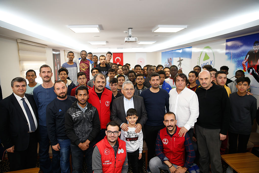 Kayseri Büyükşehir Belediye Başkanı Dr. Memduh Büyükkılıç, Gençlik Spor İl Müdürlüğü’nün Erciyes Tesislerinde kamp yapan Uluslararası Şehit Ömer Halisdemir Anadolu İmam Hatip Lisesi öğrencileriyle bir araya geldi. Öğrencilerle sohbet eden Başkan Büyükkılıç, onları gönül elçileri olarak gördüklerini belirtti. Büyükşehir Belediye Başkanı Dr. Memduh Büyükkılıç, Erciyes’te kamp yapan Uluslararası Ömer Halisdemir Anadolu İmam Hatip Lisesi’nin farklı ülkelerden gelen öğrencileriyle sohbet etti. Başkan Büyükkılıç, öğrencilere Kayseri ve Türkiye’yi nasıl gördüklerini sordu. Bir öğrenci Türkiye ile ilgili değerlendirmesinde “Türkiye’de okumak bambaşka. Burada bize ‘yabancı öğrenciler’ denmiyor. ‘Konuk öğrenciler’ ya da ‘misafir öğrenciler’ deniyor. Bu sözler lafta kalmıyor ve bunu hissettiriyorlar. Kayseri halkı bizi bağrına bastı. Burada insan yalnızlığı hissetmiyor” diye konuştu. Büyükşehir Belediye Başkanı Memduh Büyükkılıç da ilimizde öğrenim gören misafir öğrencileri gönül elçileri olarak gördüklerini dile getirerek, “Müminler kardeştir. Allah’a inanıyorsak ve Peygamberimizin yolundan gidiyorsak hepimiz kardeşiz. Hiçbir zaman kimsenin kimseden üstünlüğü olmadığını, üstünlüğün ancak takva ile mümkün olduğunu biliyoruz. Dışarıdan gelen misafirler bizim başımızın tacıdır. 10 rızıkla gelir, birini yer dokuzunu bırakır giderler. Bizler sizleri gönül elçileri olarak görüyoruz. Gittiğinizde ülkemizdeki güzellikleri paylaşacaksınız” dedi.