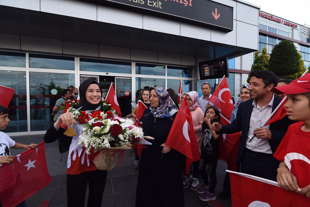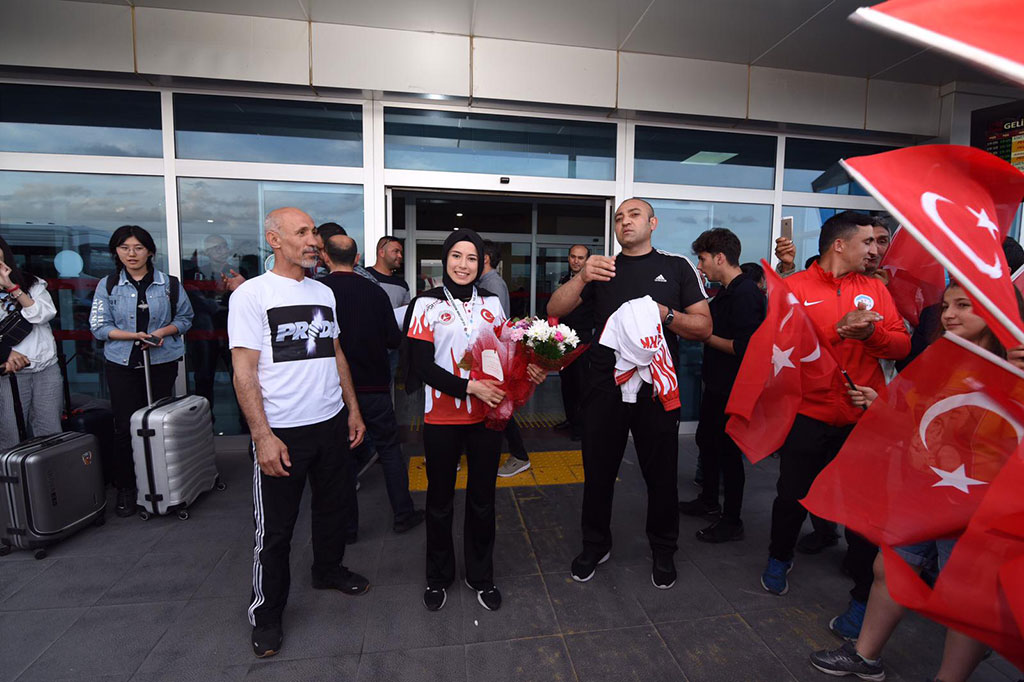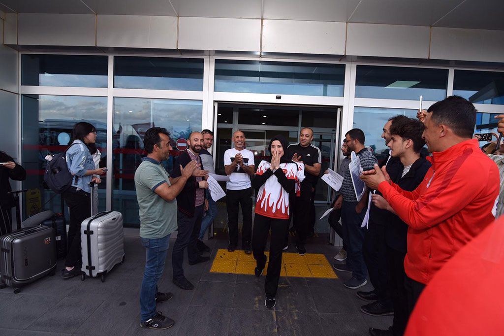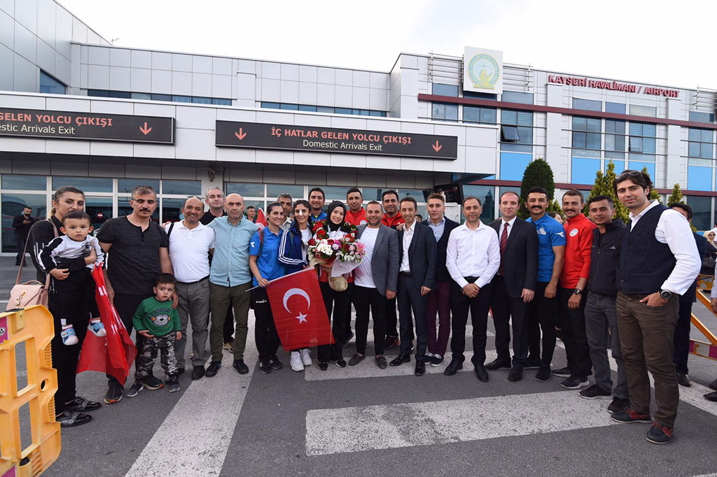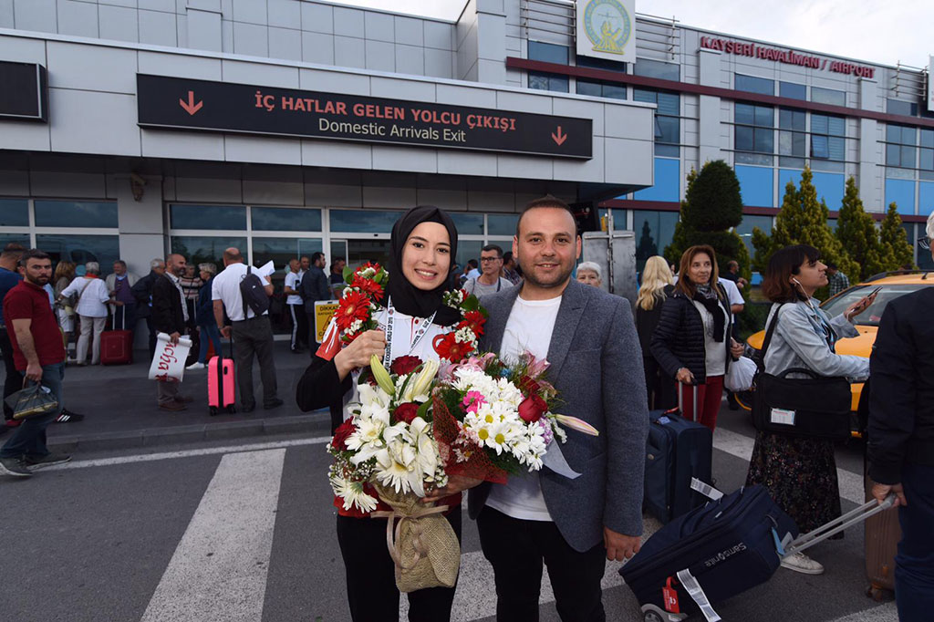 Kayseri Büyükşehir Belediyesi Spor A.Ş. farklı branşlarda Dünya ve Avrupa şampiyonları çıkarmaya devam ediyor. Kickboks Dünya Kupası’nda şampiyon olan Spor A.Ş. sporcusu Hayriye Türksoy, Erkilet Havaalanı’nda karşılandı. Kayseri Büyükşehir Belediyesi Spor A.Ş. Gençlik ve Spor Kulübü bünyesinde bulunan Hayriye Türksoy, 16-19 Mayıs tarihleri arasında Macaristan’ın başkenti Budapeşte’de düzenlenen Kickboks Dünya Kupası müsabakalarında 48 kg’da mücadele etmiş ve rakiplerini geride bırakarak Dünya Kupası Şampiyonu olmuştu. Şampiyonanın ardından ülkemize dönen şampiyon sporcumuz Erkilet Havaalanı’nda karşılandı. Karşılamada yer alan Spor A.Ş. Genel Müdürü İbrahim Somtaş, Hayriye Türksoy’u elde ettiği başarıdan dolayı tebrik ederek, “Şanlı bayrağımızı dalgalandıran ve milli takımımızı en iyi şekilde temsil eden kızımızı kutluyor, başarılarının devamını diliyorum. İnşallah Spor A.Ş. olarak şampiyonlar çıkarmaya devam edeceğiz” dedi.