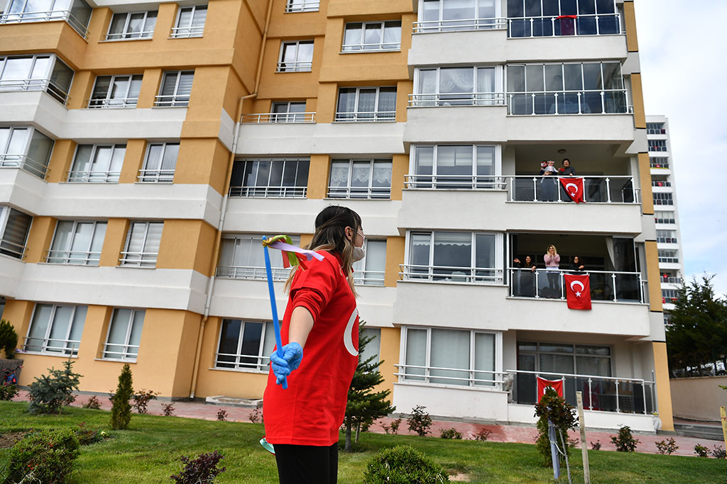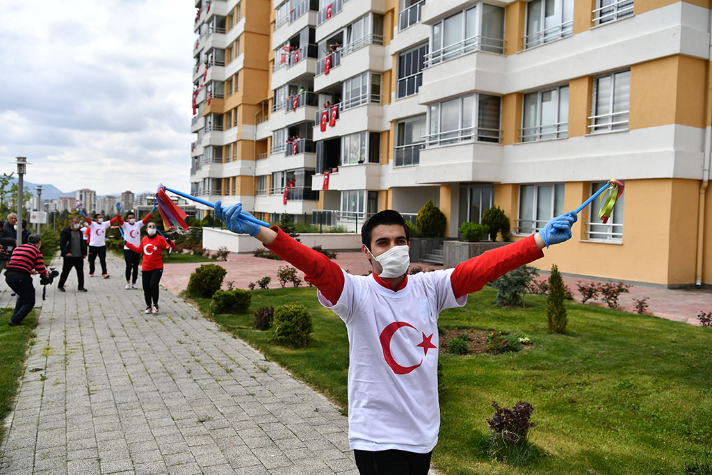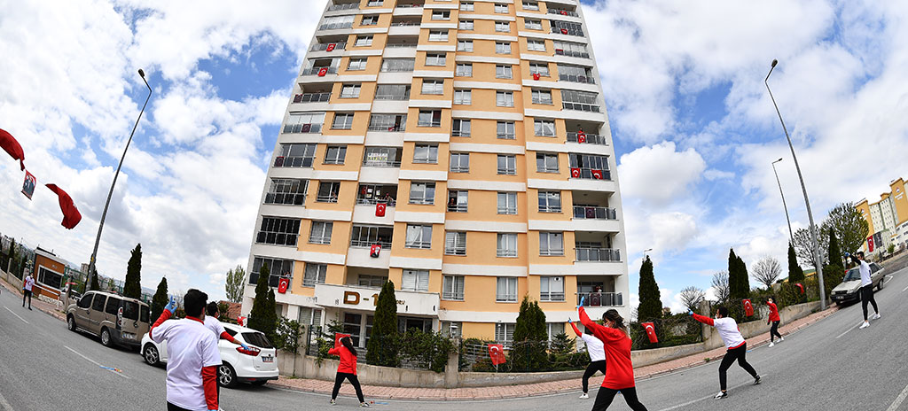 Koronavirüs sürecinde şehrin farklı mahallerinde etkinlikler düzenleyerek evde kalanlara moral veren Kayseri Büyükşehir Belediyesi Spor A.Ş., 23 Nisan Ulusal Egemenlik ve Çocuk Bayramı nedeniyle de kutlamalar gerçekleştirdi. Spor A.Ş., Yenidoğan Mahallesi’nin yanı sıra Konaklar Mahallesi’nde de etkinlikler yaptı. Büyükşehir Belediyesi bünyesindeki Spor A.Ş., Konaklar Mahallesi’nde 23 Nisan Ulusal Egemenlik ve Çocuk Bayramı’nı kutladı. Binaların önünde yerini alan Spor A.Ş. eğitmenleri çocuk şarkıları ve marşlar eşliğinde dans ve spor yaparak bu süreçte evlerinde kalmak sorunda olan çocukları eğlendirdiler. Spor A.Ş. tarafından düzenlenen kutlamaları çocuklar ve aileleri de balkon ve pencerelerinden izledi. Ay yıldızlı bayraklarımızla süslenen binaların balkonlarına çıkan vatandaşlar Spor A.Ş. eğitmenlerine eşlik ettiler ve etkinliklerin sonunda alkışlarla uğurlayarak teşekkür ettiler.