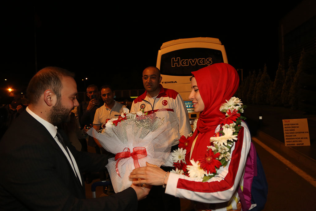 Büyükşehir Belediyesi Spor A.Ş. Spor Kulübü Sporcusu Hayriye Türksoy, Avrupa Şampiyonu oldu. Kayserili milli sporcu Erkilet Havaalanı’nda Spor A.Ş. tarafından karşılandı. Büyükşehir Belediyesi, Spor A.Ş. Spor Kulüpleri vasıtasıyla şampiyonlar yetiştirmeye devam ediyor. Rusya'nın başkenti Moskova'da yapılan Wushu Avrupa Şampiyonası'na giden Spor A.Ş. Sporcusu Hayriye Türksoy, altın madalya kazandı. 48 kiloda Wushu Avrupa Şampiyonu olan Hayriye Türksoy, Erkilet Havaalanı’nda karşılandı. Çiçeklerle karşılanan Genç Sporcu, böylesi bir karşılama nedeniyle teşekkür etti. Hayriye Türksoy, şampiyon olmasında destekleri olan herkese teşekkür etti.