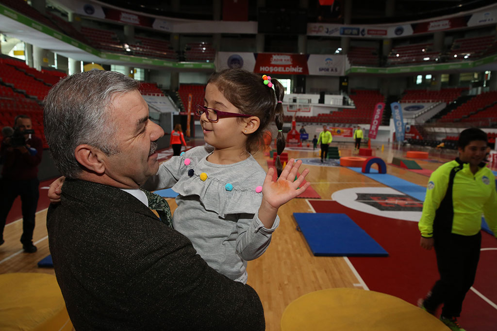 Büyükşehir Belediye Başkanı Mustafa Çelik, anaokulu öğrencilerine spor yapma imkanı sunan Büyükşehir Belediyesi bünyesindeki Spor A.Ş.’nin tesislerini ziyaret ederek çocuklara sürpriz yaptı. Başkan Çelik, miniklerle yakından ilgilendi ve onlarla uzun uzun sohbet etti. Büyükşehir Belediyesi bünyesindeki Spor A.Ş. her yaş grubuna spor yapma imkanı sunmaya devam ediyor. Spor A.Ş., “Spora Minik Adımlar” projesiyle anaokulu öğrencilerini de sporla buluşturuyor. Büyükşehir Belediye Başkanı Mustafa Çelik, Spor A.Ş. eğitmenleri eşliğinde Kadir Has Spor ve Kongre Merkezi’nde spor yapan Melikgazi Anaokulu öğrencilerine sürpriz yaparak ziyaret etti. Başkan Çelik, Spor A.Ş.’nin hazırladığı parkurda eğlenerek spor yapan öğrencilerle yakından ilgilendi. Parkuru bitiren öğrencileri kucağına alan Başkan Mustafa Çelik, onlarla uzun uzun sohbet etti. Hali hazırda 5 bine yakın öğrenciye spor yapma imkanı sunulduğunu ifade eden Başkan Çelik, “Çocuklarımız hem anaokuluna gidiyorlar, hem de haftanın belirli günlerinde bizim tesislerimizde spor yapıyorlar. Çocuklarımıza bu tür imkanları sağlamaya devam edeceğiz” dedi.