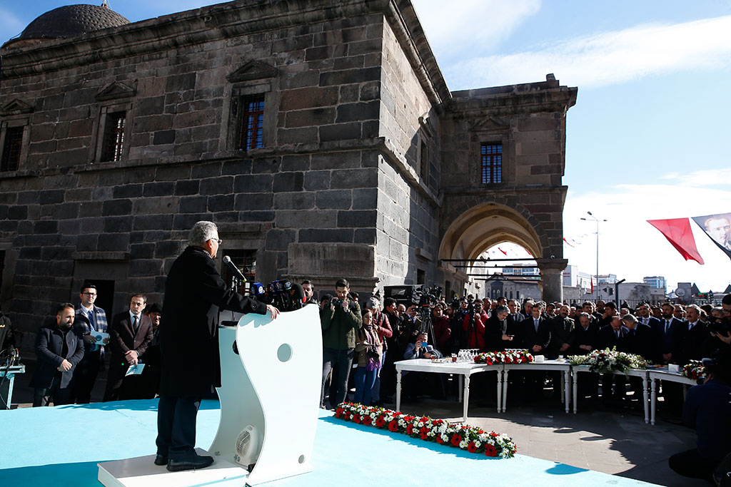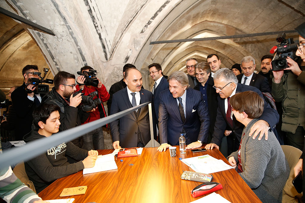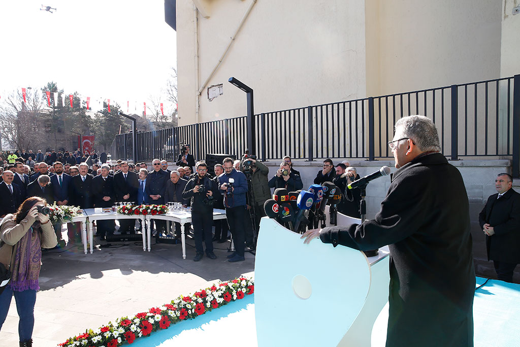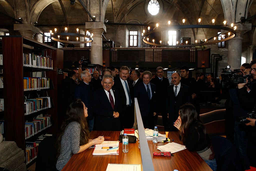 Kayseri Büyükşehir Belediyesi, tarihi eserleri ayağa kaldırarak, koruyarak ve fonksiyonlar yükleyerek geleceğe taşımaya devam ediyor. Kiçikapı’da bulunan Tarihi Meryem Ana Kilisesi binası, Büyükşehir Belediyesi tarafından restore edilerek 50 bin kitaplık bir kütüphaneye dönüştürüldü. Tarihi binada hizmet vermeye başlayan Şehir Kütüphanesi’nin resmi açılış töreninde önemli açıklamalar yapan Büyükşehir Belediye Başkanı Dr. Memduh Büyükkılıç, Kayseri’nin kültürün, turizmin ve kadim medeniyetlerin merkezi olduğunu söyledi. Açılışa katılan Kültür ve Turizm Bakan Yardımcısı Ahmet Misbah Demircan da Kayseri’nin başarısını gururla takip ettiklerini belirtti. Tarihi Meryem Ana Kilisesi binasının restore edilmesiyle Kayseri’ye kazandırılan Şehir Kütüphanesi’nin açılış törenine Büyükşehir Belediye Başkanı Dr. Memduh Büyükkılıç’ın yanı sıra Vali Şehmus Günaydın, Kültür ve Turizm Bakan Yardımcısı Ahmet Misbah Demircan, Cumhuriyet Başsavcısı Abdulkadir Akın, ilçe belediye başkanları, bürokratlar ve vatandaşlar katıldı. “KAYSERİ ADETA AÇIK HAVA MÜZESİ” Saygı duruşunda bulunulması ve İstiklal Marşı’nın okunmasının ardından bir konuşma yapan Büyükşehir Belediye Başkanı Dr. Memduh Büyükkılıç, açılışa katılan Kültür ve Turizm Bakan Yardımcısı Ahmet Misbah Demircan’a teşekkür etti. Konuşmasında Kayseri’nin adeta açık hava müzesi olduğunu ifade eden Başkan Büyükkılıç, Kayseri’de 1500 civarında tescilli tarihi eser bulunduğunu söyledi ve açılışı yapılan bölgedeki tarihi eserleri saydı. Her yerin tarih koktuğunu ifade eden Başkan Büyükkılıç, tarihe sahip çıkma anlayışıyla çalıştıklarını kaydetti. 6 GÜNDE 60 BİN ZİYARETÇİ Konuşmasında Büyükşehir Belediyesi’nin dördüncü kütüphanesi olarak Şehir Kütüphanesi’ni açtıklarını dile getiren Başkan Memduh Büyükkılıç, “Kütüphane yatırımlarımız sürüyor. Beşinci kütüphaneyi Beyazşehir Sosyal Yaşam Merkezi’nin son katında açacağız. 800 kişilik kütüphane olacak. Kültür ve Turizm Bakan Yardımcımız da kitapların sözünü verdi” dedi. Şehir Kütüphanesi’nin 15 Ocak’tan itibaren hizmet vermeye başladığını da hatırlatan Başkan Büyükkılıç, kütüphaneyi 6 günde 60 bin kişinin ziyaret ettiğini açıkladı. Başkan Büyükkılıç, kütüphanede 25 bini basılı, 22 bini elektronik, 3 bini de sesli olmak üzere 50 bin kitap bulunduğunu dile getirdi. Geçen yıl 800 bin kişinin ziyaret ettiği Kitap Fuarı’nın kütüphane yatırımlarının ne denli ihtiyaç olduğunu gösterdiğini de vurgulayan Başkan Memduh Büyükkılıç, Şehir Kütüphanesi’nin Kayseri’ye hayırlı olması dileklerinde bulundu. Büyükşehir Belediye Başkanı Memduh Büyükkılıç, sözlerinin sonunda Kayseri’nin kültürün, turizmin ve kadim medeniyetlerin merkezi olduğunu dile getirdi. “KAYSERİ’NİN BAŞARISINDAN GURUR DUYUYORUZ” Kültür ve Turizm Bakan Yardımcısı Ahmet Misbah Demircan da konuşmasında, Kayseri’deki canlılıktan ve yatırımlardan etkilendiğini belirterek, “Kayseri’nin geleceği çok daha parlak olacak. Sizleri alkışlıyorum. İstanbul’dan, Ankara’dan bakarken Kayseri’nin yükselişinden iftihar ve gurur duyuyoruz” diye konuştu. Tarihi binadaki kütüphane yatırımının önemini de vurgulayan Demircan, “Burada somut mirasımız sadece restore edilmekle kalmamış, bir de fonksiyon yüklenilmiş. Bu binanın büyüsünden etkilenen gençlerimiz mimar, iç mimar olacak ve buradan aldıkları ilhamla yeni eserler yapacak. Kitaplara bakmak, bu ortamı teneffüs etmek önemli. Çünkü üzüm üzüme baka baka kararır. Neye bakıyorsanız osunuz” dedi. “KAYSERİ’NİN MÜKEMMEL BİR ENERJİSİ VAR” Konuşmasında Kayseri’ye özellikle ailesiyle birlikte geldiğini de dile getiren Ahmet Misbah Demircan, sözlerini şöyle sürdürdü: “Kayseri’nin enerjisi çok güzel. Bunu yakından hissettim. Bu yüzden havayı teneffüs etmek için eşimle küçük kızımı da getirdim. Kayseri’yi çok seviyoruz. Başarısından gurur duyarız. Bu yatırımda emeği geçenleri alkışlıyorum.” “HALKIN İLGİSİ YAPILAN İŞİN DOĞRULUĞUNU GÖSTERİYOR” Vali Şehmus Günaydın da yaptığı konuşmada sabah saat 09.00’da kütüphane önündeki öğrenci kuyruğunu gördüğünü hatırlatarak bu tablonun yapılan işin ne denli doğru olduğunu gösterdiğini söyledi. Emeği geçenlere teşekkür eden Vali Günaydın, “Kayseri olarak kültür, turizm ve sanayi şehriyiz. Turizmde birçok destinasyona sahibiz. Bunların ekonomiye katkısı konusundaki eksikliklerimizi gidermek için çalışıyoruz” dedi. Konuşmaların ardından şehir Kütüphanesi’nin açılışı gerçekleştirildi ve katılımcılar tarihi binada hizmet veren kütüphaneyi gezdi. Kültür ve Turizm Bakan yardımcısı Ahmet Misbah Demircan başta olmak üzere kütüphaneyi görenler çok etkilendiklerini ifade ettiler.