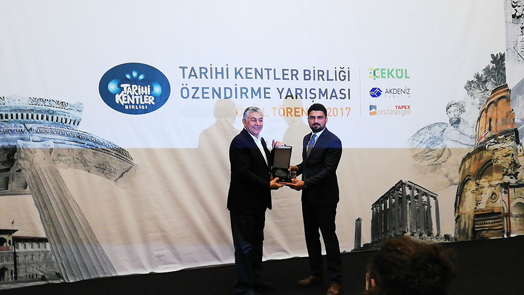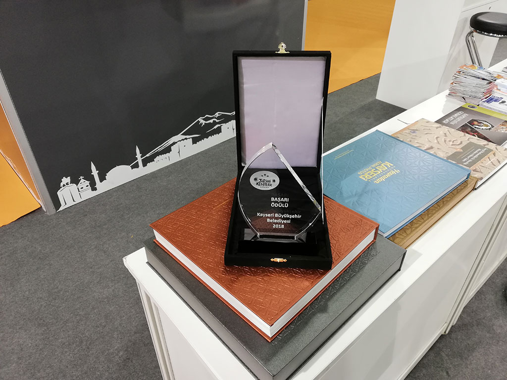 Kayseri Büyükşehir Belediyesi Tarihi Kentler Birliği’nin Başarı Ödülü’ne layık görüldü. Ödül, Büyükşehir Belediyesi’nin tarih ve kültür mirasının korunması konusundaki katkılarından dolayı verildi. Antalya’da düzenlenen YAPEX Fuarı’na Kayseri Büyükşehir Belediyesi de katıldı. Büyükşehir Belediyesi’nin Kayseri’de hayata geçirdiği farklı alanlardaki projelerinin yer aldığı Kayseri standı ziyaretçilerin büyük ilgisiyle karşılaştı. Tarihi Kentler Birliği tarafından 17 yıldır düzenlenen, “Tarihi ve Kültürel Mirası Koruma Proje ve Uygulamalarını Özendirme Yarışması”nın ödül töreni de YAPEX Yapı Fuarı’nda yapıldı. Yarışmada Kayseri Büyükşehir Belediyesi’ne Jüri Özel Başarı Ödülü verildi. Kayseri Büyükşehir Belediyesi tarih ve kültür mirasının korunması konusundaki değerli katkılarından ve başarılı faaliyetlerinden dolayı Başarı Ödülü’ne layık görüldü.