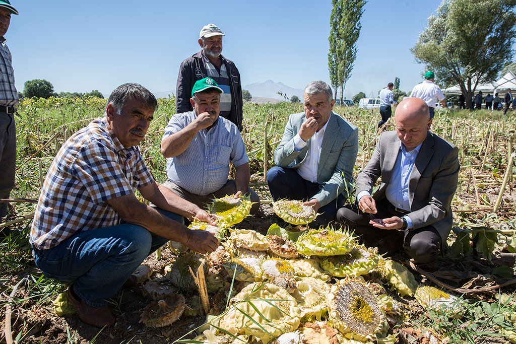 Büyükşehir Belediye Başkanı Mustafa Çelik, Geleneksel Kızık Ayçekirdeği Hasadı Festivali’nde tarım ve hayvancılığın ülkemiz için önemine vurgu yaptı. Ülkemizin gerçek kaynağının tarım ve hayvancılık olduğunu ve bunları çok daha iyi noktalara getirmemiz halinde kimseye muhtaç olmayacağımızı vurgulayan Başkan Çelik, bu nedenle tarım ve hayvancılığa destek vermeye devam edeceklerini söyledi. Geleneksel Kızık Ayçekirdeği Hasadı Festivali’ne Büyükşehir Belediye Başkanı Mustafa Çelik’in yanı sıra Ekonomi Eski Bakanı Mustafa Elitaş, Enerji ve Tabi Kaynaklar Eski Bakanı Taner Yıldız, Kayseri Milletvekili İsmail Emrah Karayel, Kayseri Eski Milletvekili Yaşar Karayel, Kocasinan Belediye Başkanı Ahmet Çolakbayrakdar, Kayseri Pancar Ekicileri Kooperatifi Başkanı Hüseyin Akay, ziraat odalarının başkan ve yöneticileri ile vatandaşlar katıldı. “ÇİFTÇİMİZİN YANINDA OLMAYA DEVAM EDECEĞİZ” Burada yaptığı konuşmada tarım ve hayvancılığın önemini vurgulayan Başkan Çelik, bu sektörleri geliştirmek ve ilçelerden şehir merkezine göçü önlemek için önemli çalışmalar yaptıklarını belirtti. Tarıma ve hayvancılığa cansuyu adı altında tarım makineleri ve süt soğutma tankları alarak çiftçinin kullanımına sunduklarını, Şeker Fabrikası ile yapılan protokol çerçevesinde Pınarbaşı ilçesinde Çiftçi Eğitim Merkezi ve Besi Çiftliği kurulmasını sağladıklarını, Felahiye’ye Toplu Ahır Projesi yaptıklarını, Beydeğirmeni Besi Bölgesi Projesi’ne başladıklarını, Sarız ve Özvatan’da arıcılığa destek verdiklerini ve çok sayıda sulama tesisi yaptıklarını ifade eden Başkan Çelik, bu destekleri tarım ve hayvancılıkla elde edilen hasılanın tamamına yakınının il içinde kalması nedeniyle verdiklerini söyledi. Ülkemizin gerçek kaynağının tarım ve hayvancılık olduğunu vurgulayan Başkan Çelik, “Tarım ve hayvancılığı geliştirirsek kimseye muhtaç olmayız. Rabbim güç kuvvet verdiği müddetçe sizler için gayret edeceğiz ve bu ülkeyi ele muhtaç etmeden dimdik kendi ayakları üzerinde durur hale getireceğiz. Gıdada kendi kendine yeter halde bulunan dünyadaki birkaç ülkeden birisiyiz. Bunu daha iyi hale getirmek için çalışacağız ve yanınızda olmaya devam edeceğiz” dedi. Yapılan konuşmaların ardından hasat başladı ve ayçekirdeği soyma makineleri çalıştırıldı. Etkinlikte ayrıca bu yılki hasadın bereketli olması için dualar edildi.