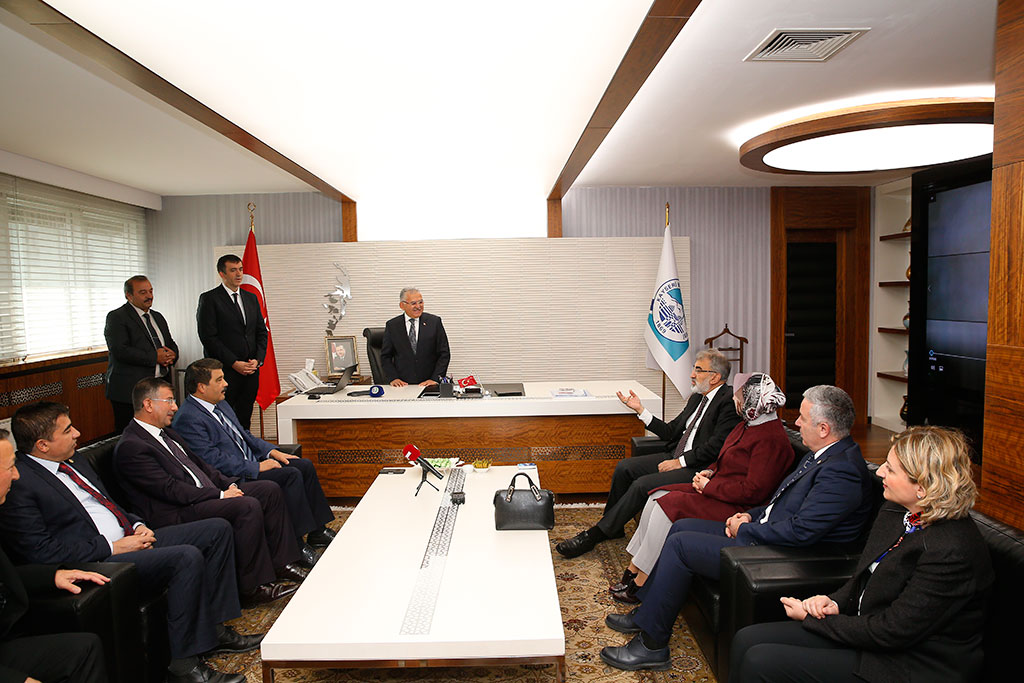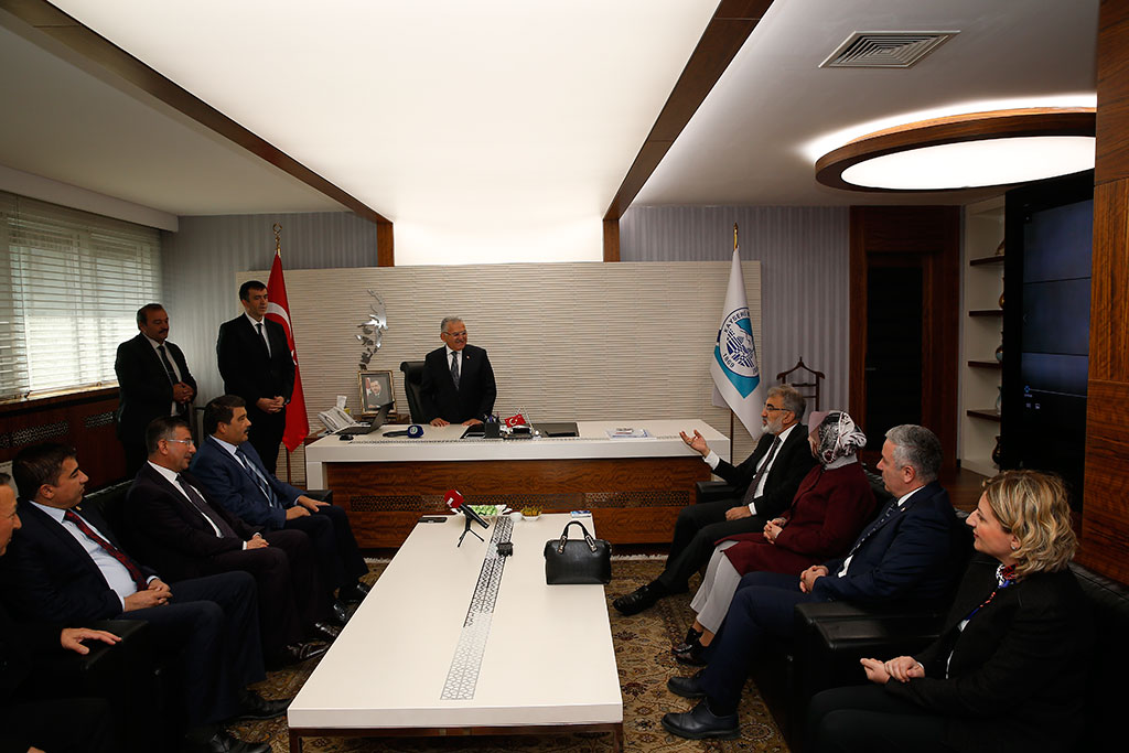 Down sendromlu, otistik ve diğer gelişim bozukluklarına sahip bireyler ile ailelerinin sorunlarının tespiti ve çözümü için Türkiye Büyük Millet Meclisi’nde kurulan Araştırma Komisyonu üyeleri Büyükşehir Belediye Başkanı Dr. Memduh Büyükkılıç’ı ziyaret etti. Başkan Büyükkılıç, komisyon üyelerine özel çocuklarla ilgili sağladıkları hizmetler hakkında bilgi verdi. AK Parti Antalya Milletvekili Kemal Çelik başkanlığında 12 milletvekilinden oluşan Türkiye Büyük Millet Meclisi Araştırma Komisyonu Üyelerinin ziyaretinde Önceki Dönem Enerji ve Tabii Kaynaklar Bakanı Taner Yıldız da yer aldı. AK Parti Kayseri Milletvekili Hülya Nergis ve CHP Kayseri Milletvekili Çetin Arık’ın da yer aldığı komisyon üyelerine özel çocuklara yönelik hizmetleri anlatan Başkan Memduh Büyükkılıç, özel çocuklarla özel olarak ilgilendiklerini söyledi. Kayseri’de tüm engel gruplarına yönelik çok büyük bir kompleks yapımı için çalışmaların sürdüğünü ifade eden Başkan Memduh Büyükkılıç, Besime Özderici Engelsiz Yaşam Merkezi hakkında bilgi verdi. Başkan Büyükkılıç, bu merkezin tamamlanmasıyla Kayseri’nin büyük bir kazanım elde edeceğini kaydetti. Beyazşehir ve Mimarsinan Parkı’nda yer alan Engelsiz Çocuk Evlerinin hizmetlerinden de bahseden Başkan Büyükkılıç, “Bu merkezlerde otizmli, down sendromlu ya da farklı gelişim eksikliği gösteren çocuklarımızı sabah evlerinden alıp bakım ve eğitimlerini üstleniyor, akşam yeniden evlerine teslim ediyoruz” dedi. TBMM Araştırma Komisyonu Başkanı Kemal Çelik de açıklamasında gelişim eksikliği görülen çocuklarla ilgili farkındalığın önemini vurguladı. TBMM’nin bu farkındalığın sağlanması için irade göstererek komisyon kurduğunu dile getiren Çelik, “Tüm partilerden oluşan 12 kişilik komisyonumuz var. Tüm bakanlık temsilcileri ve STK’ları dinledik. 16 uzmanımız bulunuyor. Konuyla ilgili tespitler yaptıkça Bakanlıklarımızla paylaşıyoruz” dedi.