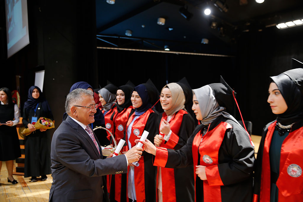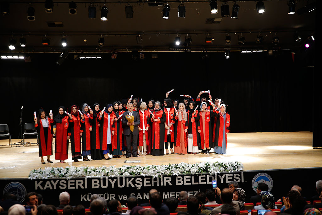 Kayseri Büyükşehir Belediye Başkanı Dr. Memduh Büyükkılıç, Kayseri Kız Anadolu İmam Hatip Lisesi’nin Mezuniyet Töreni’ne katılarak sadece maddi yönden kalkınmanın yeterli olmayacağını belirtti ve tek kanatlı kuşun uçamayacağını vurgulayarak manen de kalkınmak gerektiğini söyledi. Başkan Büyükkılıç, genç mezunlara ailenize, şehrinize ve ülkenize sahip çıkın çağrısında da bulundu. Büyükşehir Belediye Başkanı Memduh Büyükkılıç, 1951 yılında kurulan ve Türkiye’nin ilk İmam Hatip Liseleri’nden olan Kayseri Kız Anadolu İmam Hatip Lisesi’nin Kadir Has Kültür Merkezi’nde gerçekleştirdiği Mezuniyet Töreni’ne katıldı. 390 genç kızın mezuniyet sevincini aileleri ve öğretmenleriyle birlikte paylaşan Başkan Memduh Büyükkılıç, törende yaptığı konuşmada manevi kalkınmanın da önemine işaret etti. Maddi yönden kalkınmanın tek başına yeterli olmayacağını dile getiren Başkan Büyükkılıç, “Manevi yönden kalkınmayı da unutmamak lazım. Tek kanatlı kuş uçmaz” dedi. Genç mezunlara bazı tavsiyelerde de bulunan Başkan Büyükkılıç, “Sizlerin daha donanımlı, eğitimli, nitelikli, özgüvenli ve topluma ışık saçan yavrularımız olmanızı istiyoruz. Sıradan biri olmamalısınız. Bunu sağlamak için bulunduğunuz sınıfın, okulun veya ortamın en başarılısı olmak amacıyla adeta çırpınmalısınız. Ülkemizi ve insanlığı geleceğe taşıyan insanlar olmanızı ümit ediyoruz. Bunun için birkaç yabancı dili öğrenmelisiniz. İçinde bulunduğumuz çağa hükmetmek ve zamanın Fatih’i olmanız gerekiyor. Geçireceğiniz vaktini bilmelisiniz. Ailenize, çevrenize ve şehrimize sahip çıkmalısınız. Bizler de sizler için çırpınıyor ve daha güzel bir gelecek sunmak için gayret ediyoruz” diye konuştu. Büyükşehir Belediye Başkanı Memduh Büyükkılıç, daha sonra mezun öğrencilerin diplomalarını verdi.