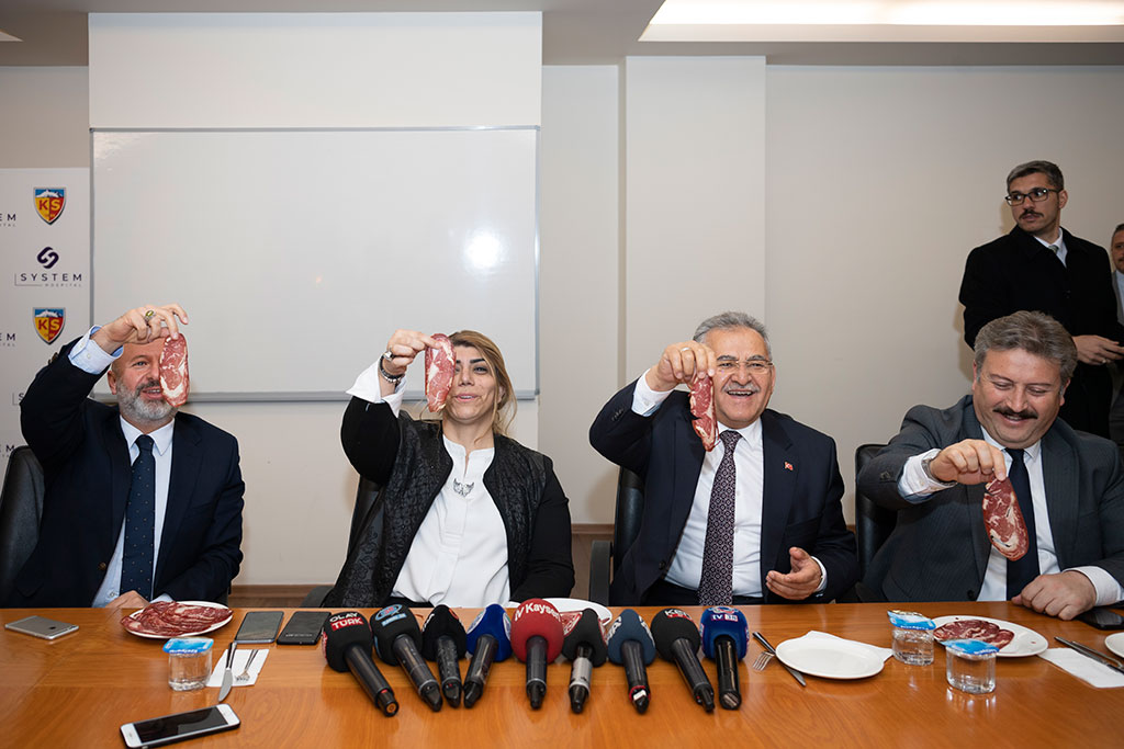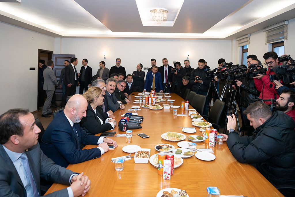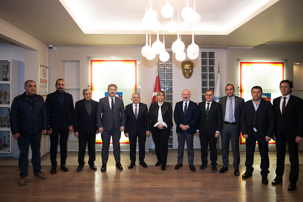 Kayseri Büyükşehir Belediye Başkanı Dr. Memduh Büyükkılıç, her zaman vurguladığı Kayseri’nin en önemli markalarından olan Kayserispor’u ilçe belediye başkanları ile birlikte ziyaret etti. Kayserispor’un yeni başkanı Berna Gözbaşı ve yönetimine hayırlı olsun dileklerini ileten Başkan Büyükkılıç, tek yürek halinde Kayserispor’a destek vermeye devam edeceklerini söyledi. Büyükşehir Belediye Başkanı Dr. Memduh Büyükkılıç; Melikgazi Belediye Başkanı Mustafa Palancıoğlu, Kocasinan Belediye Başkanı Ahmet Çolakbayrakdar, Hacılar Belediye Başkanı Bilal Özdoğan ve İncesu Belediye Başkanı Mustafa İlmek ile birlikte Kayserispor Başkanı Berna Gözbaşı ve yönetimine hayırlı olsun ziyaretinde bulundu. Ziyarete Ankara’da bulunan Talas Belediye Başkanı Mustafa Yalçın katılamadı. “ÜZERİMİZE DÜŞENİ YAPARSAK BAŞARI GELİR” Kayserispor Başkanı Berna Gözbaşı ve yönetimine hayırlı olsun dileklerini ileten ve Çaykur Rizespor maçındaki galibiyet için tebrik eden Büyükşehir Belediye Başkanı Memduh Büyükkılıç, “Kayserispor için yüreğini ortaya koyan, Kayseri’mize sevdalı, gerek DEİK bünyesinde ve gerekse iş hayatında başarıdan başarıya koşmuş bir hemşehrimizi Kayserispor Başkanı olarak görmekten memnuniyet duyuyoruz. Berna Hanım ile bir anlamda ilkleri de başarmış oluyoruz. Profesyonel ligde bir kadın kulüp başkanı olarak ilklere imza atıyor. Kendisine ve yönetimine başarılar diliyorum” dedi. Kayseri’de birlik beraberlik olduğu takdirde başarının beraberinde geleceğini ifade eden Başkan Büyükkılıç, “şehrimizle, teknik direktörümüz ve futbolcularımızla, yönetimimizle kenetlenince başarının geldiğini gördük. İnşallah bunun da devamını bekliyoruz. Gaziantep maçında da aynı başarının devam edeceğine inanıyorum. Biz üzerimize düşeni yaparsak başarı da gelecektir. Belediye Başkanları olarak her zaman yanlarında olacağımızı, Kayseri’mizin tek yürek halinde birlikte hareket etmesi için gayret göstereceğimizi belirtmek istiyorum” diye konuştu. Başkan Büyükkılıç, Kayserispor’a destek verenlere de ayrı ayrı teşekkür etti. Kayserispor Başkanı Berna Gözbaşı da Başkanların değerli katkılarının kendilerini motive ettiğini söyledi. Kayserispor için ellerinden geleni yaptıklarını ve yapmaya devam edeceklerini vurgulayan Gözbaşı, “Yüreğimizi bu işe koyduk. Sonuna kadar bu takımın başarılı olması için mücadele etmeye devam edeceğiz” dedi. Profesyonel liglerde Türkiye’deki ilk kadın başkan olduğunu ve dünyada da kadın başkanın çok az olduğunu ifade eden Berna Gözbaşı, bu nedenle uluslararası basının da Kayserispor’u takip ettiğini belirterek, bu durumun hem şehrimizin hem de ülkemizin tanıtımına katkı sağlayacağını kaydetti. MARKA ŞEHRİN MARKALARI Kayseri’nin en önemli markalarından Kayserispor’a yapılan ziyarette Kayseri’nin bir başka markası olan pastırma da gündeme geldi. Kayserispor Başkanı Berna Gözbaşı’nın konuklarına pastırma ikram etmesi üzerine pastırmanın Kayseri’de yeneceğini yineleyen Başkan Memduh Büyükkılıç, “Kayseri pastırma ile pastırma Kayseri ile anılır. İkisi de birbirinden ayrılmaz değer” diyerek gazetecilere pastırma ikram etti. Bu sırada Kayserili sanatçı Muzaffer Elitaş da içinde “Yekte Anam yekte, pastırmalar denkte” dizelerinin geçtiği Yekte türküsünü söyledi.