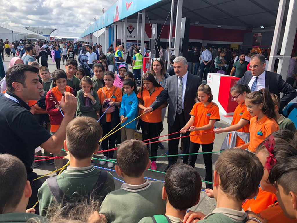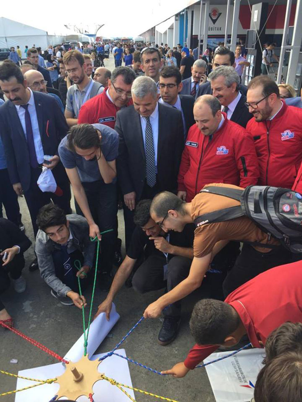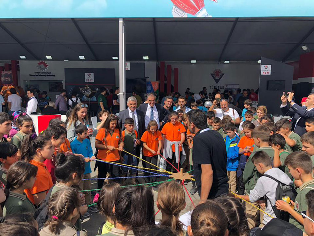 Büyükşehir Belediye Başkanı Mustafa Çelik, Türkiye Teknoloji Takımı (T3) Vakfı ve İstanbul Büyükşehir Belediyesi tarafından organize edilen TEKNOFEST İstanbul Havacılık, Uzay ve Teknoloji Festivali’ne katıldı. Festivalin ilk gününde stantları gezen Başkan Çelik, Kayseri Bilim Merkezi tarafından açılan standı da ziyaret etti. Bilim Merkezi’nin büyük ilgi gören standını ziyaret edenler arasında Sanayi ve Teknoloji Bakanı Mustafa Varank da vardı. İstanbul Yeni Havalimanı'nda düzenlenen ve 23 Eylül Pazar gününe kadar devam edecek olan TEKNOFEST’in açılış gününe Büyükşehir Belediye Başkanı Mustafa Çelik de katıldı. Başkan Çelik, TAİ Uzay ve Havacılık Standı, Savunma Sanayi Başkanlığı Standı, İstanbul Büyükşehir Belediyesi Standı, Roketsan Standı, Türkiye Teknoloji Takımı T3 Vakfı Standı ve TÜBİTAK Standını ziyaret ederek çalışmalar hakkında bilgi aldı. Başkan Mustafa Çelik, TEKNOFEST’te Bayraktar TB2 Silahlı İnsansız Hava Aracını da yakından inceledi ve milli savunma sanayimiz için emeği geçenlere teşekkür etti. Büyükşehir Belediye Başkanı Mustafa Çelik, TEKNOFEST’te Sanayi ve Teknoloji Bakanı Mustafa Varank ile de bir araya geldi. Başkan Çelik, Bakan Varank ile birlikte TÜBİTAK alanı içinde stant açan Kayseri Bilim Merkezi’nin standını ziyaret etti. Stantta Kayseri Bilim Merkezi’nin faaliyetleri tanıtıldı ve 6 farklı atölyede bilimsel faaliyetler gerçekleştirildi. Büyük ilgi gören ve TEKNOFEST’in ilk gününde yaklaşık 1500 kişi tarafından ziyaret edilen Bilim Merkezi standındaki etkinlikleri Sanayi ve Teknoloji Bakanı Mustafa Varank, Büyükşehir Belediye Başkanı Mustafa Çelik ile birlikte izledi. Bilim Merkezi standında Güneş Saati ve Gök Atlası, Slime Yapımı, Bardak Robot, Mbotlarla Temel Seviyede Kodlama ve Robotik Eğitimi, Denge Oyunları ve Elektrik temelli aktiviteler gerçekleştirildi.