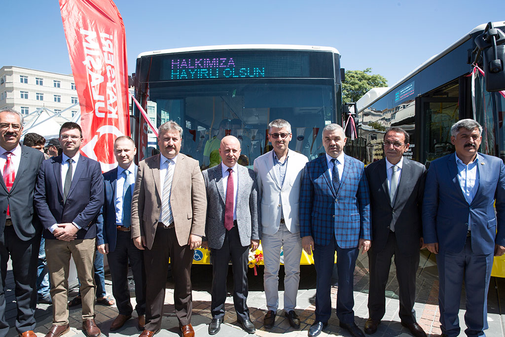Büyükşehir Belediyesi, şehir içi ulaşımını daha da rahatlatmak için yeni nesil toplu taşım araçlarını Kayseri’ye kazandırmaya devam ediyor. Büyükşehir Belediye Başkanı Mustafa Çelik, Cumhuriyet Meydanı’nda yapılan törenle yeni alınan ve maliyeti yaklaşık 16,5 milyon TL olan 10 adet 18 metre uzunluğundaki körüklü otobüsü kamuoyuna tanıttı. Başkan Çelik, 3,5 yılda alınan otobüs sayısının 133’e ulaştığını ifade ederek bu rakamın çok önemli bir yatırımı işaret ettiğini kaydetti. Şehrimizin ulaşımını daha da rahatlatacak olan yeni nesil toplu ulaşım araçlarının tanıtımı için Cumhuriyet Meydanı’nda yapılan törene Büyükşehir Belediye Başkanı Mustafa Çelik’in yanı sıra AK Parti İl Başkanı Şaban Çopuroğlu, ilçe belediye başkanları, bürokratlar ve vatandaşlar katıldı. “ATTIĞIMIZ TOKATTAN DERS ÇIKARMAMIŞLAR” Tanıtım programında yaptığı konuşmada ülke gündemine ilişkin değerlendirmeler yapan Büyükşehir Belediye Başkanı Çelik, “Biliyorsunuz ki ülkemiz ekonomik bir terörle karşı karşıya kaldı. 15 Temmuz’daki hain kalkışmayla irademize, egemenliğimize, bağımsızlığımıza hakim olamayan şer güçler, ekonomik terörle kendilerince yarım bıraktıkları işi tamamlamaya kalktılar. Demek ki 15 Temmuz’da bu milletin dik duruşundan ders alamamışlar. Demek ki, 15 Temmuz’da hainlere ve işbirlikçilerine attığımız tokattan ders çıkarmamışlar. 15 Temmuz’un ertesi günü 40 yıllık planı boşa çıkardığımız gibi ekonomik terörü de Allah’ın izniyle boşa çıkaracağız. Her zaman olduğu gibi bu süreçte de milletinden aldığı güçle asla eğilmeyen ve geri adım atmayan Cumhurbaşkanımız Recep Tayyip Erdoğan ve aziz milletimize şükranlarımı sunuyorum” dedi. “AYAĞIMIZ GAZDAN ÇEKMİYORUZ” 15 Temmuz sürecinde olduğu gibi ekonomik terör sürecinde de Kayseri Büyükşehir Belediyesi olarak hız kesmeden yatırımları sürdürdüklerini vurgulayan Başkan Mustafa Çelik, sözlerini şöyle sürdürdü: “Ayağımızı gazdan çekmedik ve tempomuzu düşürmedik. 15 Temmuz’un hemen ertesinde Hulusi Akar Bulvarı’nın temelini atarak yatırımlarımıza devam etmiştik, şimdi de her alandaki yatırımlarımızı hız kesmeden sürdürüyoruz. Sizlerin de şahit olduğu gibi alt yapıdan kentsel dönüşüme, sosyal projelerden üretimi artıracak projelere kadar her alanda büyük bir gayretle gece gündüz çalışıyoruz. Her alanda çok büyük yatırımlar yaparken ulaşıma daha fazla önem veriyoruz. Bu nedenle geçen yılı Ulaşım Yılı ilan etmiştik. Bu kapsamda üç ayrı çevreyol büyüklüğündeki bulvarın yapımına başladık. Mevcut katlı kavşaklara ilave olarak 13 katlı kavşağın yapımına başladık ve bu dönemde tamamlayacağız. Mevcut yollarımızı genişlettik, kavşaklarımızda düzenlemeler yaptık ve trafik akışını kolaylaştırdık. Bu yıla Ulaşım Yılı demedik belki ama çok daha artan bir tempoyla yatırımlarımızı sürdürüyoruz. Bir taraftan ulaşım alt yapısını çok daha iyi hale getirirken bir taraftan da toplu ulaşımı yaygınlaştırmak ve daha konforlu hale getirmek için gayret gösteriyoruz.” 3,5 YILDA 133 OTOBÜS Büyükşehir Belediyesi’nin ulaşım filosunu yeni nesil araçlarla büyütmeye ve gençleştirmeye devam ettiğini ifade eden Büyükşehir Belediye Başkanı Çelik, ulaşım filosuna maliyeti yaklaşık 16,5 milyon TL olan 18 metre büyüklüğünde 10 adet doğal gazlı aracı daha eklediklerini söyledi. Toplu ulaşımı yaygınlaştırmak için daha önce 30 raylı sistem aracı aldıklarını dile getiren Başkan Çelik, “Ardından otobüs alımlarımız başladı. Önce 35 sonra 50, ardından 20 otobüsle toplam 105 otobüsü filomuza kattık. Bugün bunlara ilave olarak 10 otobüs daha ulaşım ağımıza katılıyor. Körüklü dediğimiz 18 metre boyundaki bu otobüslerimiz şehrimizin yoğun hatlarında çalışacak. Ayrıca elektrikli otobüsler için de ihalemizi yaptık ve bu otobüslerin yapımı devam ediyor. Önümüzdeki günlerden itibaren bu otobüsleri de teslim alacağız. Elektrikli otobüslerin 8 adeti 25 metre uzunluğunda ve raylı sistem araçları büyüklüğünde olacak. Ayrıca bugün tanıtımını yaptığımız otobüslerin boyunda 18 metrelik 10 adet elektrikli otobüs daha alıyoruz. Böylece 3,5 yılda aldığımız toplam otobüs sayısı 133 oluyor” diye konuştu. Hiçbir olumsuzluktan etkilenmeden çalışmaya devam edeceklerini vurgulayan Başkan Mustafa Çelik, silahlı ya da ekonomik terörün kendilerini bu şehir ve bu ülke için gayret göstermekten alıkoyamayacağını kaydetti. Başkan Çelik sözlerinin sonunda yeni nesil toplu taşım araçlarının şehrimize hayırlı uğurlu olması temennisinde bulundu. Büyükşehir Belediye Başkanı Mustafa Çelik, konuşmasının ardından katılımcılarla birlikte yeni araçları inceledi. Araçlarla ilgili bilgi veren Ulaşım A.Ş. Genel Müdürü Feyzullah Gündoğdu, 145 yolcu kapasiteli doğal gazlı aracın doğaya dost olduğunu söyledi. Araçlarda yolcu güvenlik sistemlerinin bulunduğunu ve 24 saat online olarak aracın izlenebildiğini ifade eden Gündoğdu, araç içinde ayrıca Türkiye’de ilklerden bir tanesi olan “Acil durum butonu” bulunduğunu da dile getirerek herhangi bir olumsuzluk halinde bu butonlara basılmasıyla filo yönetim merkezine alarm verilebildiğini kaydetti. Büyükşehir Belediye Başkanı Mustafa Çelik, de araçların konforuna vurgu yaptı ve bu araçlarda her türlü iklimlendirmenin bulunduğunu söyledi. Yeni alınan doğal gazlı otobüsler Başkan Çelik, ilçe belediye başkanları ve vatandaşların katılımıyla konvoy halinde Cumhuriyet Meydanı’ndan Büyükşehir Belediyesi önüne gittiler. Araçlar Kayseri’nin yoğunluğu bulunan mahallelerinde servise çıkacaklar.