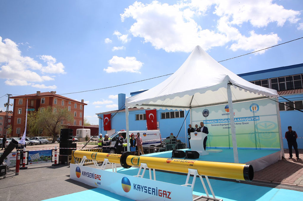 Büyükşehir Belediye Başkanı Mustafa Çelik, Tomarza’ya doğal gazın verilmesi için yapılan temel atma töreninde ilçelere yapılan yatırımlara dikkat çekti. Büyükşehir Belediyesi’nin tüm birimleriyle ilçelere yatırım yapmaya devam ettiğini ifade eden Başkan Çelik, Kayseri Büyükşehir Belediyesi kadar ilçelerine yatırım götüren bir başka belediyenin olmadığını söyledi. Kayserigaz’ın Tomarza’ya doğal gaz götürülmesi için yapmış olduğu temel atma törenine Çevre ve Şehircilik Bakanı Mehmet Özhaseki, Vali Süleyman Kamçı, AK Parti Kayseri Milletvekilleri İsmail Tamer ve Emrah Karayel, AK Parti İl Başkanı Hüseyin Cahit Özden, ilçe belediye başkanları, bürokratlar ve vatandaşlar katıldı. “İLÇELERE REKOR YATIRIM YAPIYORUZ” Törende yaptığı konuşmada Tomarza’ya her gittiklerinde yatırım ve hizmetlerle gittiklerini ifade eden Başkan Mustafa Çelik, 2014 yılında çıkan Bütünşehir Yasası’nın ilçeler için bir milat olduğunu belirtti. O tarihten bu yana Büyükşehir Belediyesi’nin gücü ve imkanlarıyla diğer ilçeler gibi Tomarza’nın da her ihtiyacını bir bir karşılamak için çalıştığını dile getiren Başkan Mustafa Çelik, “Geçen dört yılda ilçemizdeki değişimlerin en yakın şahidi sizler oldunuz. Sadece alt yapı kuruluşumuz olan KASKİ’nin yatırımları 27 milyon lirayı geçti. Kırsal Hizmetler Daire Başkanlığımızın son üç yıldaki yatırımları 12 milyon lirayı buldu. Tomarza’ya üç yıl içinde yapılan kilitli parke miktarı 250 bin metrekareye ulaştı. Bu rakamlar bir rekoru ifade etmektedir. İlçelerine bu kadar yatırım yapan bir başka Büyükşehir Belediyesini bulamazsınız. Yapı Kontrol Daire Başkanlığımızın yaptığı Kadın ve Gençlik Merkezi’ni görüyor, bu merkezden yararlanıyor ve inanıyorum ki böylesine prestijli bir binaya sahip olduğunuz için gurur duyuyorsunuz. Tomarza bu hizmetleri hak ediyor. Bizler de azami gayret göstererek hak ettiğiniz hizmet ve yatırımları sizlerle buluşturuyoruz. Kent merkezinde ne varsa, ilçelerimizde de o imkanların olması için çalışıyoruz. İlçe merkezinde yapmış olduğumuz asfalt çalışmasının üzerinden daha 6 ay bile geçmedi. Fen İşleri Daire Başkanlığımız Tomarza’da 6 bin ton sıcak asfalt yaptı. Şehir merkezindeki asfalt kalitesini Tomarza ve diğer ilçelerimize taşıdık. Bunların yanında Tarımsal Hizmetler Daire Başkanlığımız, tarım ve hayvancılığa destek verecek hizmet ve yatırımlarını sürdürüyor. Gördüğünüz üzere tüm birimlerimizle Tomarza’nın yanında olduk ve yanında olmaya devam edeceğiz” dedi. Tomarza’nın doğal gaz ile birlikte önemli bir yatırıma daha kavuşacağını vurgulayan Başkan Mustafa Çelik, Kayserigaz’ın özel sektör olmasına rağmen yer yer ekonomik kaygıları bir tarafa bırakarak kamu gibi düşündüğünü ve bu düşünce doğrultusunda yatırımlar yaptığını söyledi. Bu anlayışla kent merkezinin tamamına ulaşan temiz enerji kaynağının ilçelerimize de taşınmaya başladığını ifade eden Başkan Çelik, “İnanıyorum ki, çok kısa bir süre içinde siz değerli hemşehrilerimiz doğal gazla buluşacak. Bu anlamda Kayserigaz’ın yöneticilerini ve tüm çalışanlarını tebrik ediyorum” diye konuştu. Konuşmaların ardından Tomarza’ya doğal gaz taşıyacak hatta bulunan ilk boruların montajı dualarla yapıldı.
