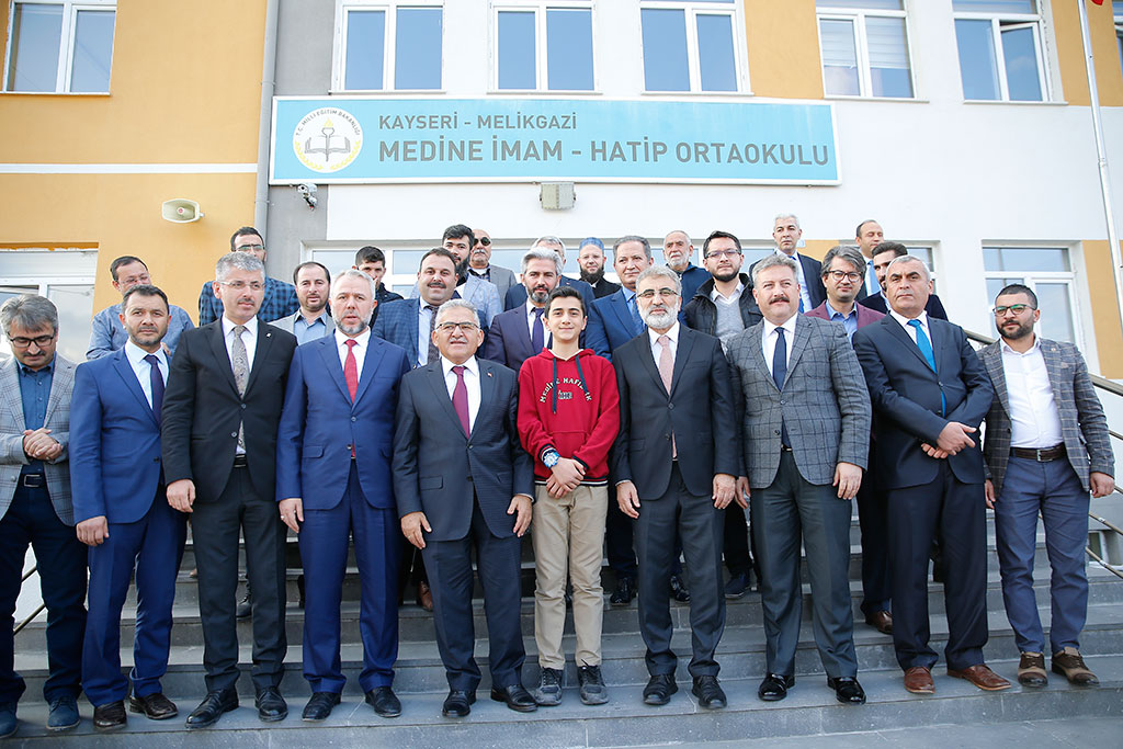Kayseri Büyükşehir Belediye Başkanı Dr. Memduh Büyükkılıç, Hisarcık Medine İmam Hatip Ortaokulu’nu ziyaret etti. Başkan Büyükkılıç, ziyareti sırasında Diyanet İşleri Başkanlığı’nın Türkiye Hafızlık Yarışması’nda birinci olan öğrenciye ödül verdi. Büyükşehir Belediye Başkanı Dr. Memduh Büyükkılıç, Önceki Dönem Enerji ve Tabii Kaynaklar Bakanı Taner Yıldız, AK Parti İl Başkanı Şaban Çopuroğlu ve Melikgazi Belediye Başkanı Mustafa Palancıoğlu ile birlikte Hisarcık Meydan Camii’nde Cuma namazını kıldıktan sonra Medine İmam Hatip Ortaokulu’nu ziyaret etti. Ziyaretinde öğrencilere de hitap eden Başkan Büyükkılıç, öğrencilerden çok çalışmalarını isteyerek, “Sizler bizim geleceğimizsiniz. Bulunduğunuz yerin en başarılısı olmak için çalışmanız lazım. Ay Yıldızlı Türk Bayrağımıza, vatanımıza, milletimize, devletimize, dinimize sahip çıkacak nesiller olacaksınız. Bilimle İslam’ı buluşturarak yolunuza devam edeceksiniz” dedi. İl Müftüsü Prof. Dr. Şahin Güven’in de bulunduğu ziyaret sırasında Diyanet İşleri Başkanlığı’nın Türkiye Hafızlık Yarışması’na katılarak birinci olan Selahattin Benli adlı öğrenciye hediyeler verildi.