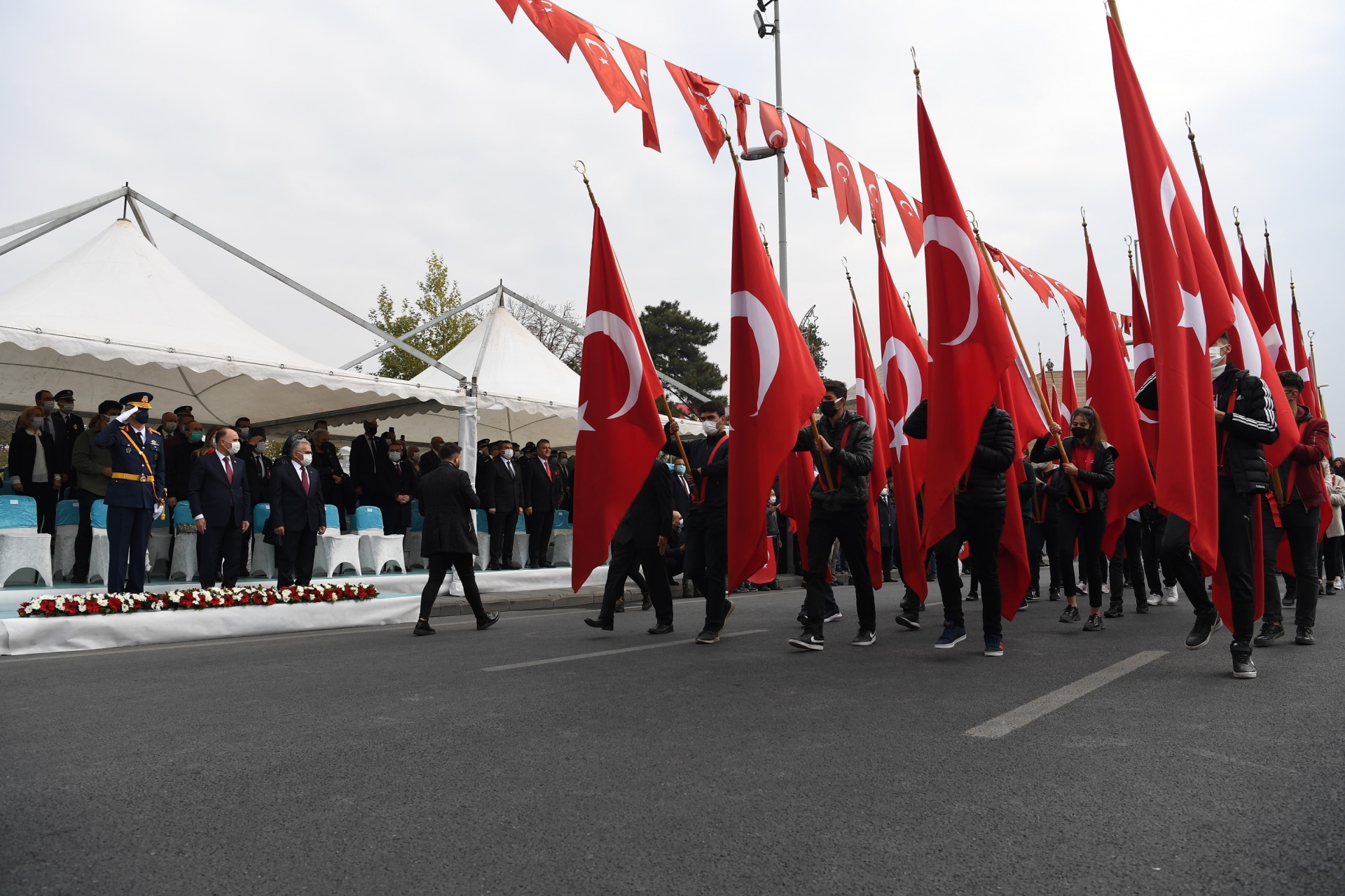 Kutlama programı, tören geçişi ile devam ederken,