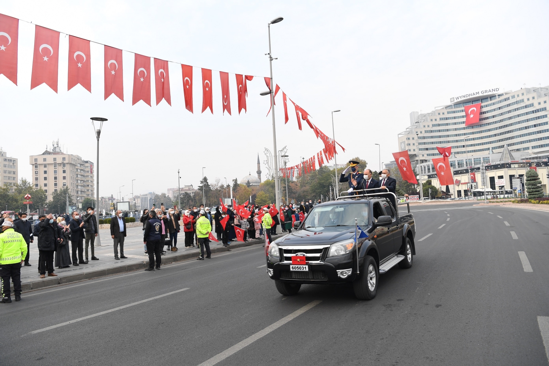 Öncel, protokol üyelerini ve vatandaşları araç üzerinden selamladı.