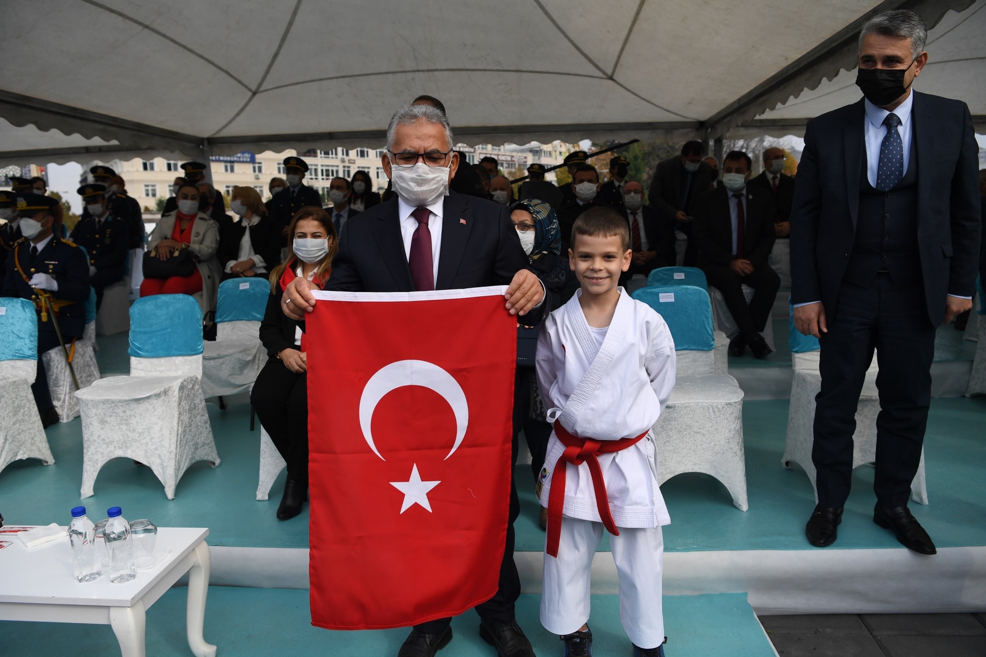 takımı Türk Bayraklı gösteri sundu. Gösteri sonunda minikler, Türk bayraklarını
