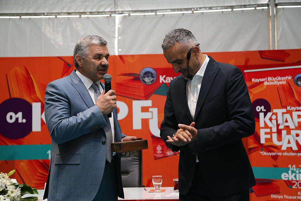 Büyükşehir Belediye Başkanı Mustafa Çelik, Kayseri Kitap Fuarı’nın Türkiye’nin her yerinde konuşulur hale geldiğini belirterek, hafta içi olmasına rağmen yoğun ilginin devam ettiğini söyledi. Başkan Çelik, önümüzdeki yıllarda çok daha mükemmel fuarlar yapmaya devam edeceklerini kaydetti. Büyükşehir Belediye Başkanı Mustafa Çelik, 1. Kayseri Kitap Fuarı’nı beşinci gününde de ziyaret etti ve stantları gezerek yayınevlerinin görevlileriyle görüştü. Başkan Çelik, yazarlarla da bir araya gelerek sohbet etti. Büyükşehir Belediye Başkanı Çelik, daha sonra Kitap Fuarı’na katılan ünlü isimlerden Bekir Develi’nin “Ünlü Mamuller” konulu söyleşisini izledi. Esprileri ile güldüren ve sözleriyle düşündüren Bekir Develi, Kitap Fuarı’nın ilk olmasına değinerek ilklerin ve niyetlerin önemli olduğunu söyledi. Bekir Develi, 15 Temmuz’da yaşanan hainliğe karşı direnenlerin niyetlerinden de bahsederek yapılan kahramanlıkları anlattı. Söyleşi sonrası kürsüye gelen Büyükşehir Belediye Başkanı Mustafa Çelik, Bekir Develi’ye fuarın anısına yaptırılan kendisine özel mührü hediye etti. Bekir Develi’nin söyleşiye katılımı nedeniyle teşekkür etmesi üzerine insana yatırımı önemsediklerini dile getiren Başkan Çelik, “İnsana yatırımla ilgili faaliyetler söz konusu olursa akan sular duruyor” diye konuştu. “KİTAP FUARININ DA EN İYİSİNİ BİZ YAPIYORUZ” Büyükşehir Belediye Başkanı Çelik, Kitap Fuarı’nın ardından basın mensuplarıyla bir araya geldiği toplantıda da fuarla ilgili açıklamalar yaptı. Yaptıkları işin en iyisini yapmak için gayret gösterdiklerini ifade eden Başkan Mustafa Çelik, “Kitap Fuarı’nın da en iyisini biz yaptık. Hafta içi olmasına rağmen tıklım tıklım. Türkiye’nin her yerinde konuşulur hale geldi. Her noktasına emek vererek çok güzel bir organizasyon gerçekleştirdik. Her gün birçok tanınmış yazar ve şair geldi. Kayseri Dünya Ticaret Merkezi’nde bugüne kadar yapılan fuarlar içinde en fazla ziyaretçisi olan Kitap Fuarımız oldu. Önümüzdeki yıllarda çok daha mükemmelini yapacağız” dedi. “KAYSERİ, TÜRKİYE’NİN ÖRNEK ŞEHRİ” Kayseri Kitap Fuarı için şehrimize gelen Bekir Develi, Kayseri ve fuarla ilgili değerlendirmelerde bulundu. Kayseri’ye çok sık geldiğini dile getiren Develi, “Hani elimizde olması gereken bir örnek olur ya, Türkiye’deki örneklerden bir tanesi de Kayseri. Caddeleri, hizmeti, belediyesi, yeşil alanlarıyla hakikaten çok güzel bir şehir. Bugün Kayseri’yi değerlendirmek isteyenler kültürel faaliyetlere de iyi bakmalı. Asıl yatırım bu. Kültüre, insana yapılan yatırım en değerli yatırımdır. Birbirinden değerli isimler bu fuara katıldı. Büyük bir kazanım. İnşallah bu teveccüh, bu güzellik her zaman devam eder” diye konuştu.