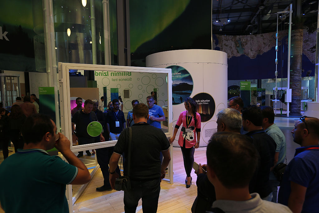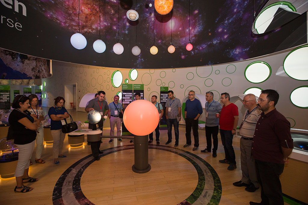 Kayseri Bilim Merkezi, 41 farklı ilden gelen Bilim Sanat Merkezi öğretmenlerini ağırladı. Öğretmenlere Kayseri Bilim Merkezi astronomları tarafından astronomi ve uzay bilimleri eğitimi verildi ve Bilim Merkezi’ni gezen öğretmenler hayatımızdaki bilimsel gelişmeleri uygulamalı olarak görme şansı buldu. Kayseri Çetin Şen Bilim Sanat Merkezi tarafından uygulanan ve TÜBİTAK tarafından desteklenen “Bilim ve Toplum Yenilikçi Eğitim Uygulamaları” projesi kapsamında 41 ildeki Bilim ve Sanat Merkezi’nden 50 öğretmen Kayseri Bilim Merkezi’nde bir günlük eğitime alındı. BİLSEM’in fizik ve fen bilgisi öğretmenlerine Kayseri Bilim Merkezi astronomları tarafından planetaryum tanıtımı ve astronomi eğitimi ile takım yıldızlar ve güneş sistemleri eğitimi verildi. Öğretmenler Bilim Merkezi’ndeki farklı sergi ürünlerini de gezerek bilimin eğitim alanında kullanılmasıyla ilgili uygulamaları gördüler. BİLSEM öğretmenleriyle Kayseri Bilim Merkezi’ni gezen Erciyes Üniversitesi Astronomi ve Uzay Bilimleri Bölümü Öğretim Üyesi Prof. Dr. İbrahim Küçük, projenin amacının bilim sanat okullarında öğrenim gören üstün yetenekli öğrencilere uygulamaların nasıl anlatılacağı olduğunu belirtti. Projeyi yürüten Çetin Şen Bilim Sanat Merkezi Müdürü Sezer İnan da Bilim Sanat Merkezlerinde eğitim gören özel yetenekli öğrencilerin astronomi ve uzay merakını gidermek için bu projeyi geliştirdiklerini ve bu doğrultuda öğretmenlerin eğitimine yönelik bir çalışma yaptıklarını söyledi. Eğitim için Türkiye’nin farklı illerinden gelen öğretmenler ise Kayseri Bilim Merkezi’nin çok etkileyici olduğunu dile getirdiler. Kayseri Bilim Merkezi Müdürü Suat Şahin de Kayseri Bilim Merkezi’nin sadece Kayseri’nin değil Orta Anadolu’nun kapsamlı bir Bilim Merkezi olarak çalışmalarına devam ettiğini vurguladı.