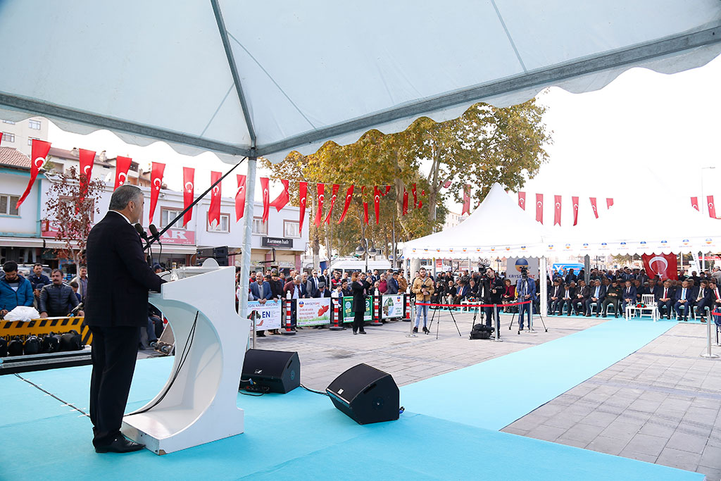 Büyükşehir Belediye Başkanı Mustafa Çelik, Kayserigaz tarafından yapılan yatırımla doğal gaza kavuşan Yahyalı’da bu önemli yatırım nedeniyle düzenlenen törene katıldı. Törende yaptığı konuşmada Kayseri’deki alt yapı şirketlerinin Türkiye’nin en başarılı şirketleri olduğunu ifade eden Başkan Çelik, KASKİ, KCETAŞ ve Kayserigaz’ın kendi sektörlerinde örnek ve öncü şirketler olduğunu söyledi. Yahyalı’nın doğal gaz ile buluşması nedeniyle yapılan tören Büyükşehir Belediyesi tarafından yapılan Yahyalı Meydanı’nda gerçekleştirildi. Kayserigaz Genel Müdürü Adem Dinçay, EWE Holding Operasyonlardan Sorumlu Genel Müdürü ve Kayserigaz Yönetim Kurulu Başkanı Hasan Yasir Bora ve Yahyalı Belediye Başkanı Esat Öztürk’ün konuşmalarının ardından kürsüye gelen Büyükşehir Belediye Başkanı Mustafa Çelik, Yahyalı’nın tarihi günlerinden birisini yaşadığını söyledi. Yahyalı’nın doğal gaz konforunun yaşandığı ilçeler arasına katıldığını ifade eden Başkan Çelik, doğal gazın sadece konforun değil, çağı yakalamanın ve gelişmenin de göstergelerinden olduğunu vurguladı. “BAŞARININ SIRRI ÇALIŞMAK VE NİYET” Yatırım ve hizmetler anlamında Kayseri’nin bereketli bir şehir olduğunu ifade eden Başkan Mustafa Çelik, “13 Ekim’de Sayın Cumhurbaşkanımızın teşrifleriyle yaptığımız gibi 41 başlıkta yüzlerce yatırımı tek bir törenle hizmete açacak kadar bereketliyiz. Toplam bedeli 616 milyon TL olan yatırımları tek bir seferde açacak kadar bereketli ve güçlü bir belediyeyiz. Nedir bu işin sırrı derseniz, birincisi çalışmaktır. Çalışana Allah verir. Gece gündüz, hafta içi hafta sonu demeden çalışıyoruz. Başarımızın ikinci unsuru ise niyetimizdir. Bizim tek bir niyetimiz, tek bir beklentimiz var Rabbimizin rızasını hemşehrilerimizin duasını almak. Rabbimin rızası, sizlerin duası bize yeter. Kayseri bereketli bir şehir dedik. Yahyalı da, bereketli Kayseri’nin en bereketli ilçelerinden birisi. Sizler de şahitsiniz ki, arayı açmadan sık sık Yahyalı’ya geliyoruz. Her geldiğimizde ya bir temel atıyoruz ya da açılış yapıyoruz. Ağustos ayının başında Kongre ve Gösteri Merkezi’nin temelini attık. Haziran ayında Meydan Projemizin açılışını gerçekleştirdik. Ondan önce de yine çeşitli vesilelerle Yahyalımıza geldik ve siz değerli hemşehrilerimizle beraber olduk. Yahyalı’dan Büyükşehir Belediyesi olarak elimizi de ayağımızı da çekmedik” dedi. 4 YILDA 52 MİLYON TL’LİK YATIRIM Son 4 yılda Büyükşehir Belediyesi olarak Yahyalı’ya 52 milyon TL’lik yatırım yaptıklarını da dile getiren Başkan Çelik, sözlerini şöyle sürdürdü: “Kayserigaz’ın 25 milyon TL’lik yatırımı ve Elektrik Şirketimizin 12-13 milyon TL’lik yatırımları buna dahil değil. Kadın ve Gençlik Merkezi, Yahyalı Meydan Projesi, Gözbaşı Parkı, hayvansal ve tarımsal sulama projeleri, 150 bin metrekare kilitli parke, çok sayıda çocuk oyun grupları, spor alanları, 182 kilometre satih kaplama asfalt, 5 bin ton sıcak asfalt, KASKİ’den 20 milyon TL’yi geçen alt yapı yatırımları ve daha pek çok yatırımı ilçemize kazandırdık. Bazı şehirler sadece Yahyalı’ya yaptığımız hizmet ve yatırımlar ile bir dönemi geçirirler. Ama biz şehir merkezine yaptığımız devasa projelerin yanı sıra ilçelerimizin gelişmesi üzerinde de özellikle duruyor ve hiçbir ayrım yapmadan tüm ilçelerimizin ihtiyaçlarını gidermek için gayret gösteriyoruz.” Konuşmasında Kayseri’deki alt yapı şirketlerine de ayrı bir parantez açan Büyükşehir Belediye Başkanı Çelik, “Kayseri olarak Türkiye’nin en başarılı alt yapı şirketlerine sahibiz. Gerek rekor yatırımlarıyla KASKİ şirketimiz gerek Türkiye’ye örnek olan Elektrik Şirketimiz ve gerekse belediyemizin de ortaklığının bulunduğu Kayserigaz şirketimiz kendi sektörlerinde öncü şirketler oldular. Bu anlamda Yahyalı ilçemize doğal gazın ulaştırılmasını sağlayan başta EWE Enerji’nin CEO’su Sayın Frank Quante olmak üzere Kayserigaz’ın tüm yöneticilerine ve çalışanlarına teşekkür ediyorum. Bu yatırım aslında 2022’de planlanmıştı; ama ısrarımız üzerine bizleri kırmadılar ve öne çektiler. Böylece Yahyalı ilçemiz tertemiz enerjiyle buluştu” dedi. Konuşmaların ardından doğalgaz vanaları açıldı ve ilçe meydanındaki meşale yakılarak doğal gaz Yahyalı ile buluşturuldu.