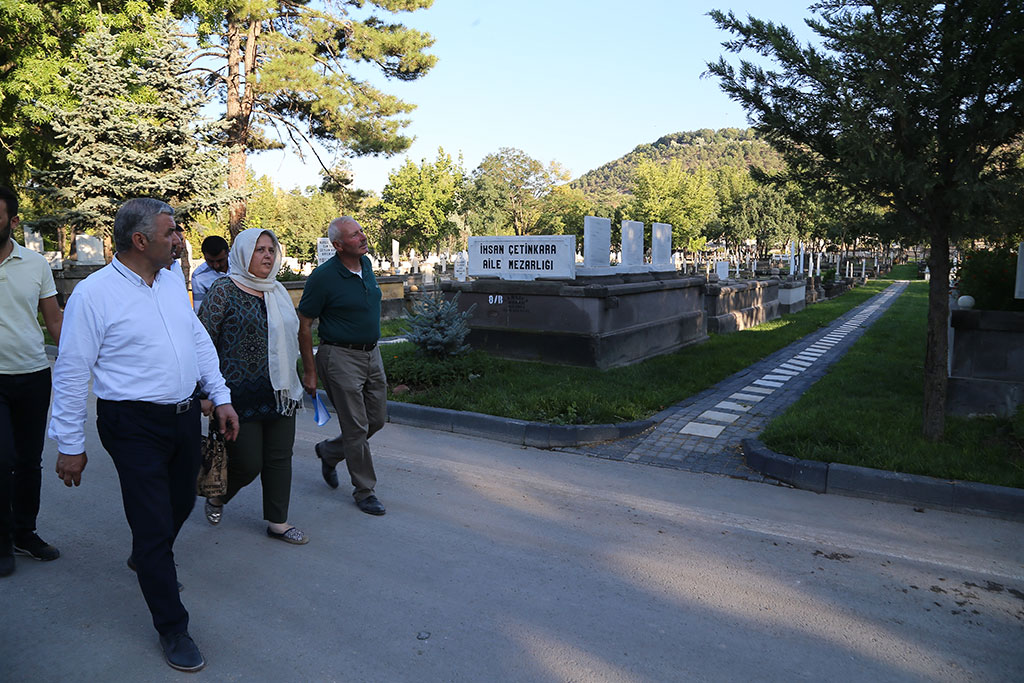 Büyükşehir Belediye Başkanı Mustafa Çelik, her bayram öncesi yoğun bir ziyaretçi akınına uğrayan Şehir Mezarlığı’nda incelemelerde bulundu. Başkan Çelik, Şehir Mezarlığı’nda yapılan düzenlemeleri de yerinde gördü. Büyükşehir Belediyesi, Şehir Mezarlığı’nda yaptığı düzenlemelerle Türkiye’ye örnek bir mezarlık haline getirdi. Büyükşehir Belediyesi, çevre düzenlemeleri ve yeni binalarla çok daha sağlıklı bir mezarlık hizmeti vermeye başladı. Şehir Mezarlığı’nı gezerek incelemelerde bulunan Başkan Mustafa Çelik, “Her bayram öncesi ahırete intikal etmiş büyüklerimizi ziyaret etmek gibi güzel bir geleneğimiz var. Bu ziyaretimizi pırıl pırıl, tertemiz bir ortamda yapmak isteriz. Şehir Mezarlığı’nı bu düşünceden hareketle tüm hemşehrilerimizin huzurla ziyaretlerini yapabilecekleri bir mezarlık haline getirdik. Yaptığımız hizmetlerin içinde en çok takdir edilenlerin başında mezarlık hizmetleri geliyor. Yürüyüş yollarını yeniden yaptık ve yürüyüş yolları dışındaki alanlara çim ektik ve ağaç diktik. Mezarlığımızı örnek gösterilecek eşi benzeri olmayan bir mezarlık haline getirdik. Hemşehrilerimiz mezarlığa geldiklerinde tertemiz bir mezarlıkla karşılaşacaklar” dedi. Büyükşehir Belediye Başkanı Mustafa Çelik, mezarlık içerisine yapılan ve tamamlanan Mezarlıklar Hizmet Binası ile inşaatı süren camide de incelemelerde bulundu.