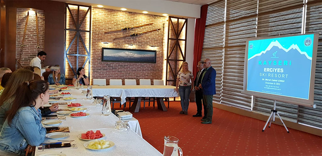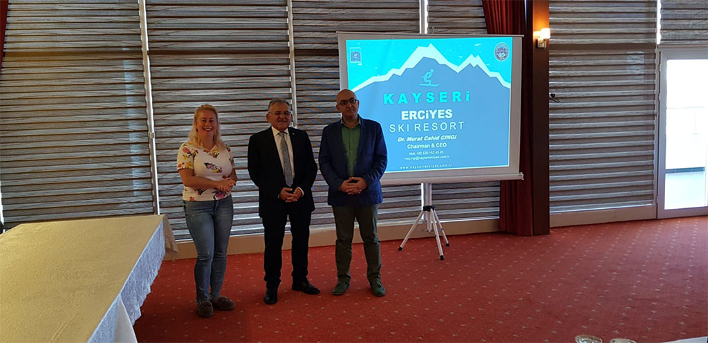 Kayseri Büyükşehir Belediyesi, başta Erciyes Kış Turizm Merkezi olmak üzere Kayseri’nin tarihi ve doğal değerlerini tanıtmaya devam ediyor. Büyükşehir Belediye Başkanı Dr. Memduh Büyükkılıç, Ukraynalı turizmcilerle Erciyes’te bir araya geldi. Büyükşehir Belediyesi’nin çalışmalarıyla Ukraynalı turizmcilerin Kayseri’ye ilgisi daha da artıyor. Büyükşehir Belediye Başkanı Dr. Memduh Büyükkılıç, Ukrayna’dan gelen turizm acenteleriyle Erciyes’te bir araya gelerek sohbet etti. Erciyes’te Ukraynalı turizmcilerle bir de toplantı gerçekleştirildi ve Erciyes A.Ş. Yönetim Kurulu Başkanı Dr. Murat Cahid Cıngı tarafından Kayseri’nin turizm değerleriyle ilgili kapsamlı bir sunum yapıldı. Geçen kış döneminde, 4 aylık süre içinde Ukrayna’nın başkenti Kiev ile Kayseri arasındaki charter seferler ve İstanbul üzerinden aktarmalı olarak yaklaşık 6 bin Ukraynalı ziyaretçiyi Kayseri’de ağırladıklarını hatırlatan Başkan Memduh Büyükkılıç, gelen tüm ziyaretçilerin şehrimizden yüzde 100 memnuniyetle ayrıldıklarını söyledi. Ukraynalı turizmcilerin de Kayseri’yi çok beğendiklerini ifade eden Başkan Büyükkılıç, bu yıl yapılacak olan çalışmalarla charter seferlerin sayısının daha da artacağını kaydetti.